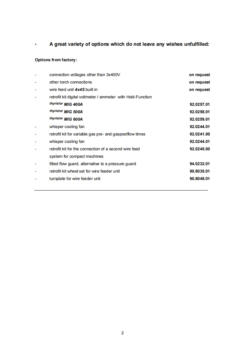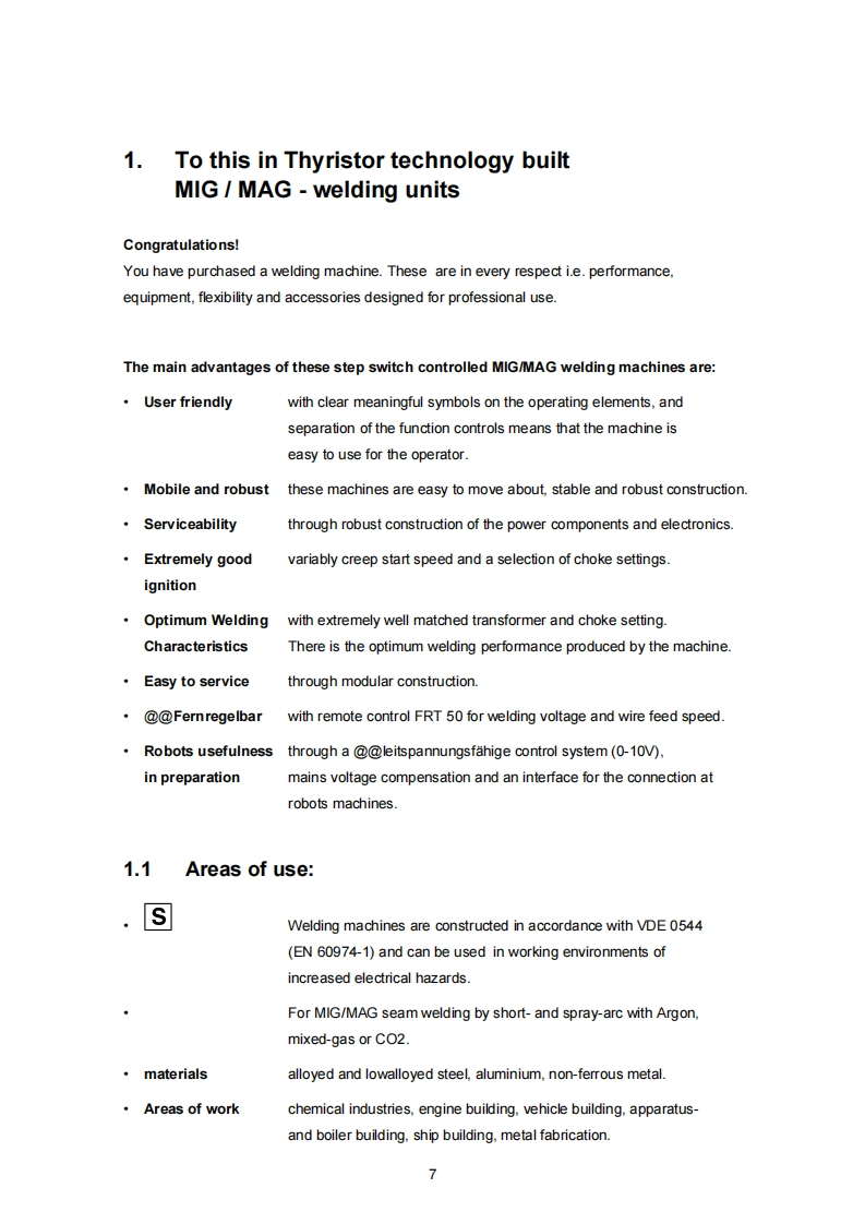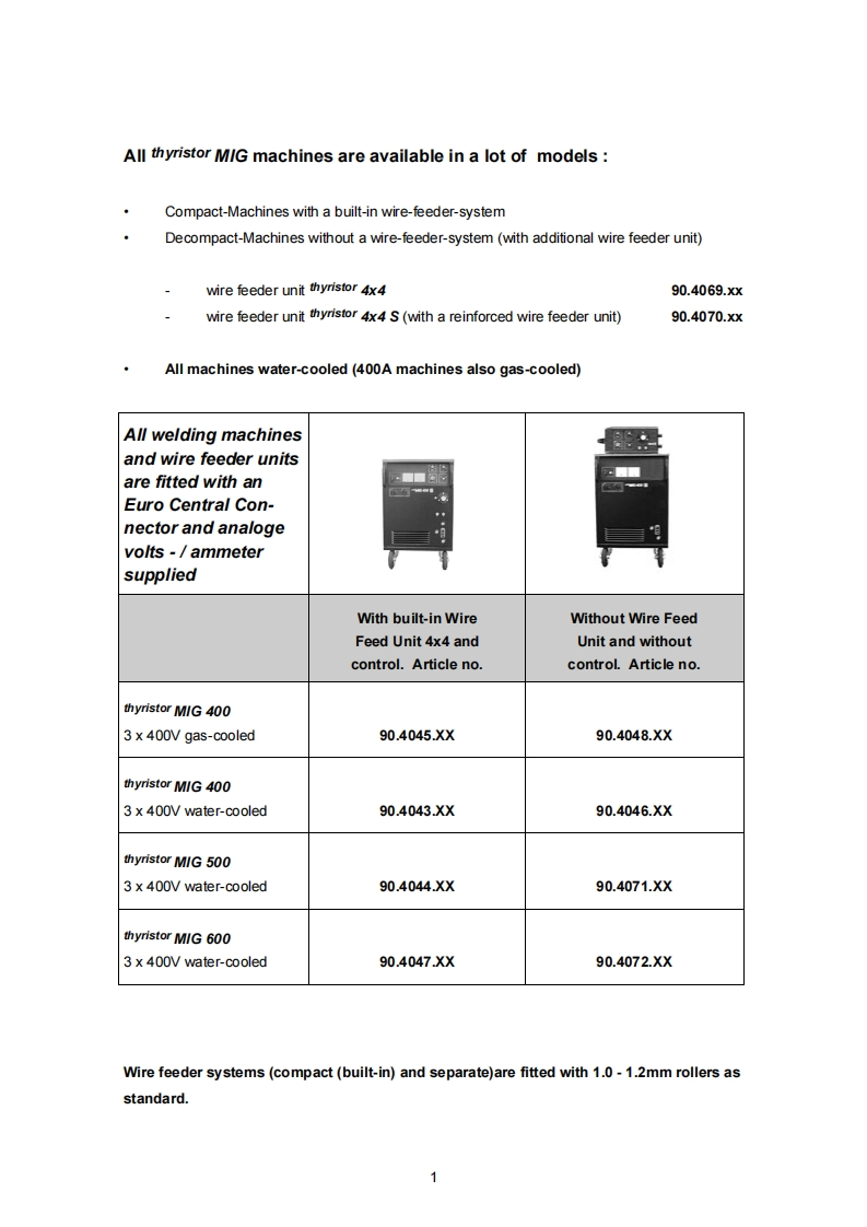 EWMHIGHTEC®WELDINGEWM HIGHTEC WELDING GmbHDr.Gunter Henle-StraBe 8:D-56271 MundersbachPh0ne:+49(0)2680.181-0:Fax+49(0)2680.181-244Internet:www.ewm.de;E-mail:info@ewm.deInstruction ManualGBthyristorMIG MAG Welding Machinesfrom 400A-600ASTANDARDmobileThese operating instructions must be read before commissioning!Failure to do so may be dangerous!Machines may only be operated by personnel familiar with the appropriate safetyregulations!The machines bear the conformity mark and thus comply with theEC Low Voltage Guideline(73/23/EEC).EC EMV Guideline(89/336/EEC)(The CE mark is only required in EC member states)囹In compliance with VDE 0544(EN 60974-1),the machines can be used in environments withan increased electrical hazard.©1994We reserve the right to make amendmentsArt.no.:099-004043-EWM01Revised:13.121994