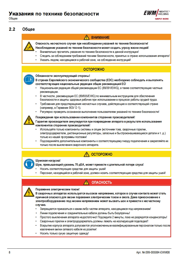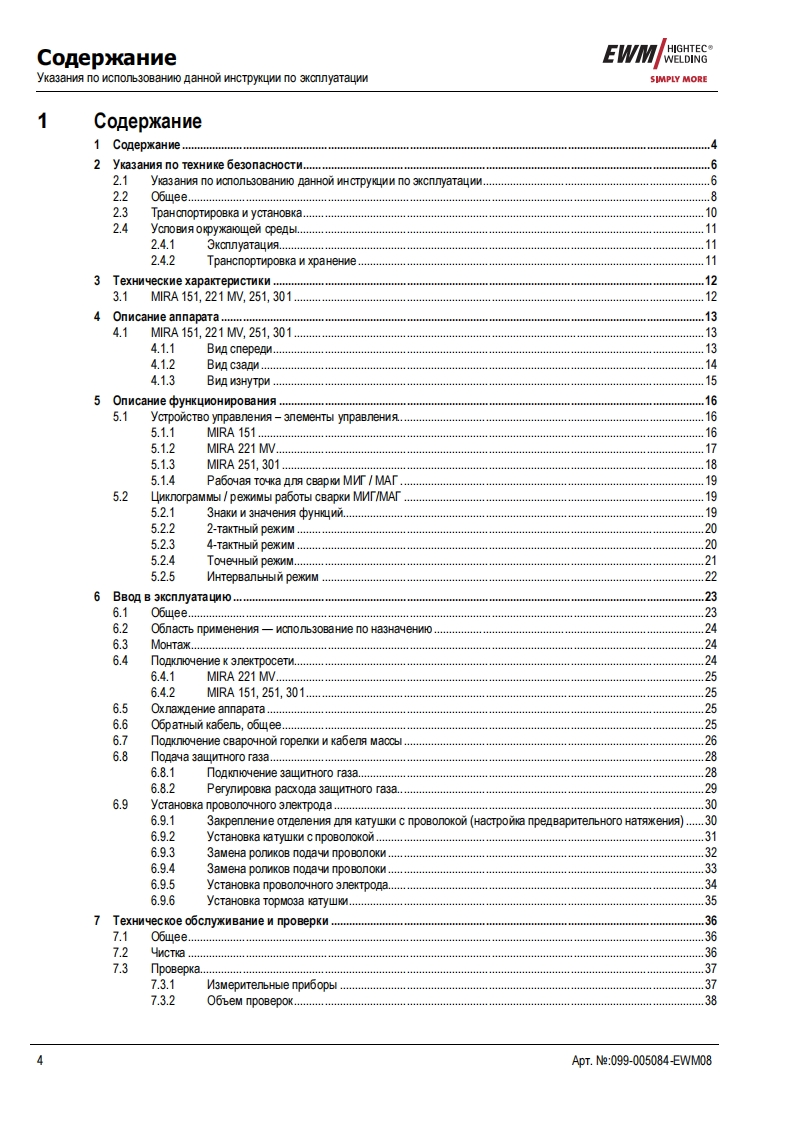 REGARA了分EWMHIGHTEC®WELDING3EWMHIGHTECWELDINGSIMPLY MORESIMPLY MOREYEARS WARRANTYEWMHIGHTEC WELDING GmbHDr.Gunter-Henle-StraBe 8 0D-56271 MundersbachFon+492680181-01Fax+492680181-244www.ewm.de info@ewm.deRUPyKoBOACTBo no 3KcnnyataynnCBapoyHbIi annapaT ana cBapkn MMT/MAMIRA151,251,301MIRA 221 MVnepeA BBOAOM B 3kcnnyaTaywo 0693aTenbHo npoyTHTe AaHHyo MHCTpyKyMo no 3KcnnyaTaynn!B npoTHBHOM cnyuae BbI MoxeTe noABeprHyTbca onacHOCTH!O6cnyxnBaHne annapata MoryT BbinonHATb TonbKo nMua,03HaKoMneHHble C COoTBeTCTByHOLMMM MHCTPyKLMAMM noTexHnKe 6e3onacHocTn!Ha annapaTax MMeroTc ycnoBHble 0603HayeHM,noATBepxaroume CooTBeTCTBMe Tpe6oBaHnAM cneAyHOLMxHopMaTMBHbIX AoKyMeHTOB EC:PekoMeHAay EC "Hn3KOBonbTHa annapaTypa"(2006/95/EG)PekoMeHgaya EC/EMV(2004/108/EG)B cooTBeTCTBMM co cTaHAapraMM IEC 60974,EN 60974,VDE 0544 annapaTbl MoryT 3KcnnyaTmpoBaTbCa BnoMeweHNAX c noBblweHHON 3nekTpnyeckon onaCHOCTbHO.CooTBeTCTByeT Tpe6oBaHMAM:TOCT 12.2.007.0-75,rOCT 12.2.007.8-75,HopMbI8-95MEO5CooTBeTCTByeT Tpe6oBaHMAM:「0CT18130-79,「0cT13821-77,「0CT12.2.007.0-75,T0CT12.2.007.8-75,HopMb18-95CAConepxaHMe MHCTpyKuMM no 3KcnnyaTaynn He o60CHOBbIBaeT npeTeH3MM Co CTopoHbI nokynaTen.ABTopckne npaBa Ha 3Ty MHCTpyKuMo no 3KcnnyaTayn npMHannexaT M3rOTOBNTeno.nepenevaTka,Aaxke B Bnge Bbinepxek,TonbKo c nNcb MeHHoro pa3peweHnA.©2009MoryT BHOCHTbCA M3MeHeHMA!ApT.e:099-005084-EWM08no COCTORHNO Ha:07.07.2009