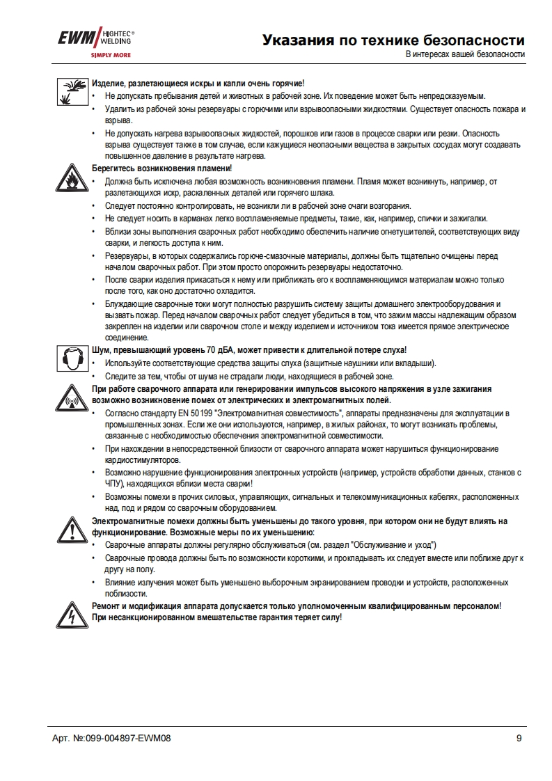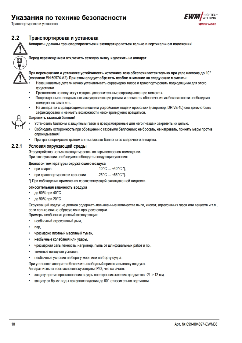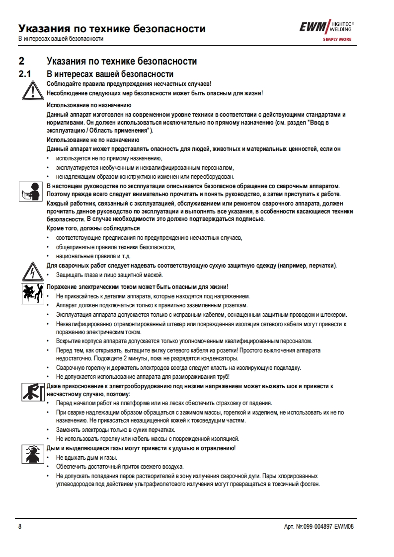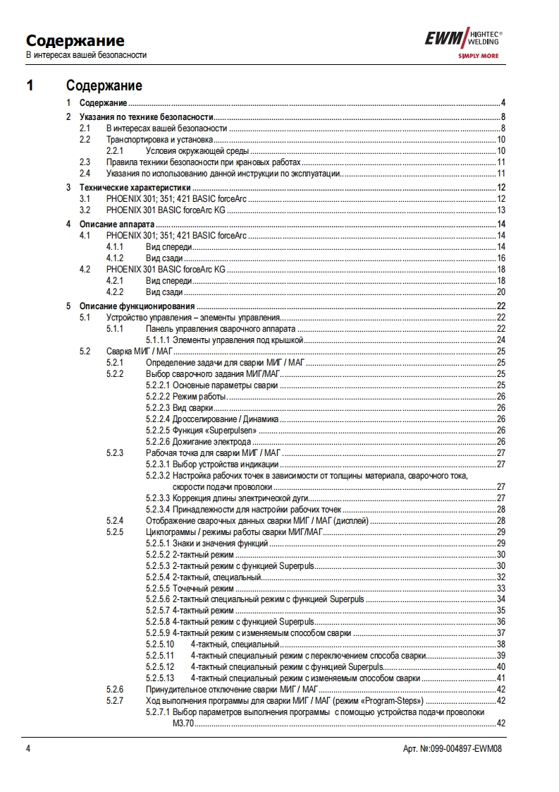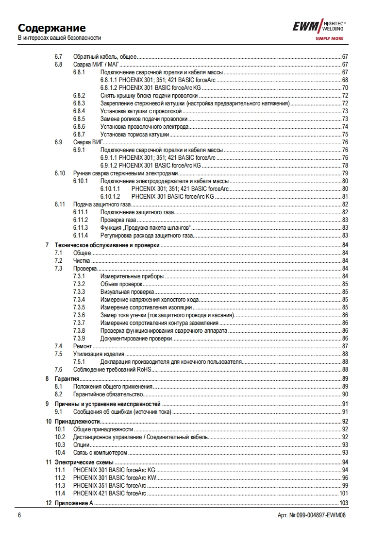 EWMHIGHTEC®E GAWELDINGHIGHTECWELDINGSIMPLY MORE3P R E M I U M Q U A L I T YYEARS WARRANTEWMHIGHTEC WELDING GmbHDr.Gunter-Henle-StraBe 8 D-56271 MundersbachFon+492680181-0Fax+492680181-244www.ewm.de info@ewm.deRUPyKoBOACTBo no 3KcnnyataynnKoMnaKTHble CBapoyHble annapaTbl pyyHoN CBapKnMMT/MA,CBapkn BMT n CBapkn cTepxHeBbIMn 3neKTponaMnPHOENIX 301.351.421 BASIC forceArcPHOENIX 301,351,421 BASIC PULS forceArcnepen BBOAOM B 3kcnnyaTaynto o693aTenbHo npoyTTe AaHHyo MHCTpyKuMo no 3KcnnyaTayMn!B npoTMBHOM cnyuae BbI MoxeTe noABeprHyTbca onaCHOCTM!06cnyxnBaHne annapaTa MoryT BbinonHAT TonbKo nmua,o3Ha KoMneHHble C CooTBeTCTByHOWMMM WHCTPyKUMAMM noTexHnKe 6e3onacHocTM!Ha annapaTax HMeloTca ycnoBHble 0603HayeHn,noATBepAaroue CooTBeTCTBMe Tpe6oBaHMAM cneAyFOwMxHopMaTMBHbIX AoKyMeHTOB EC:Peko MeHnayMa EC"HM3KOBonbTHa annapaTypa"(2006/95/EG)PekomeHgaya EC/EMV(2004/108/EG)B cooTBeTCTBMM co cTaHAapraMn IEC 60974,EN 60974,VDE 0544 annapaTbI MoryT 3KcnnyaTmpoBaTbca BnoMeweHNAX c noBblweHHoM 3neKTpNyeckon onacHOCTbO.CooTBeTcTByeT Tpe6oBaHMAM:rOCT 12.2.007.0-75,rOCT 12.2.007.8-75,HopMbI 8-95ME05CooTBeTCTByeT Tpe6oBaHMAM:r0CT18130-79,「0CT13821-77,r0CT12.2.007.0-75,「0CT12.2.007.8-75,HopMb18-95CA©2008MoryT BHOCNTbCA N3MeHeHMA!ApT.Me:099-004897-EWM08no cocTOHNO Ha:27.05.2008