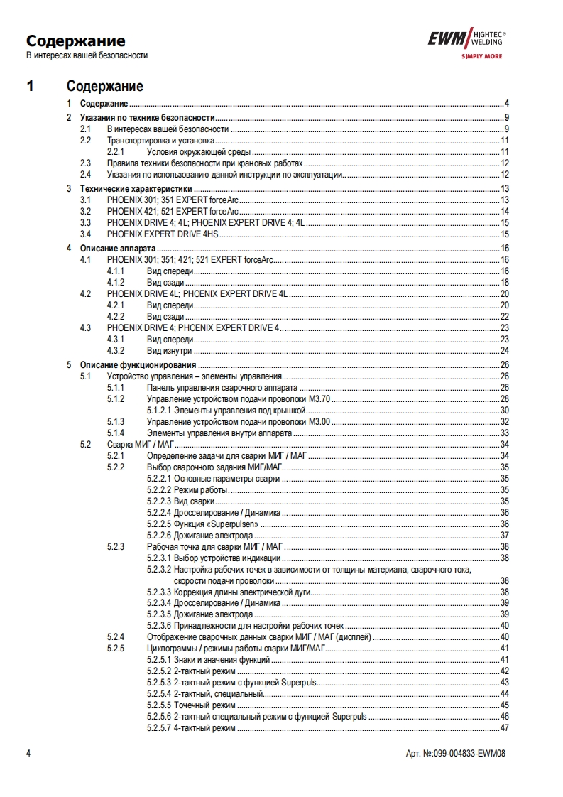 EWMHIGHTEC®AHRE GARANWELDINGHIGHTECOWELDINGP R E M I U M Q U A L I T YSIMPLY MOREYEARS WARRANTEWMHIGHTEC WELDING GmbHDr.Gunter-Henle-StraBe 8 D-56271 MundersbachF0n+492680181-0Fax+492680181-244www.ewm.de info@ewm.deRUPyKoBOACTBo no 3KcnnyaTaynnCBapka MMT/MAr,BMr n pyyHa cBapkaPHOENIX 301,351,421,521 EXPERT forceArcPHOENIX 301,351,421,521 EXPERT PULS forceArcPHOENIX 521 EXPERT HIGHSPEEDPHOENIX EXPERT DRIVE 4.4L4HSnepen BBOAOM B 3kcnnyaTauwo 0693aTenbHo npoyTHTe AaHHyo MHCTpyKyMo no 3KcnnyaTayMn!B npoTMBHOM cnyuae Bbl MoxeTe noABeprHyTbc onacHOCTn!O6cnyMBaHne annapata MoryT BbinonHTb TonbKo nMua,03Ha KoMneHHble C COOTBeTCTByHOWMMM MHCTpyKMAMM noTexHnKe be3onacHOCTN!Ha annapaTax MMeloTc ycnoBHble 0603HayeHN,noATBepKAarowne COoTBeTCTBMe Tpe6oBaHMM cneAyHOuMxHopMaTHBHbIX AoKyMeHTOB EC:Peko MeHgayMa EC "Hn3KOBonbTHa annapaTypa"(2006/95/EG)PekomeHgay EC/EMV(2004/108/EG)B cooTBeTCTBMM co CTaHAapraMM IEC 60974,EN 60974,VDE 0544 annapaTbl MoryT 3KcnnyaTmpoBaTbca BnoMeweHNAX c noBblweHHoM 3nekTpnyeckon onacHOCTbO.CooTBeTCTByeT Tpe6oBaHMAM:TOCT 12.2.007.0-75,rOCT 12.2.007.8-75,HopMbI 8-95ME05G⊕CooTBeTCTByeT Tpe6oBaHNAM:r0CT18130-79,f0CT13821-77,r0CT12.2.007.0-75,f0CT12.2.007.8-75,HopMb18-95CA©2008MoryT BHOCHTbCA M3MeHeHMA!ApT.Ne:099-004833-EWM08no CoCTORHNHO Ha:10.04.2008