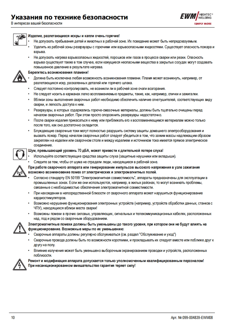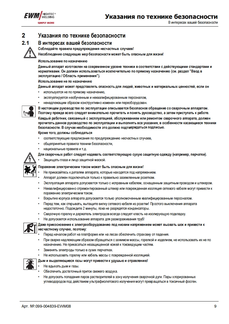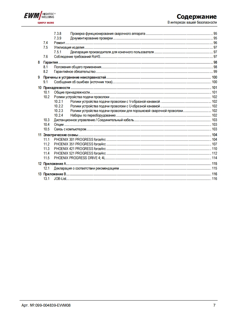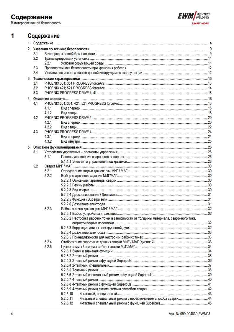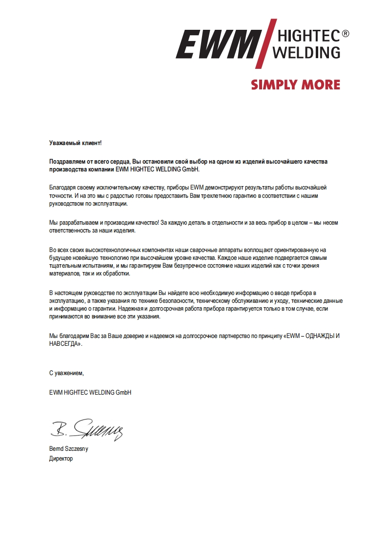 EWMHIGHTEC®RE GARRWELDINGHIGHTECWELDINGSIMPLY MORE3P R E M I U M Q U A L I T YYEARS WARRANTEWMHIGHTEC WELDING GmbHDr.Gunter-Henle-StraBe 8 D-56271 MundersbachFon+492680181-0Fax+492680181-244www.ewm.de info@ewm.deRUPyKoBOACTBo no 3KcnnyataynnCBapka MIT/MA,BWr n pyYHa cBapkaPHOENIX 301.351.421.521 PROGRESS forceArcPHOENIX 301,351,421,521 PROGRESS PULS forceArcPHOENIX PROGRESS DRIVE 4,4LnepeA BBOAOM B 3kcnnyaTauwo 0693aTenbHo npoyTHre AaHHyo MHCTpyKyMo no 3KcnnyaTaynn!B npoTMBHOM cnyuae Bbl MoxeTe noABeprHyTbca onacHOCTM!06cnyxMBaHne annapaTa MoryT BbinonHAT TonbKo nMua,03HaKoMneHHble C COoTBeTCTByHOWMMM MHCTPyKUMAMM noTexHnKe 6e3onacHOCTN!Ha annapaTax NMeloTca ycnoBHble 0603HayeHn,noATBepxnaroue CooTBeTCTBMe Tpe6oBaHMAM cneAyHouMxHopMaTBHbIX AoKyMeHTOB EC:PeKoMeHAaya EC"Hn3KOBonbTHa annapaTypa"(2006/95/EG)PekomeHgaya EC/EMV(2004/108/EG)B cooTBeTCTBMM co cTaHAapraMn IEC 60974,EN 60974,VDE 0544 annapaTbI MoryT 3KcnnyaTmpoBaTbCa BnoMeweHWAX c noBblweHHoM 3neKTpNyeckon onaCHOCTbO.CooTBeTCTByeT Tpe6oBaHMAM:TOCT 12.2.007.0-75,TOCT 12.2.007.8-75,HopMbI8-95ME05CooTBeTCTByeT Tpe6oBaHMAM:r0CT18130-79,「0CT13821-77,r0CT12.2.007.0-75,「0CT12.2.007.8-75,HopMb18-95CA©2008MoryT BHOCNTbCA N3MeHeHMA!ApT.Ne:099-004839-EWM08no CoCTOAHMHO Ha:11.03.2008