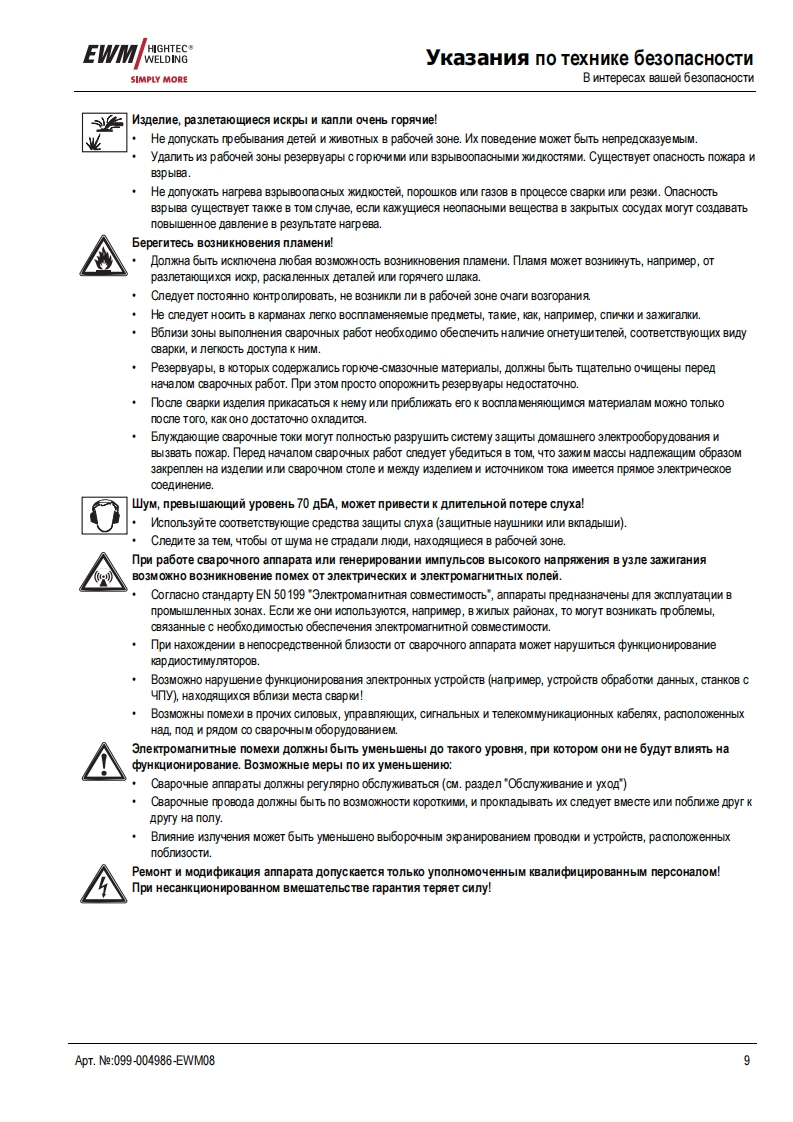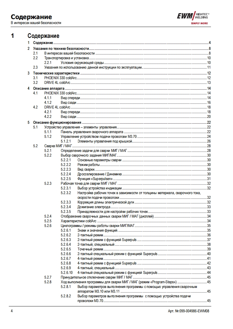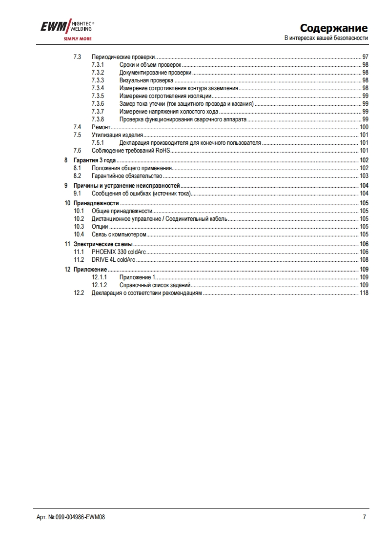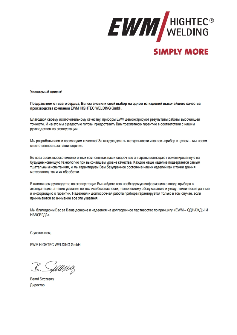 EWMHIGHTEC®JAHRE GARANTIRWELDINGHIGHTECWELDINGSIMPLY MORE3P R E M I U M Q U A L I T YYEARS WARRANTYEWMHIGHTEC WELDING GmbHDr.-Gunter-Henle-StraBe 8 D-56271 MundersbachPhone:+4926801810Fax:+492680181244www.ewm.de info@ewm.deRUMHcTpyKyna no 3KcnnyataynnCBapka MNr/MA n pyYHa cBapkaPHOENIX 330 coldArcPHOENIX DRIVE 4L coldArcnepeA BBOAOM B 3KcnnyaTayno o63aTenbHo npoyTTe AaHHyo HCTpyKywo no 3KcnnyaTayMn!B npoTMBHOM cnyuae BbI MoxeTe noABeprHyTbca onacHOCTM!O6cnyxnBaHme annapaTa MoryT BbinonHATb TonbKo nMua,03Ha KoMneHHble C COoTBeTCTByHOW MMM MHCTPyKMAMM noTexHnKe 6e3onacHoCTM!Ha annapaTax nMeroTc ycnoBHble 0603HayeHn,noATBepxKAarowme CooTBeTCTBMe Tpe6oBaHNAM cneAyHOwMxHopMaTWBHbIX AoKyMeHTOB EC:PekoMeHnayMa EC "Hn3KOBOnbTHa annapaTypa"(2006/95/EG)PexomeHgay EC/EMV(2004/108/EG)B cooTBeTCTBMM co cTaHAapTaMM IEC 60974,EN 60974,VDE 0544 annapaTbl MoryT 3KcnnyaTmpoBaTbca BnoMeweHNAX c noBblweHHON 3nekTpNyeckon onacHOCTbHO.CooTBeTcTByeT Tpe6oBaHMAM:TOCT 12.2.007.0-75,rOCT 12.2.007.8-75,HopMbI 8-95ME05CooTBeTCTByeT Tpe6oBaHMAM:r0cT18130-79,r0cT13821-77,f0CT12.2.007.0-75,「0cT12.2.007.8-75,HopMb18-95CA©2007MoryT BHOCNTbCA N3MeHeHNA!ApT.N№:099-004986-EWM08no cocTOHNO Ha:16.05.2007