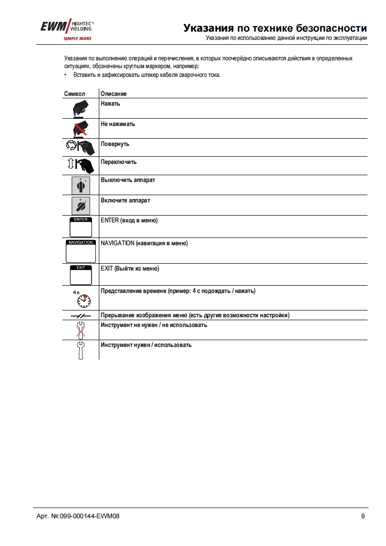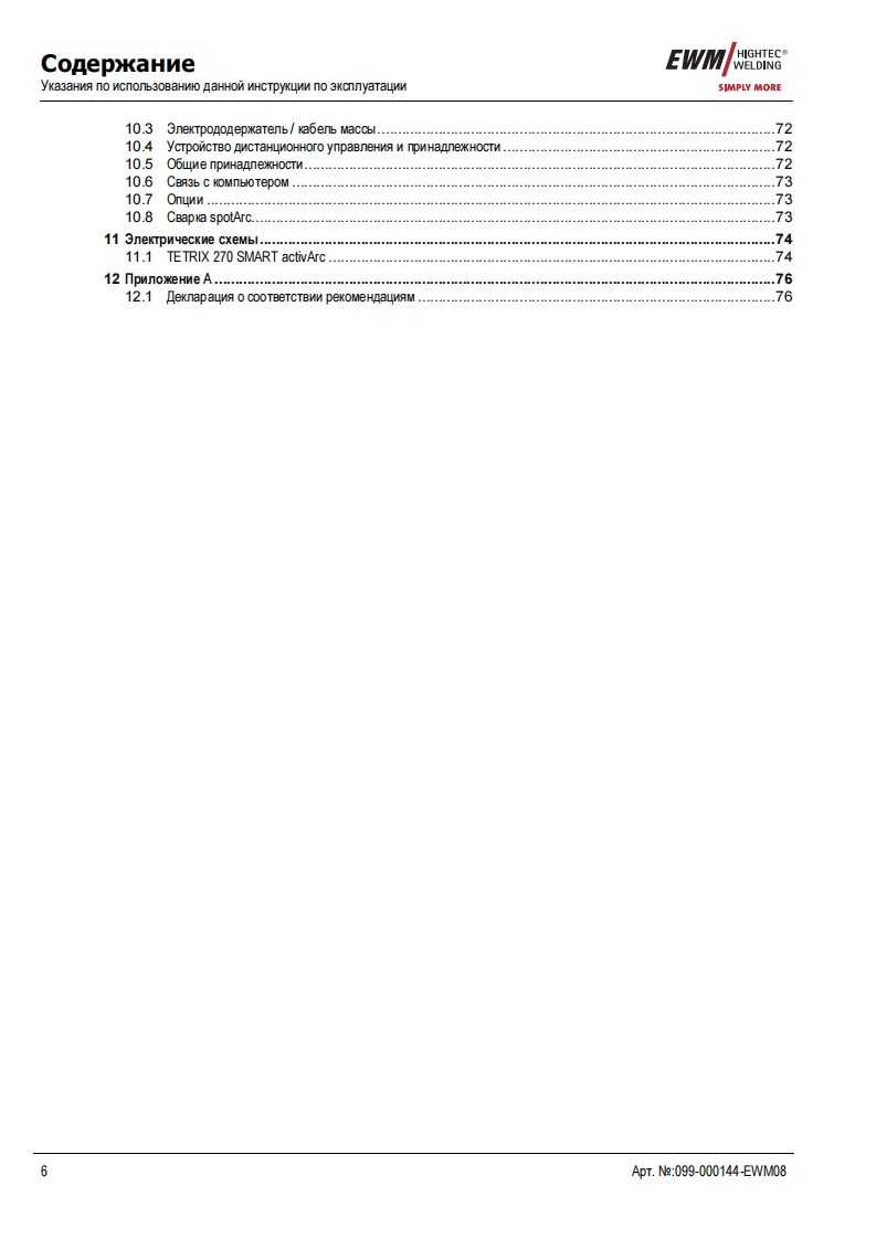 、三一一民、EWMHIGHTEC®WELDINGEWMHIGHTECWELDINGSIMPLY MORESIMPLY MOREYEARS WARRANTYEWMHIGHTEC WELDING GmbHDr.Gunter-Henle-StraBe 8 D-56271 MundersbachF0n+492680181-0Fax+492680181-244www.ewm.de info@ewm.deRUPyKoBOACTBo no 3KcnnyataynnCBapoyHbin annapat n cBapkn BMr n pyyHon cBapknCTepHeBbIMN 3neKTponaMnTETRIX 270 SMART activArc TGDnepeA BBOAOM B 3kcnnyaTaywo 0693aTenbHo npoyTHTe AaHHyo MHCTpyKyMo no 3kcnnyaTayMn!B npoTHBHOM cnyuae Bbl MoxeTe noABeprHyTbca onacHOCTn!O6cnyxnBaHne annapatTa MoryT BbinonHATb TonbKo nmua,03Ha KoMneHHble C COoTBeTCTByHOWMMM MHCTPyKUMAMM noTexHnKe 6e3onacHocT!Ha annapaTax MMeroTc ycnoBHble 0603HayeHM,noATBepxAaroume CooTBeTCTBMe Tpe6oBaHMAM cneAyHOMxHopMaTMBHbIX AoKyMeHTOB EC:PeKoMeHAaya EC "Hn3KOBonbTHa annapaTypa"(2006/95/EG)PekoMeHgaya EC/EMV(2004/108/EG)B cooTBeTCTBMM co cTaHAapraMM IEC 60974,EN 60974,VDE 0544 annapaTbl MoryT 3KcnnyaTmpoBaTbca BnoMeweHNAX c noBblweHHON 3nekTpNyeckon onacHOCTbHO.CooTBerCTByeT Tpe6oBaHMAM:TOCT 12.2.007.0-75,rOCT 12.2.007.8-75,HopMbI 8-95MEO5CooTBeTCTByeT Tpe6oBaHMAM:「0CT18130-79,「0cT13821-77,「0CT12.2.007.0-75,「0CT12.2.007.8-75,HopMb18-95CAConepxaHne MHCTpyKuMM no 3KcnnyaTayMn He o60CHOBbIBaeT npeTeH3MM Co CToPoHbI nokynaTenABTopckne npaBa Ha 3Ty MHCTpyKuMo no 3KcnnyaTaun npMHannexaT M3rOTOBMTeno.nepeneyaTka,Aaxke B Bnge Bblnepxek,TonbKo c nMcbMeHHoro pa3peweHnA.©2009ApT.e:099-000144-EWMM08no cocTORHNO Ha:05.10.2009