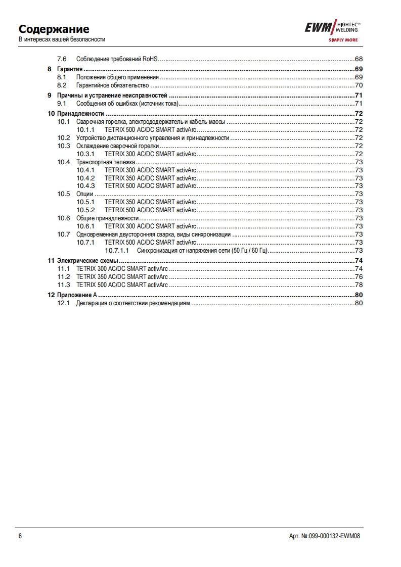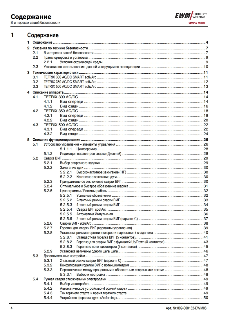 EWMHIGHTEC®/代E GARWELDINGHIGHTECOWELDINGPM1 U M QUA11TYSIMPLY MOREYEARS WARRANTIEWMHIGHTEC WELDING GmbHDr.Gunter-Henle-StraBe 8 D-56271 MundersbachF0n+492680181-0Fax+492680181-244www.ewm.de info@ewm.deRUPyKoBOACTBo no 3KcnnyataynnCBapoyHbin annapaT an cBapkn BMr n pyyHon cBapknCTep/HeBbIMN 3neKTponaMnTETRIX 300,350,500 AC/DC SMART activArcnepeA BBOAOM B 3kcnnyaTaywo 0693aTenbHo npoyTHTe AaHHyo MHCTpyKyMo no 3kcnnyaTayMn!B npoTHBHOM cnyuae Bbl MoxeTe noABeprHyTbca onacHOCTn!O6cnyxnBaHne annapaTa MoryT BbinonHATb TonbKo nMua,03Ha KoMneHHble C COoTBeTCTByHOWMMM MHCTPyKUMAMM noTexHnKe 6e3onacHocT!Ha annapaTax MMeroTc ycnoBHble 0603HayeHM,noATBepxAaroume CooTBeTCTBMe Tpe6oBaHMAM cneAyHOMxHopMaTMBHbIX AoKyMeHTOB EC:PeKoMeHAaya EC "Hn3KOBonbTHa annapaTypa"(2006/95/EG)PekoMeHgaya EC/EMV(2004/108/EG)B cooTBeTCTBMM co cTaHAapraMM IEC 60974,EN 60974,VDE 0544 annapaTbl MoryT 3KcnnyaTmpoBaTbca BnoMeweHNAX c noBblweHHON 3nekTpNyeckon onacHOCTbHO.CooTBerCTByeT Tpe6oBaHMAM:TOCT 12.2.007.0-75,rOCT 12.2.007.8-75,HopMbI 8-95MEO5CooTBeTCTByeT Tpe6oBaHMAM:「0CT18130-79,「0cT13821-77,「0CT12.2.007.0-75,「0CT12.2.007.8-75,HopMb18-95CAConepxaHne MHCTpyKuMM no 3KcnnyaTayMn He o60CHOBbIBaeT npeTeH3MM Co CToPoHbI nokynaTenABTopckne npaBa Ha 3Ty MHCTpyKuNHo no 3 Kcnnyatayww npMHannexaT N3roTOBNTeno.nepeneyaTka,Aaxke B Bnge Bblnepxek,TonbKo c nMcbMeHHoro pa3peweHnA.©2008MoryT BHOCHTbCA M3MeHeHMA!ApT.e:099-000132-EWMM08no COCTOAHNO Ha:02.06.2008