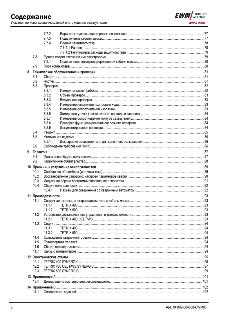 、三一一民素HIGHTEC®WELDING3EWMEWMHIGHTECWELDINGSIMPLY MORESIMPLY MOREYEARS WARRANTYEWMHIGHTEC WELDING GmbHDr.Gunter-Henle-StraBe 8 D-56271 MundersbachF0n+492680181-0Fax+492680181-244www.ewm.de info@ewm.deRUPyKoBOACTBo no 3KcnnyataynnCBapoyHbin annapaT an cBapkn BMr n pyyHon cBapknCTepHeBbIMN 3neKTponaMnTETRIX 400,500 SYNERGIC activArcTETRIX 400 CEL PWS activArcnepeA BBOAOM B 3kcnnyaTaywo 0693aTenbHo npoyTHTe AaHHyo MHCTpyKyMo no 3kcnnyaTayMn!B npoTMBHOM cnyuae Bbl MoxeTe noABeprHyTbca onacHOCTM!O6cnyxnBaHne annapaTa MoryT BbinonHATb TonbKo nMua,03Ha KoMneHHble C COoTBeTCTByHOWMMM MHCTPyKUMAMM noTexHnKe 6e3onacHocT!Ha annapaTax MMeroTc ycnoBHble 0603HayeHM,noATBepxAaroume CooTBeTCTBMe Tpe6oBaHMAM cneAyHOMxHopMaTMBHbIX AoKyMeHTOB EC:PeKoMeHAaya EC "Hn3KOBonbTHa annapaTypa"(2006/95/EG)PekoMeHgaya EC/EMV(2004/108/EG)B cooTBeTCTBMM co cTaHAapraMM IEC 60974,EN 60974,VDE 0544 annapaTbl MoryT 3KcnnyaTmpoBaTbca BnoMeweHNAX c noBblweHHON 3nekTpNyeckon onacHOCTbHO.CooTBerCTByeT Tpe6oBaHMAM:TOCT 12.2.007.0-75,rOCT 12.2.007.8-75,HopMbI 8-95MEO5CooTBeTCTByeT Tpe6oBaHMAM:「0CT18130-79,「0cT13821-77,「0CT12.2.007.0-75,「0CT12.2.007.8-75,HopMb18-95CAConepxaHne MHCTpyKuMM no 3KcnnyaTayMn He o60CHOBbIBaeT npeTeH3MM Co CToPoHbI nokynaTenABTopckne npaBa Ha 3Ty MHCTpyKuMo no 3kcnnyaTaun npMHannexaT M3rOTOBMTeno.nepeneyaTka,Aaxke B Bnge Bblnepxkek,TonbKo c nMcbMeHHoro pa3peweHnA.©2009ApT.e:099-004888-EWMM08几cocTo9 HO Ha::04.04.2009