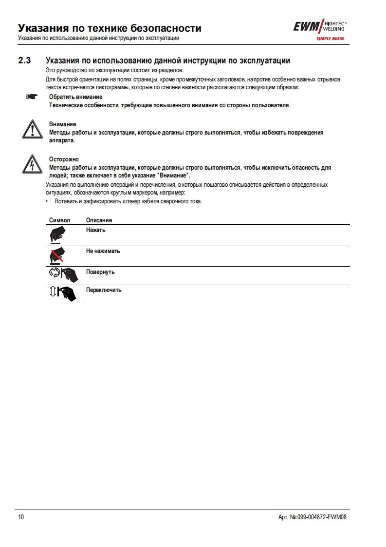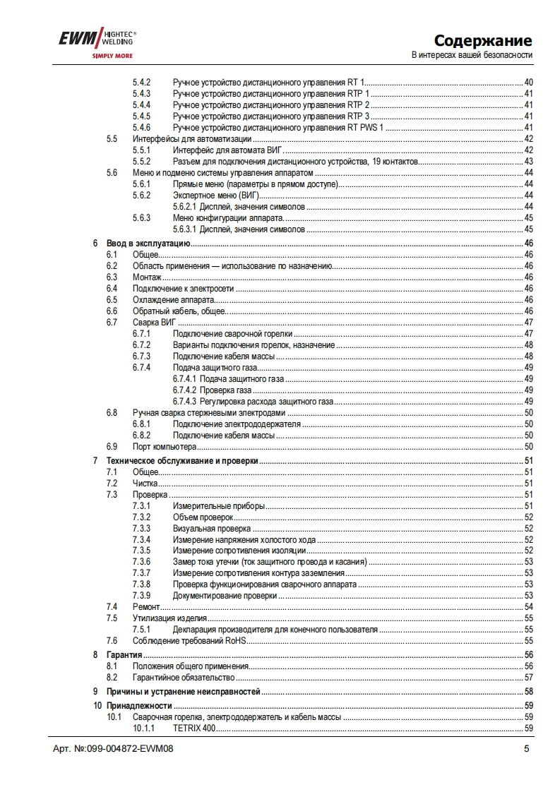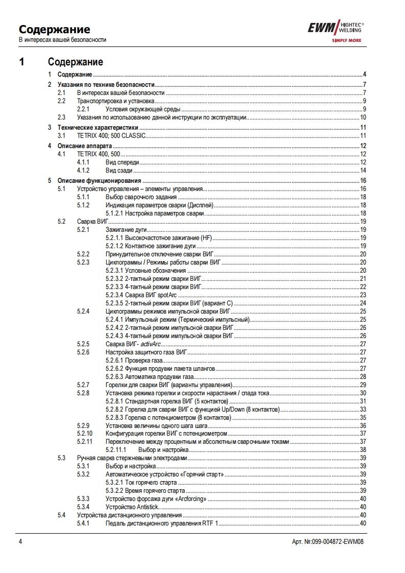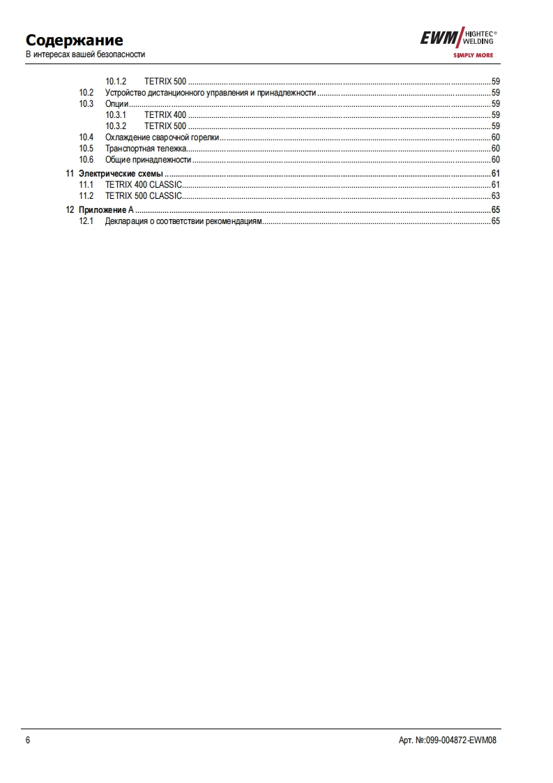 EWMHIGHTEC®E GAWELDINGHIGHTECOWELDINGPM1 U M QUA11TYSIMPLY MOREYEARS WARRANTEWMHIGHTEC WELDING GmbHDr.Gunter-Henle-StraBe 8 D-56271 MundersbachF0n+492680181-0Fax+492680181-244www.ewm.de info@ewm.deRUPyKoBOACTBo no 3KcnnyataynnCBapoyHbin annapat n cBapkn BMr n pyyHon cBapknCTepHeBbIMN 3neKTponaMnTETRIX 400,500 CLASSIC activArcnepeA BBOAOM B 3kcnnyaTaywo 0693aTenbHo npoyTHTe AaHHyo MHCTpyKyMo no 3kcnnyaTayMn!B npoTHBHOM cnyuae Bbl MoxeTe noABeprHyTbca onacHOCTn!O6cnyxnBaHne annapaTa MoryT BbinonHATb TonbKo nMua,03Ha KoMneHHble C COoTBeTCTByHOWMMM MHCTPyKUMAMM noTexHnKe 6e3onacHocTn!Ha annapaTax MMeroTc ycnoBHble 0603HayeHM,noATBepxAaroume CooTBeTCTBMe Tpe6oBaHMAM cneAyHOMxHopMaTMBHbIX AoKyMeHTOB EC:PeKoMeHAaya EC "Hn3KOBonbTHa annapaTypa"(2006/95/EG)PekoMeHgaya EC/EMV(2004/108/EG)B cooTBeTCTBMM co cTaHAapraMM IEC 60974,EN 60974,VDE 0544 annapaTbl MoryT 3KcnnyaTmpoBaTbca BnoMeweHNAX c noBblweHHON 3nekTpNyeckon onacHOCTbHO.CooTBerCTByeT Tpe6oBaHMAM:TOCT 12.2.007.0-75,rOCT 12.2.007.8-75,HopMbI 8-95MEO5CooTBeTCTByeT Tpe6oBaHMAM:「0CT18130-79,「0cT13821-77,「0CT12.2.007.0-75,「0CT12.2.007.8-75,HopMb18-95CAConepxaHne MHCTpyKuMM no 3KcnnyaTayMn He o60CHOBbIBaeT npeTeH3MM Co CToPoHbI nokynaTenABTopckne npaBa Ha 3Ty MHCTpyKuNHo no 3 Kcnnyatayww npMHannexaT N3roTOBNTeno.nepeneyaTka,Aaxke B Bnge Bblnepxek,TonbKo c nMcbMeHHoro pa3peweHnA.©2008MoryT BHOCHTbCA M3MeHeHMA!ApT.e:099-004872-EWMM08no cocTORHNO Ha:19.06.2008