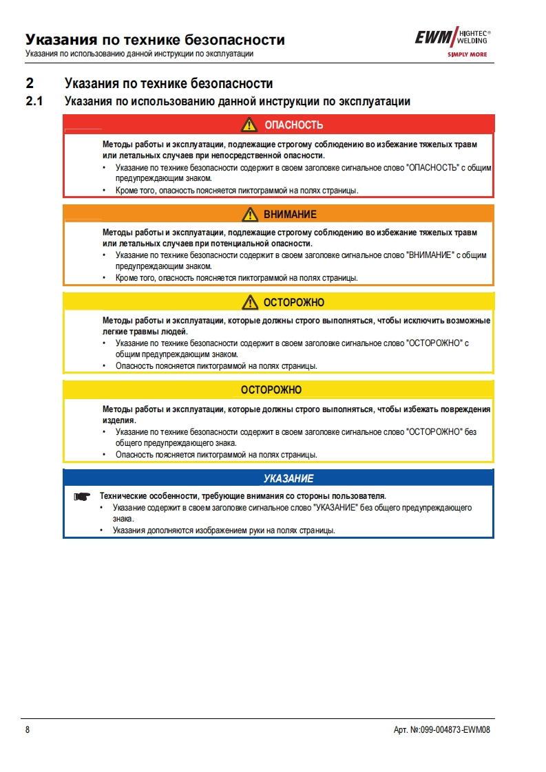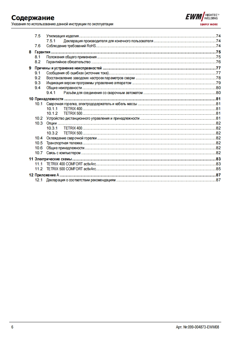 来三一EWMHIGHTEC®WELDINGEWMHIGHTECWELDINGSIMPLY MORESIMPLY MOREYEARS WARRANTYEWMHIGHTEC WELDING GmbHDr.Gunter-Henle-StraBe 8 D-56271 MundersbachF0n+492680181-0Fax+492680181-244www.ewm.de info@ewm.deRUPyKoBOACTBo no 3KcnnyataynnCBapoyHbin annapat n cBapkn BMr n pyyHon cBapknCTep/HeBbIMN 3neKTponaMnTETRIX 400,500 COMFORT activArcnepeA BBOAOM B 3kcnnyaTaywo 0693aTenbHo npoyTHTe AaHHyo MHCTpyKyMo no 3kcnnyaTayMn!B npoTHBHOM cnyuae Bbl MoxeTe noABeprHyTbca onacHOCTn!O6cnyxnBaHne annapaTa MoryT BbinonHATb TonbKo nMua,03Ha KoMneHHble C COOTBeTCTByHOWMMM MHCTPyKMAMM noTexHnKe 6e3onacHocT!Ha annapaTax MMeroTc ycnoBHble 0603HayeHM,noATBepxAaroume CooTBeTCTBMe Tpe6oBaHMAM cneAyHOMxHopMaTMBHbIX AoKyMeHTOB EC:PeKoMeHAaya EC "Hn3KOBonbTHa annapaTypa"(2006/95/EG)PekoMeHgaya EC/EMV(2004/108/EG)B cooTBeTCTBMM co cTaHAapraMM IEC 60974,EN 60974,VDE 0544 annapaTbl MoryT 3KcnnyaTmpoBaTbca BnoMeweHNAX c noBblweHHON 3nekTpNyeckon onacHOCTbHO.CooTBerCTByeT Tpe6oBaHMAM:TOCT 12.2.007.0-75,rOCT 12.2.007.8-75,HopMbI 8-95MEO5CooTBeTCTByeT Tpe6oBaHMAM:「0CT18130-79,「0cT13821-77,「0CT12.2.007.0-75,「0CT12.2.007.8-75,HopMb18-95CAConepxaHne MHCTpyKuMM no 3KcnnyaTayMn He o60CHOBbIBaeT npeTeH3MM Co CToPoHbI nokynaTenABTopckne npaBa Ha 3Ty MHCTpyKuMo no 3 KcnnyaTayn npMHannexaT M3rOTOBNTeno.nepeneyaTka,Aaxke B Bnge Bblnepxek,TonbKo c nMcbMeHHoro pa3peweHnA.©2009ApT.e:099-004873-EWMM08no cocTORHNHO Ha:14.09.2009