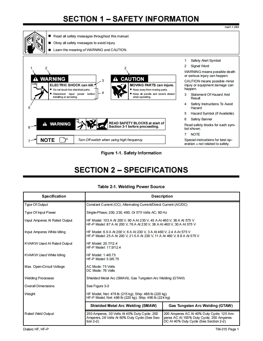 MillerMay 1995Form:TM-315Effective With Serial No.HF826825TECHNICAL MANUALService And PartsDialarc®HF And HF-PFor SMAW And GTAW WeldingAWARNINGUse MILLER Testing Booklet (Part No150 853)when servicing this unit.SERVICING can be hazardous.◆Use only genuine MILLER replacementHave all service procedures perfomed only byparts.qualified persons following standard safetypractices.For help,call FactoryOr FAX inside the USA:■Or write to面Service Department:800-637-2348MILLER Electric Mfg.Co.414-735-4505■Outside the USA:可P.0.BoX1079414-735-4136Appleton,WI 54912 USAc0er_tm5/95-Re1.sT070399-D1995 MILLER Bectric Mlg.Co.PRINTED IN USA