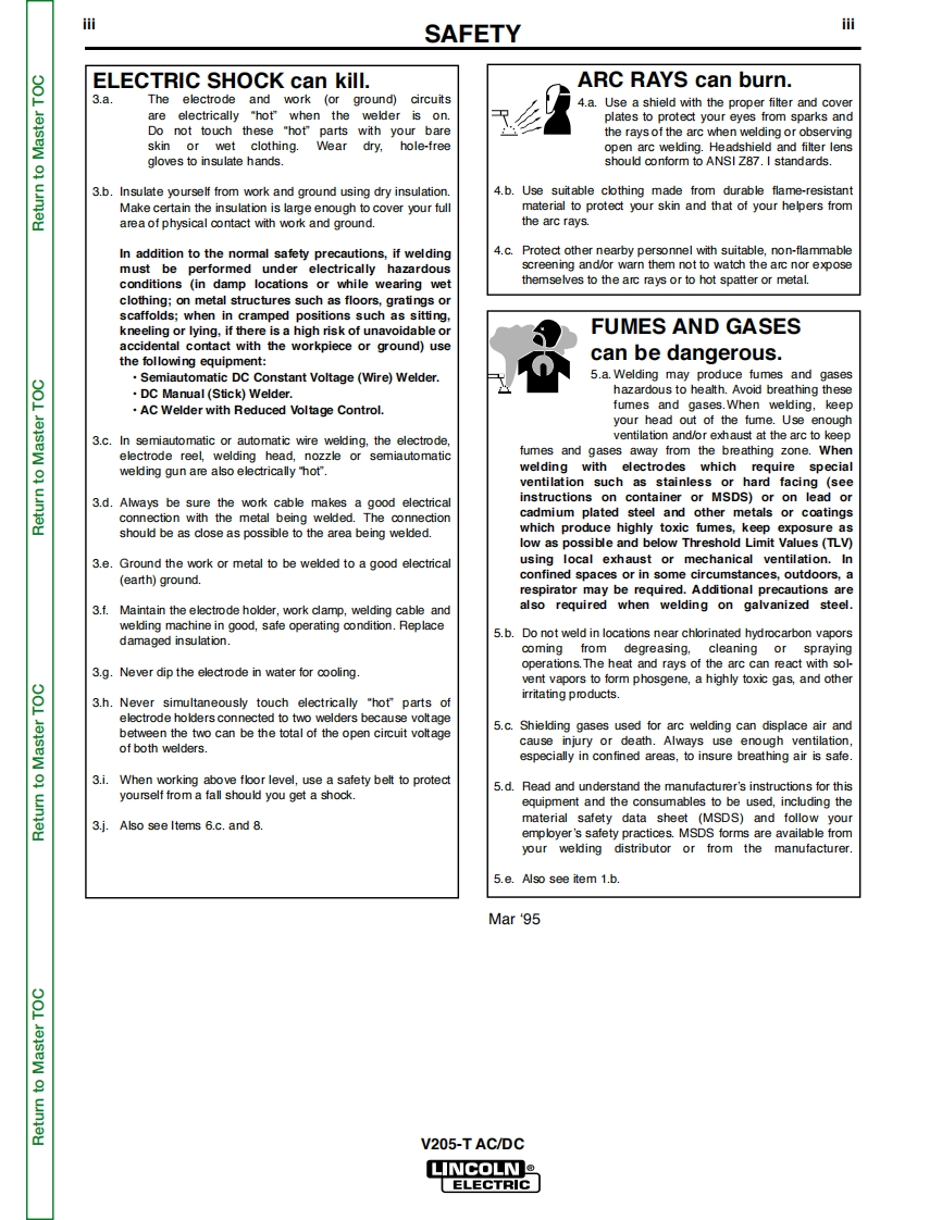 RETURN TO MAIN MENUSVM161-AFebruary,2006INVERTEC V205-TAC/DCFor use with machine code number 10860Safety Depends on YouLincoln arc welding and cuttingequipment is designed and builtwith safety in mind.However,MeIAyour overall safety can beincreased by proper installation..and thoughtful operation onyour part.DO NOT INSTALL,OPERATE OR REPAIR THISEQUIPMENT WITHOUT READ-ING THIS MANUAL AND THESAFETY PRECAUTIONS CON-TAINED THROUGHOUT.And,most importantly,think beforeyou act and be careful.③X@五2SERVICE MANUALLINCOLNELECTRICWorld's Leader in Welding and Cutting Products.Sales and Service through Subsidiaries and Distributors Worldwide.Cleveland,Ohio 44117-1199 U.S.A.TEL:216.481.8100 FAX:216.486.1751 WEB SITE:www.lincolnelectric.com