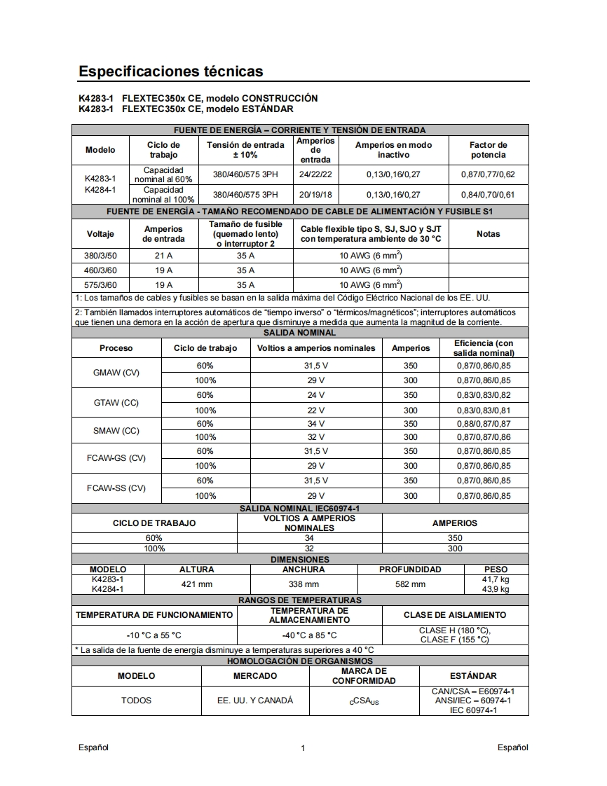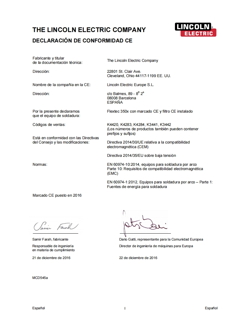 IM207502J2017REV0OFLEXTEC 350x CEMANUAL DEL USUARIOFLEXTECELECTRICSPANISHLINCOLNELECTRICTHE LINCOLN ELECTRIC COMPANY22801 St.Clair Ave.,Cleveland Ohio 44117-1199 EE.UU.ww.lincolnelectric.eu