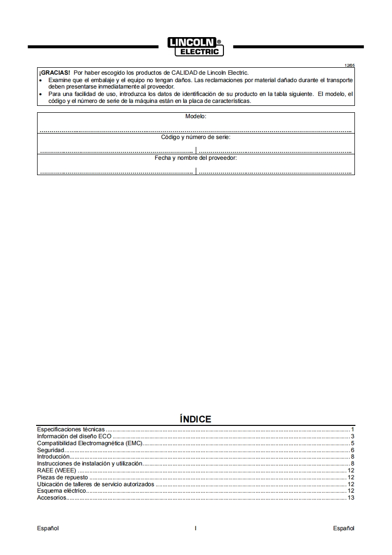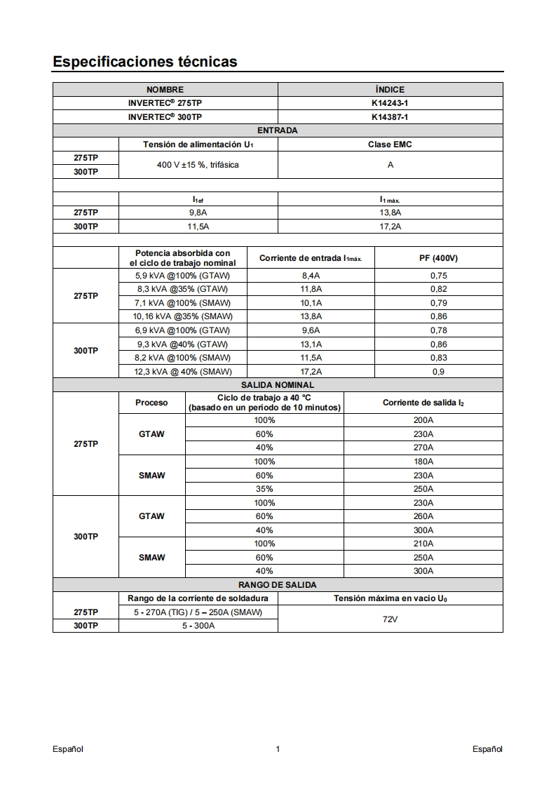IM3136062023REV05INVERTEC®275TPINVERTEC®300TPMANUAL DE INSTRUCCIONES275TPLComeSPANISHLINCOLNELECTRICLincoln Electric Bester Sp.z o.o.ul.Jana lll Sobieskiego 19A,58-260 Bielawa,Poloniawww.lincolnelectric.eu