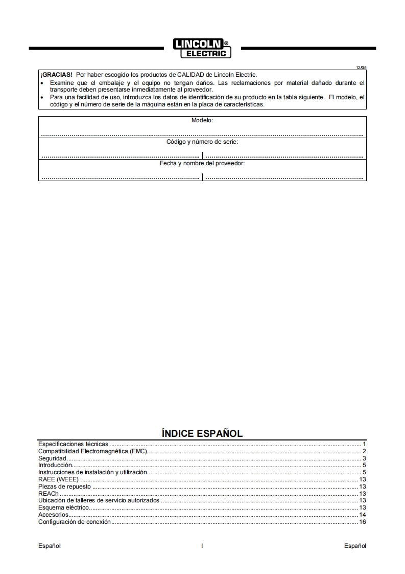 IM3165062022REV04LF 56DMANUAL DE INSTRUCCIONESLF560LINCOLNELECTRICo7gTSPANISHLINCOLNELECTRICLincoln Electric Bester Sp.zo.oul.Jana lll Sobieskiego 19A.58-260 Bielawa,Poloniawww.lincolnelectric.eu
