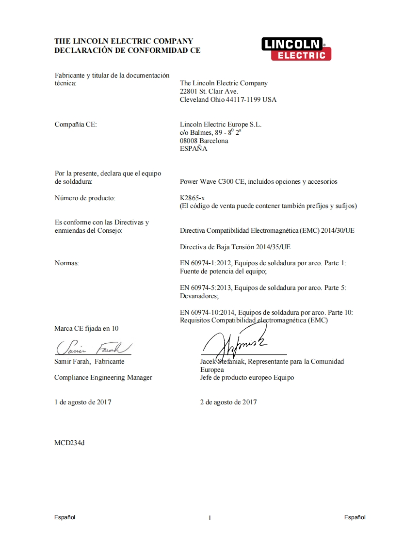 IM203309/2017REV01POWER WAVE C300 CEMANUAL DE INSTRUCCIONESPOWER WAVELINCOLNELECTRICC300CESPANISHLINCOLNELECTRIC」THE LINCOLN ELECTRIC COMPANY22801 St.Clair Ave.,Cleveland Ohio 44117-1199 USAww.lincolnelectric.eu