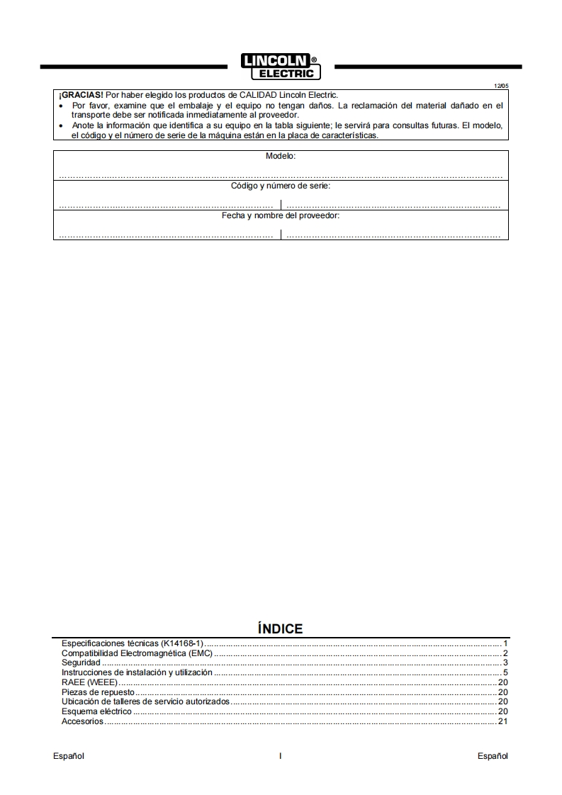 IM307504/2019REV03SPEEDTEC 320CPMANUAL DE INSTRUCCIONES)-SPEEDTEC320cp7%LINCOLNLELECTRICSPANISHLINCOLNELECTRICLincoln Electric Bester Sp.zo.o.ul.Jana Ill Sobieskiego 19A,58-263 Bielawa,Polandwww.lincolnelectric.eu