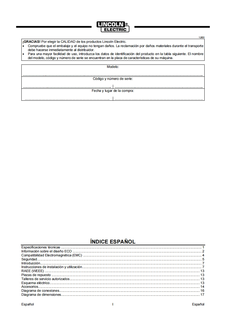 IM3194092024REV0OSQUARE WAVE®4O0ADVMANUAL DE INSTRUCCIONESSGUARE WAVE 400 AGY的La☑ARE WAVE 400SPANISHLINCOLN鱼ELECTRICLincoln Electric Bester Sp.zo.o.ul.Jana Ill Sobieskiego 19A,58-260 Bielawa,Poloniawww.lincolnelectric.eu