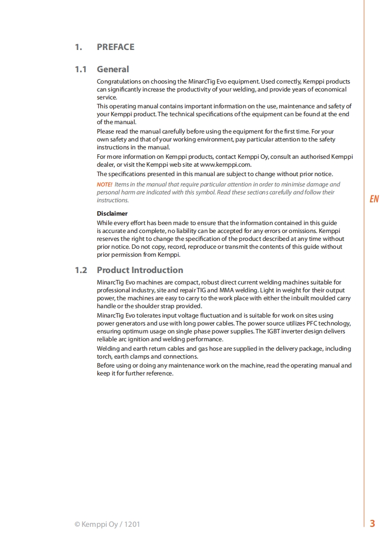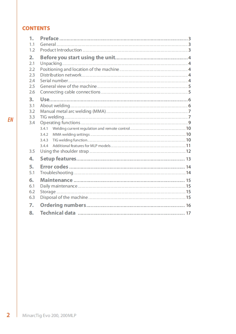 MinarcTigEV0200.200MLPOperating manualENKayttoohjeABruksanvisningSVBruksanvisningNOBrugsanvisningDAGebrauchsanweisungDEGebruiksaanwijzingNLManuel d'utilisationFRManual de instruccionesESInstrukcja obstugiPLMHCTpyKLMN no 3KcnmyaTaulNRUManual de utilizacaoPTManuale d'uso仑KEMPPIThe Joy of Welding