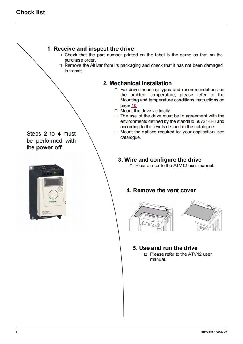 ATV12P_installation_2009_en安装调试手册找手册网29天前发布关注私信0.38MB18页021ATV12P_installation_2009_en安装调试手册此内容为付费资源,请付费后查看¥19¥21黄金会员免费钻石会员免费登录购买付费资源 第1页 / 共18页 第2页 / 共18页 第3页 / 共18页 第4页 / 共18页 第5页 / 共18页 第6页 / 共18页 第7页 / 共18页 第8页 / 共18页 第9页 / 共18页 第10页 / 共18页 试读已结束,还剩8页,您可下载完整版后进行离线阅读 THE END施耐德 文本预览 Altivar 1 2PBaseplate variable speed drivesfor asynchronous motorsInstallation manual09/2009RL1SL2N©●●●AscineiderAY12037N2Q3nw0P.2/2718899SchneiderElectricwww.schneider-electric.com 查看更多 收起部分 喜欢就支持一下吧收藏