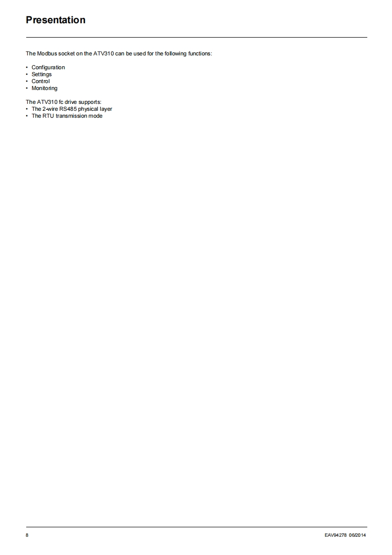 ATV310_Modbus_manual-2014找手册网28天前发布关注私信0.62MB28页020ATV310_Modbus_manual-2014此内容为付费资源,请付费后查看¥19¥21黄金会员免费钻石会员免费登录购买付费资源 第1页 / 共28页 第2页 / 共28页 第3页 / 共28页 第4页 / 共28页 第5页 / 共28页 第6页 / 共28页 第7页 / 共28页 第8页 / 共28页 第9页 / 共28页 第10页 / 共28页 试读已结束,还剩18页,您可下载完整版后进行离线阅读 THE END施耐德 文本预览 Altivar 310Variable speed drivesfor asynchronous motorsModbus Communication Manual06/2014退出seederAA险SchneiderElectricwww.schneider-electric.com 查看更多 收起部分 喜欢就支持一下吧收藏