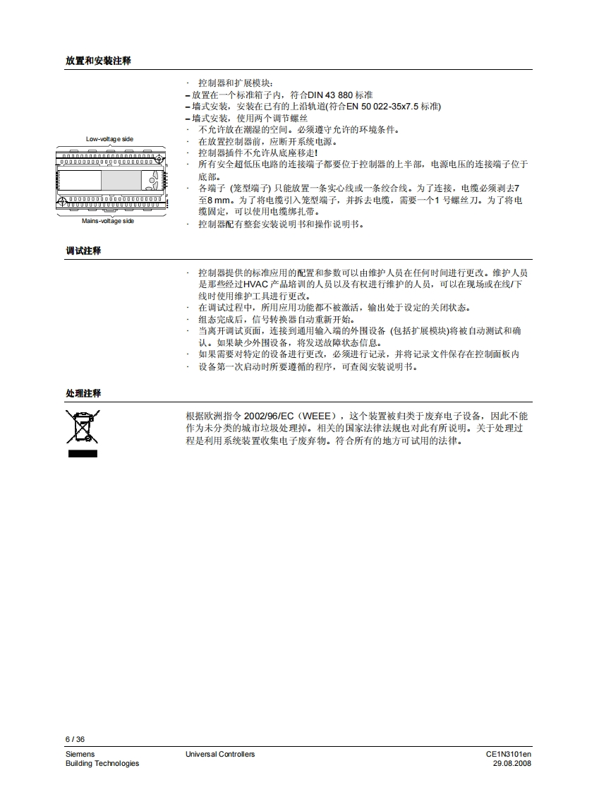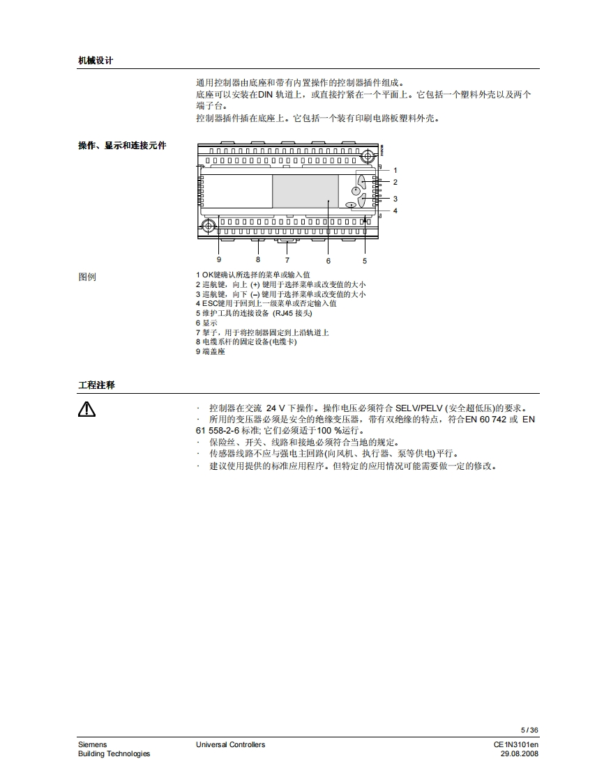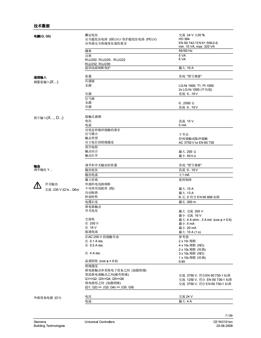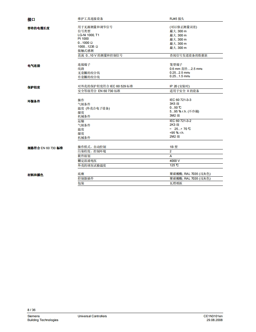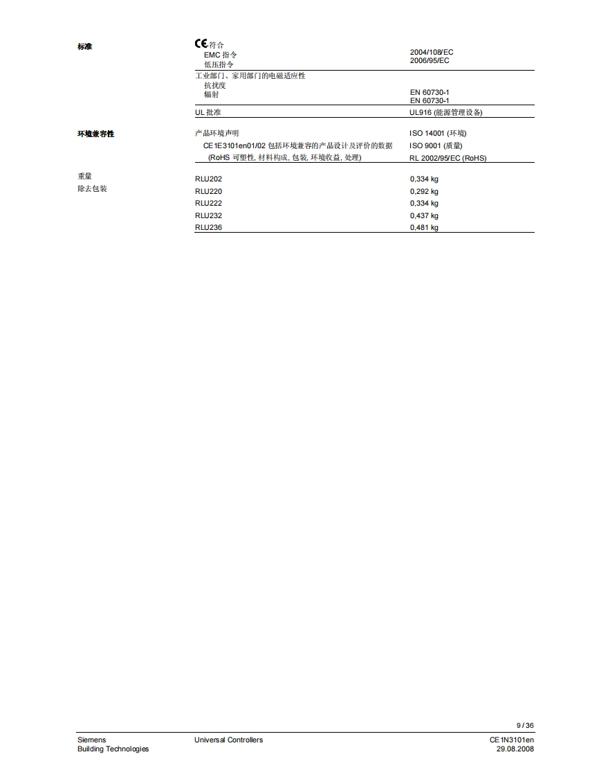 3101iiliil i n i il i ii H11111311131111111HSynco TM 200通用控制器RLU2...带有预置的标准应用自由编程的控制器,以适用于相关合适的工艺类型。P,PL,或PID模式菜单选择操作用途用于从基本到复杂的通风、空调和制冷工艺设备。通用控制器用于处理以下控制变量:温度、相对/绝对湿度、压力/差压、气体流量、室内空气质量和焓值。CE1N3101en29.08.2008Building Technologies