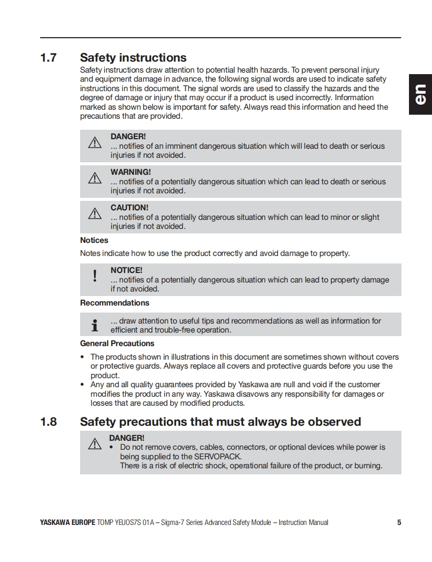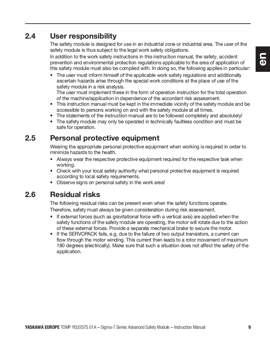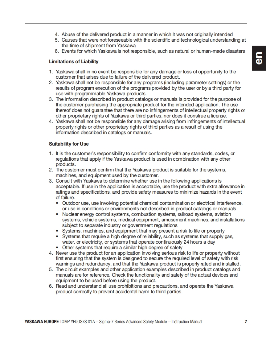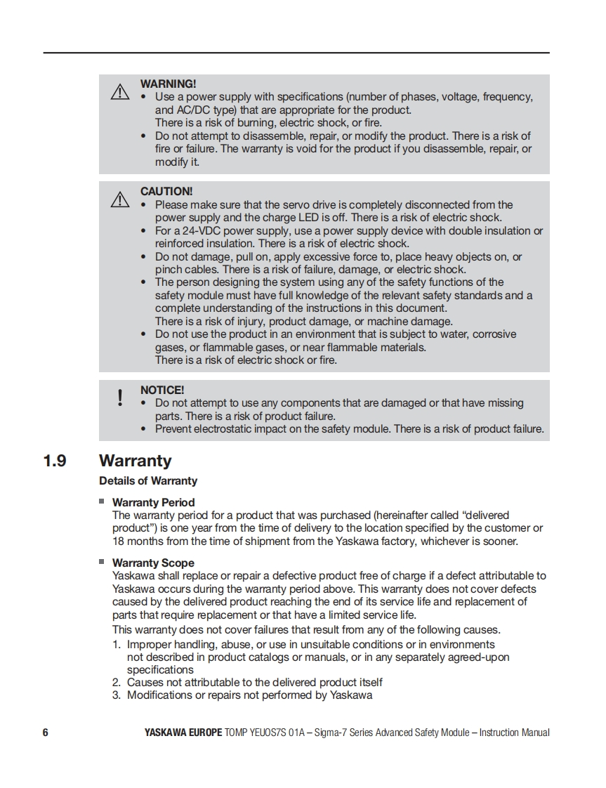 YASKAWAAdvanced Safety Module品for Sigma-7 SERVOPACK SGD7S-☐▣☐DA0▣8☐☐F91,400VInstruction ManualModel:SGD7S-OSBO1AgSGD7S-OSB02ATo properly use the product,read this manual thoroughly and retain for easyreference,inspection,and maintenance.Ensure the end user receives this manual中出出8a9中E台Manual No.TOMP YEUOS7S 01A