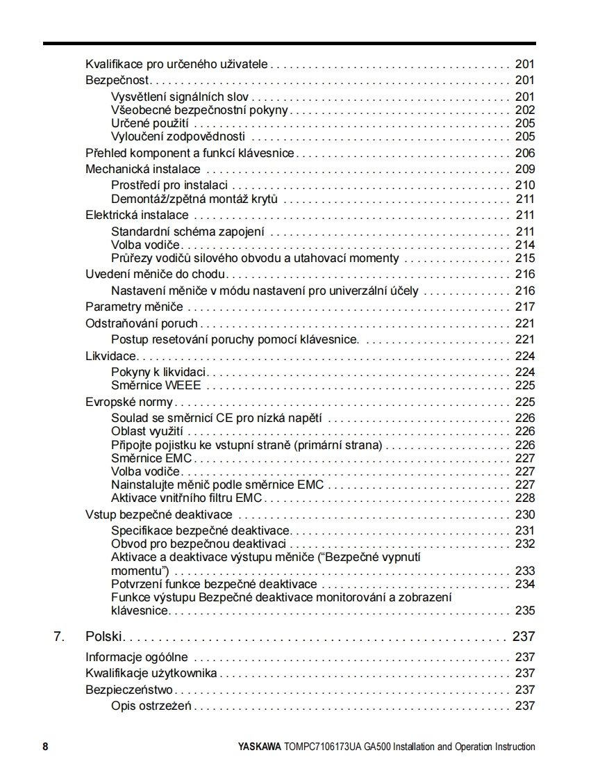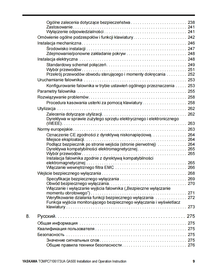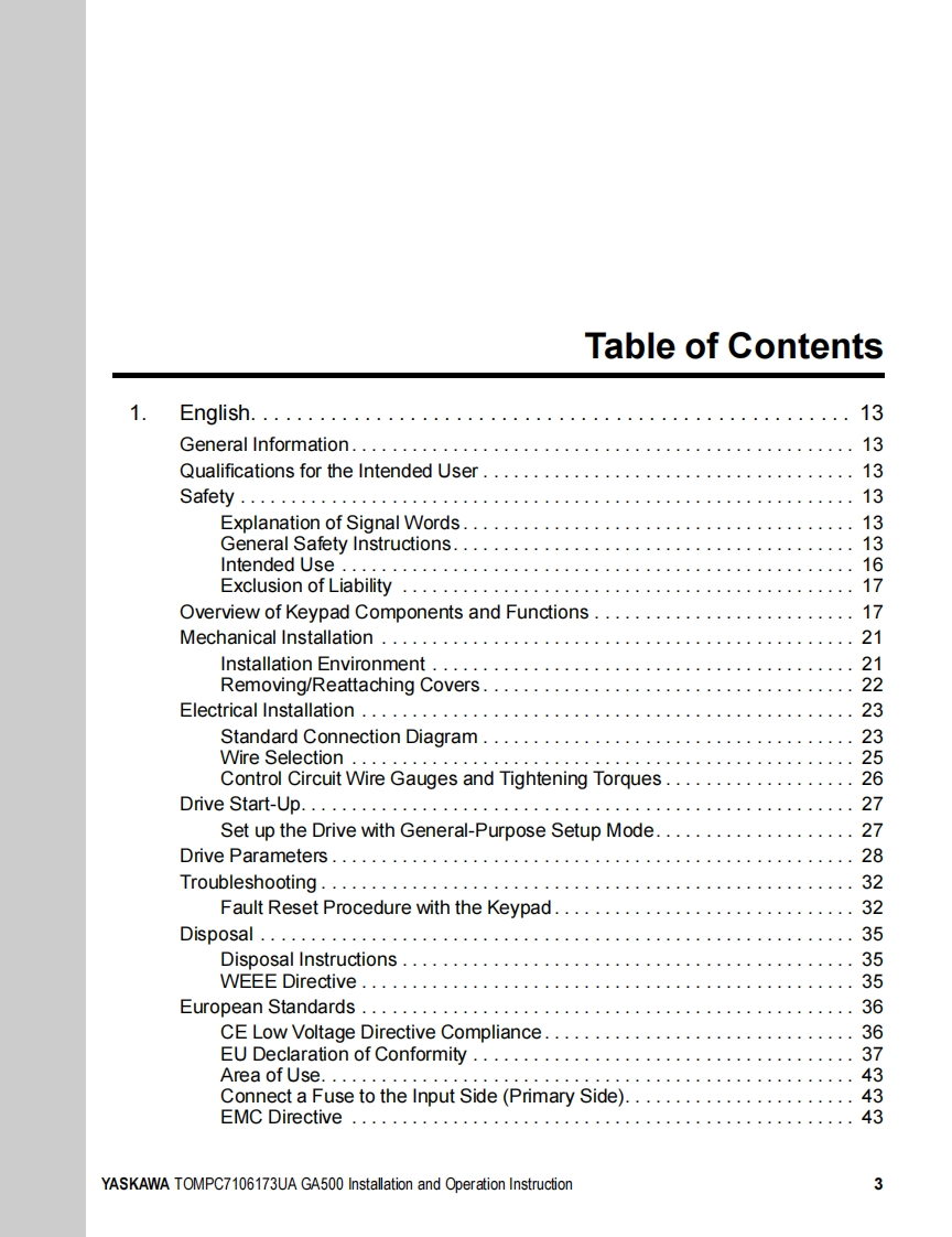 YASKAWAGA500AC Micro Drives for Industrial ApplicationsInstallation and Operation InstructionModel:CIPR-GA50CxxxxxxxxType:200 V Class,Single-Phase Input:0.1 to 4.0 kW200 V Class,Three-Phase Input:0.1 to 22 kW400 V Class,Three-Phase Input:0.37 to 30 kWHTML0配AA WARNNGA△告YASKAWAGA500