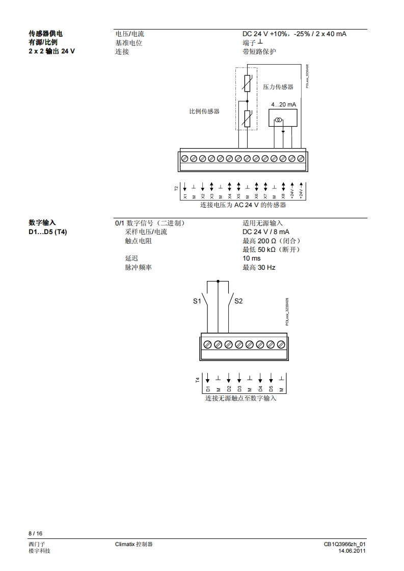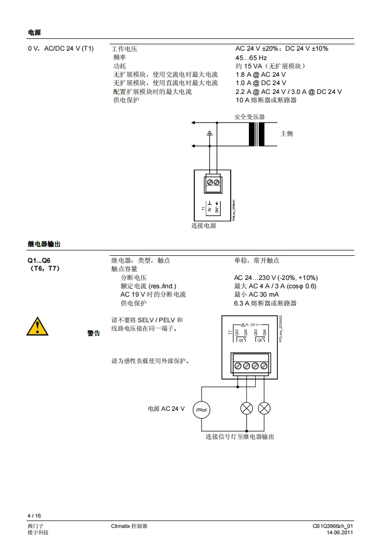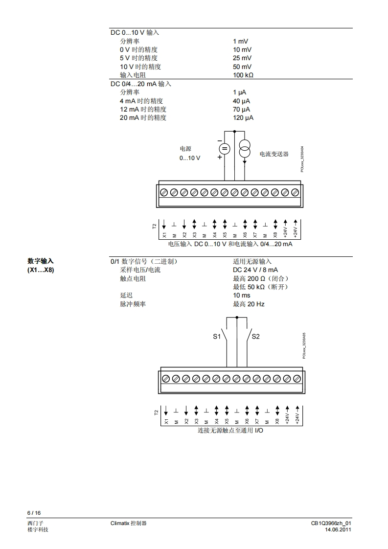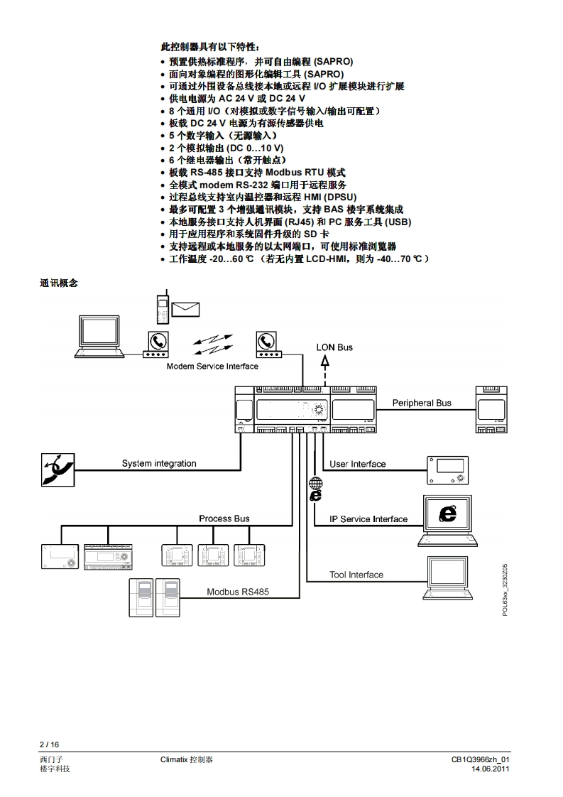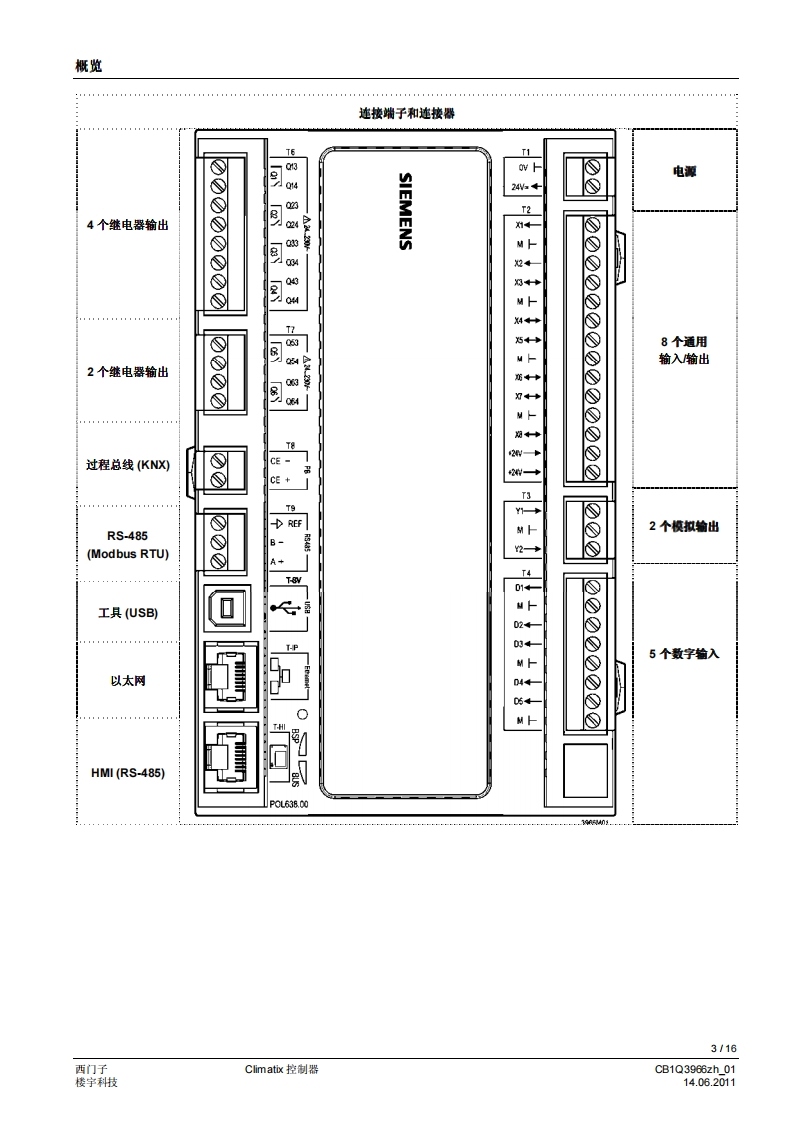 SIEMENS济南工达孔功24小时为您服务!www.cngdkj.com电话:18653198028QQ:1319331276西门子全国最大合作伙伴!SIEMENSClimatixTMClimatix控制器P0L638.00/DH1P0L638.70/DH1基于可编程控制器(PLC)技术,具备测量、控制与监视功能的控制器请参阅技术文档Q3900以及安装指南M3910。POL638.XX/DH1控制器为区域供热而专门设计。该产品属于Climatix产品系列。控制器类型:11POL638.70/DH1P0L638.00/DH1内置HM的基本类型配置TCP/IP接口基本类型配置TCPAP接口CB1Q3966zh_0114.06.2011楼宇科技
