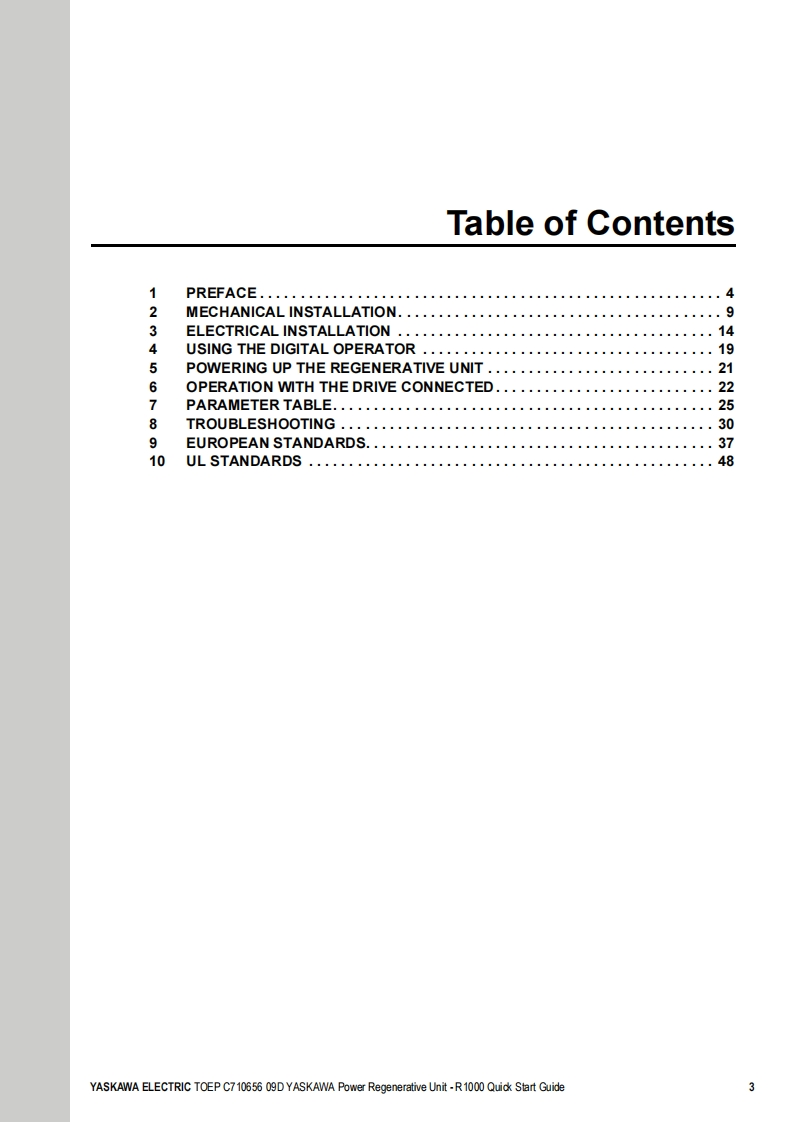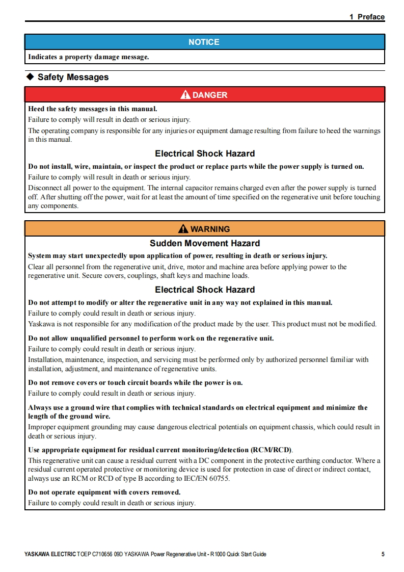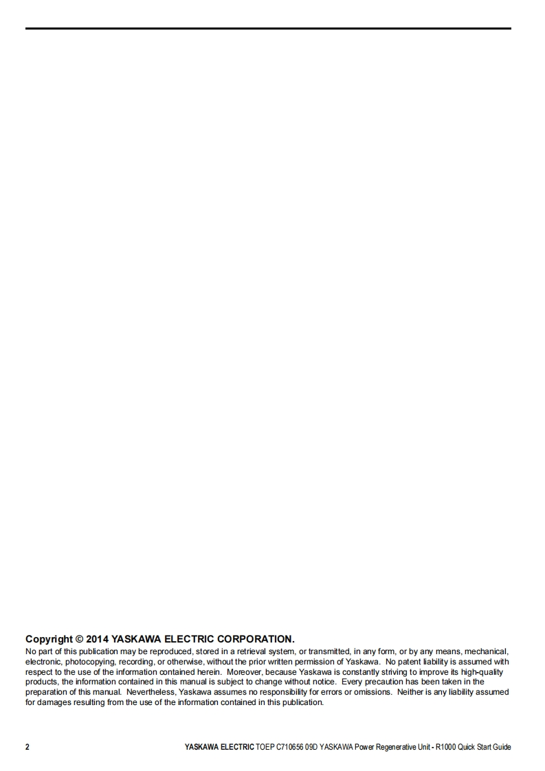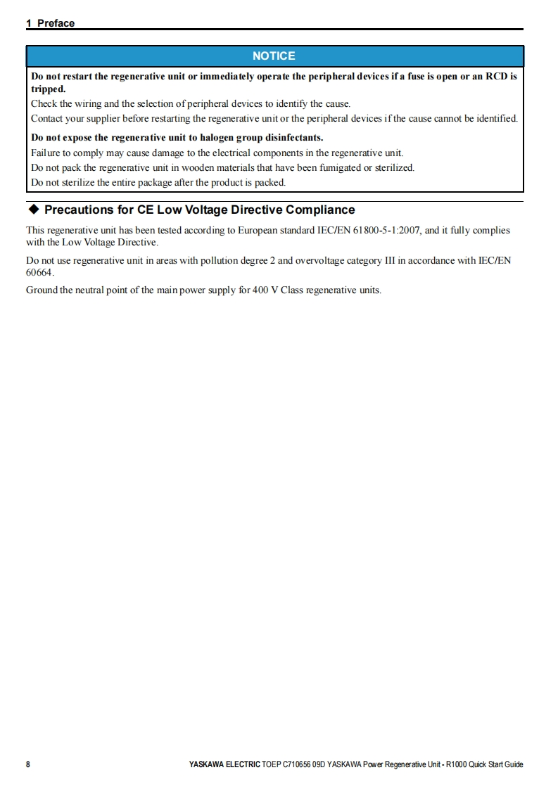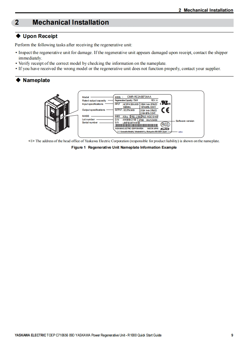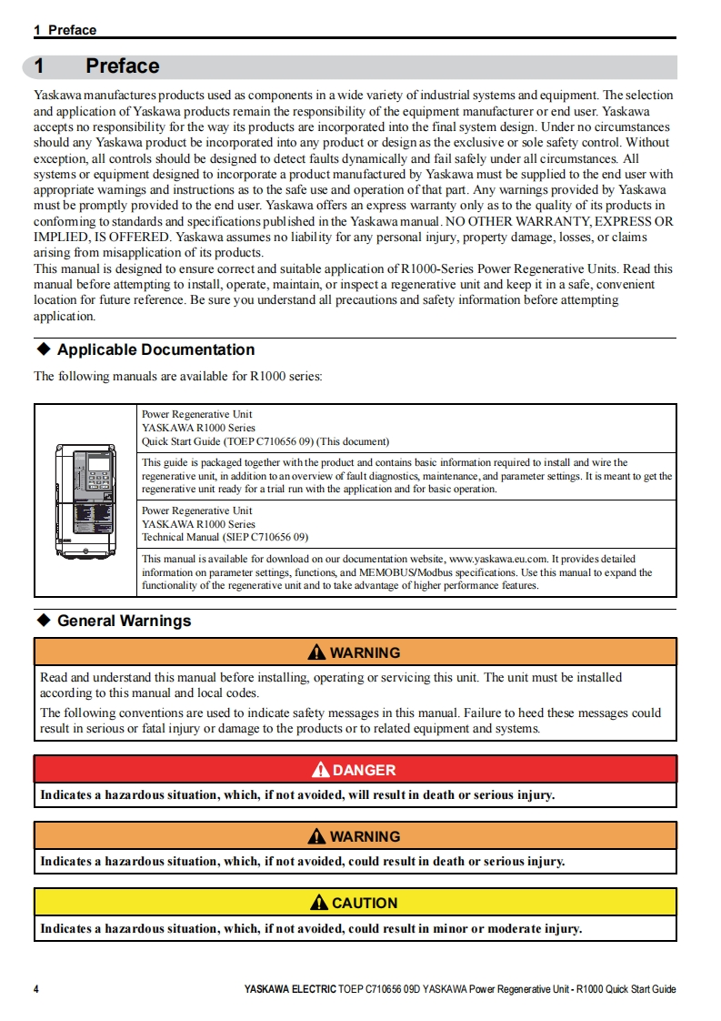 YASKAWAPower Regenerative UnitYASKAWA R1000 SeriesQuick Start GuideType:CIMR-RC☐Models:200 V Class,Three-Phase Input:3.5 to 105 kW400 V Class,Three-Phase Input:3.5 to 300 kWTo properly use the product,read this manual thoroughly and retainfor easy reference,inspection,and maintenance.Ensure the end userreceives this manual.0MANUAL NO.TOEP C710656 09D