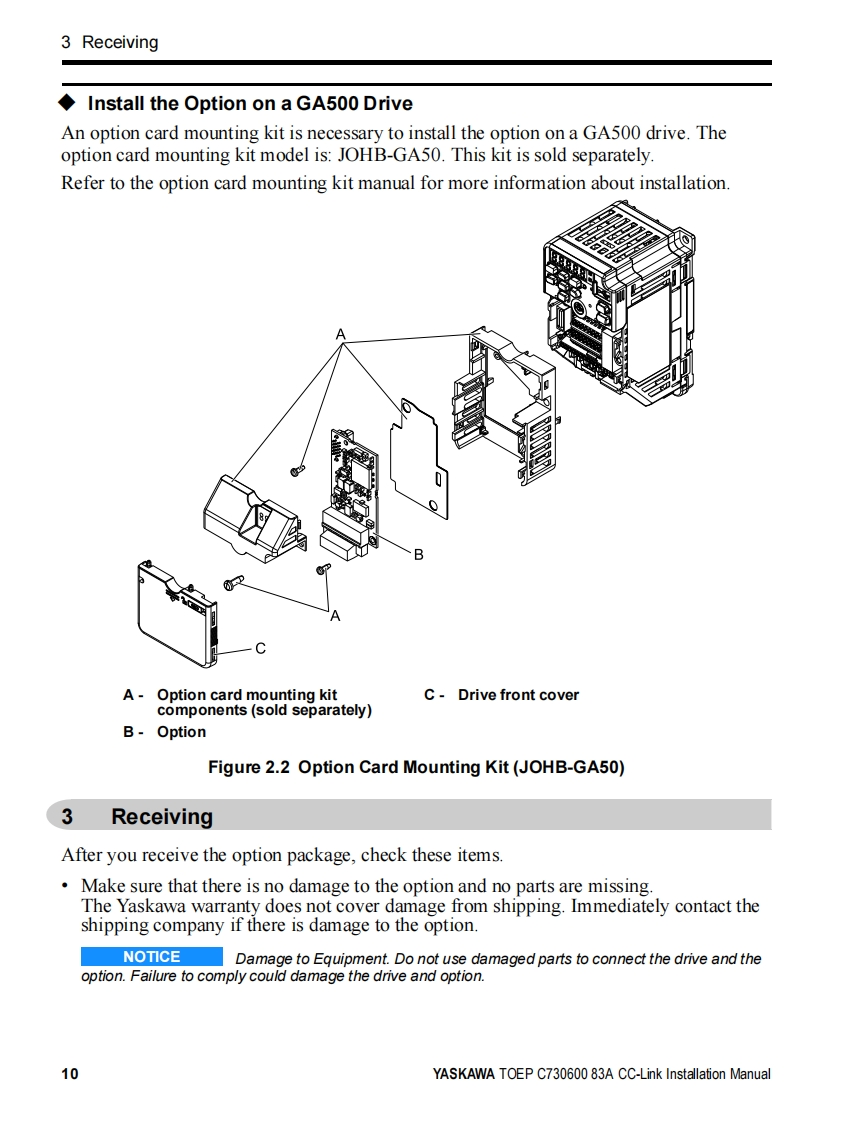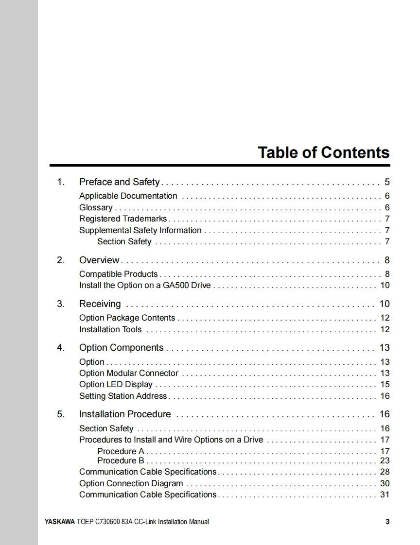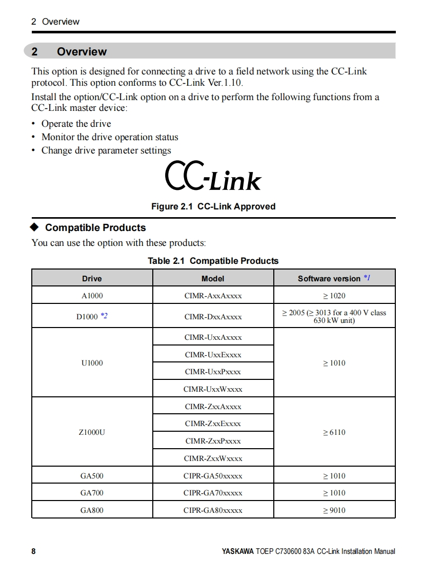 YASKAWAYASKAWA AC Drive OptionCC-LinkInstallation ManualModel:SI-C3To properly use the product,read this manual thoroughly and retainfor easy reference,inspection,and maintenance.Ensure the end userreceives this manual.安川バ一夕才)CC-Link通信取圾說明書形式Sl-C3製品卷安全书使儿龙<协忙,本書卷必李蔬动<龙达(。未无.本害左扩手元保管乙龙<上七七亿.最終的C本製品左C使用IC:石1一圹一樣)手元c確実I届寸5九石太.书取b計5L顺未寸。程9MANUAL NO.TOBP C730600 83E