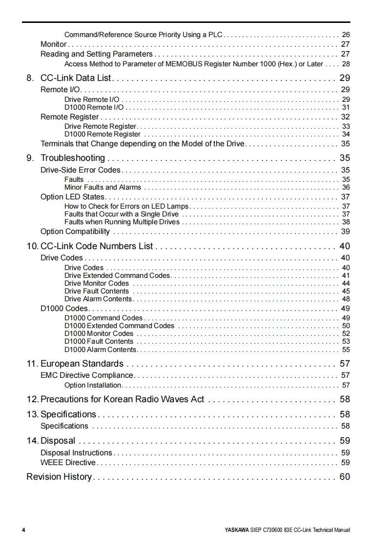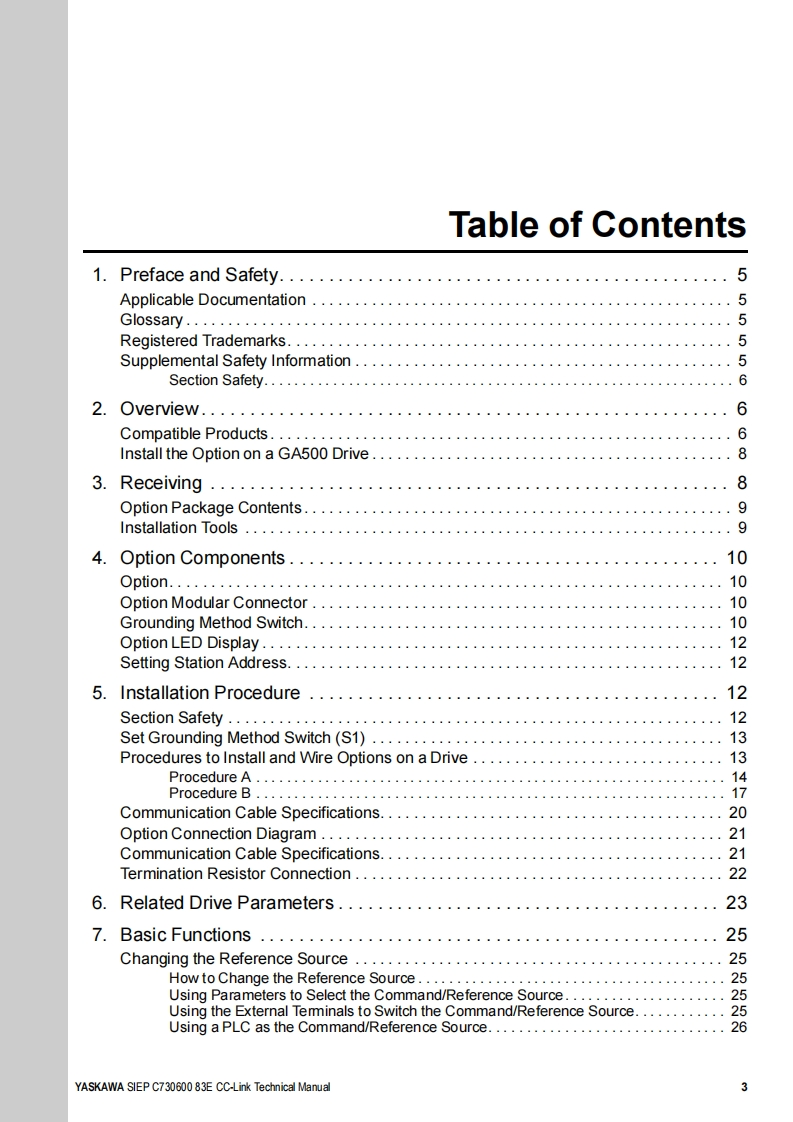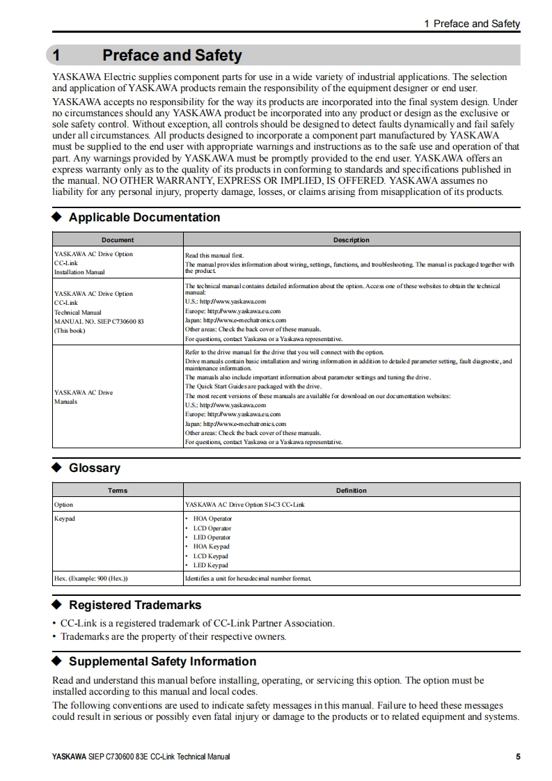 YASKAWAYASKAWA AC Drive OptionCC-LinkTechnical ManualModel SI-C3To properly use the product,read this manual thoroughly and retain for easyreference,inspection,and maintenance.Please keep this manual in your possession and ensure that it is delivered tothe end user.馨程。9段MANUAL NO.SIEP C730600 83E