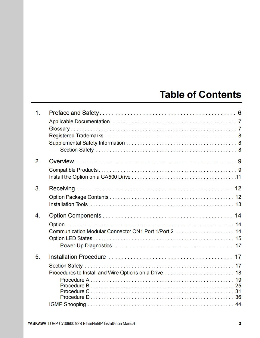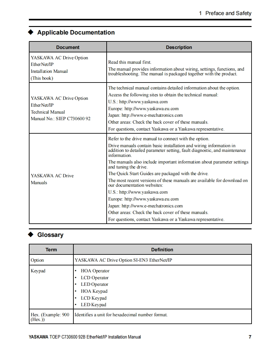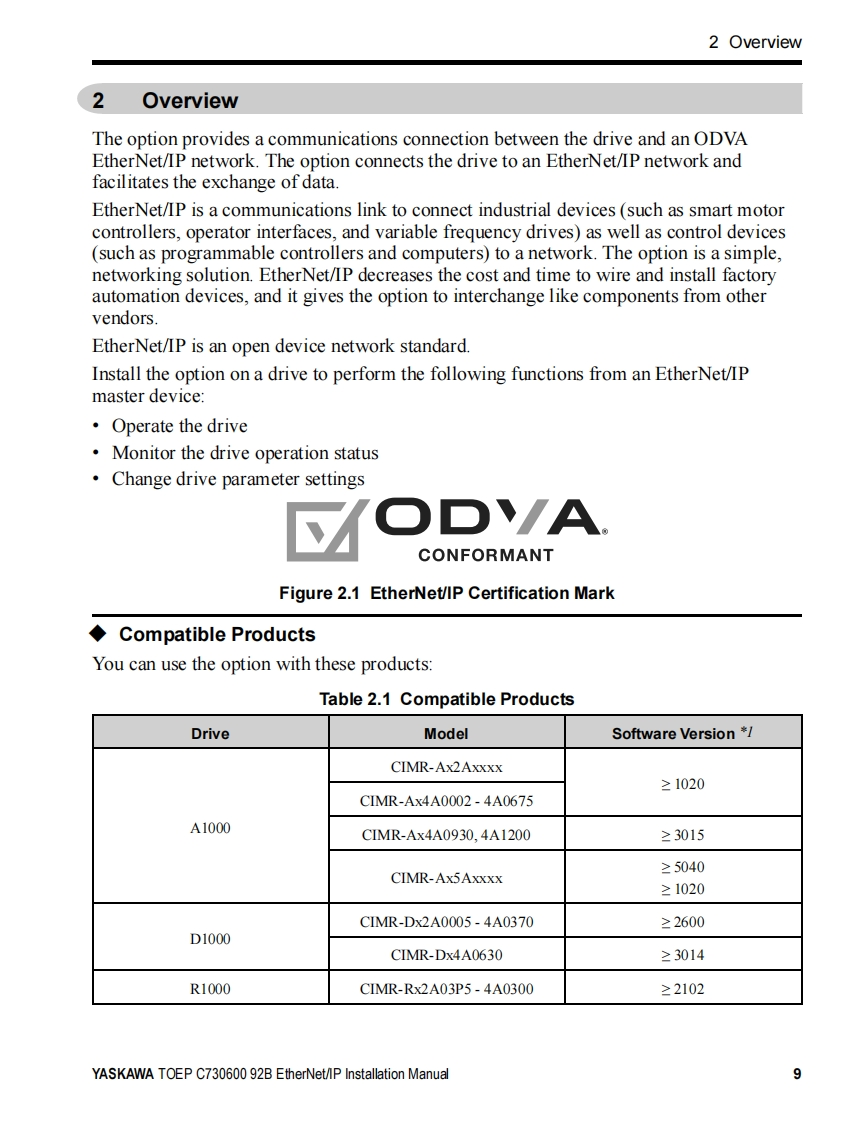 YASKAWAYASKAWA AC Drive OptionEtherNet/IPInstallation ManualModel SI-EN3To correctly use the product,read this manual thoroughly and keep itfor easy reference,inspection,and maintenance.Make sure that theend user receives this manual.安川バ一夕才プ)3EtherNet/IP通信取圾説明書形式SI-EN3製品左安全书使儿龙<边亿.本書在必李蔬动<龙达。未大.本書卷手元忙保管U乙龙<上上七,最終的忙本製品卷飞使用I忙在石ユ一步一樣)手元確美I亿届寸5九太5.书取b計5L1顺ま寸。n6⊙88。8888886600o田6gg加00032MANUAL NO.TOBP C730600 92F