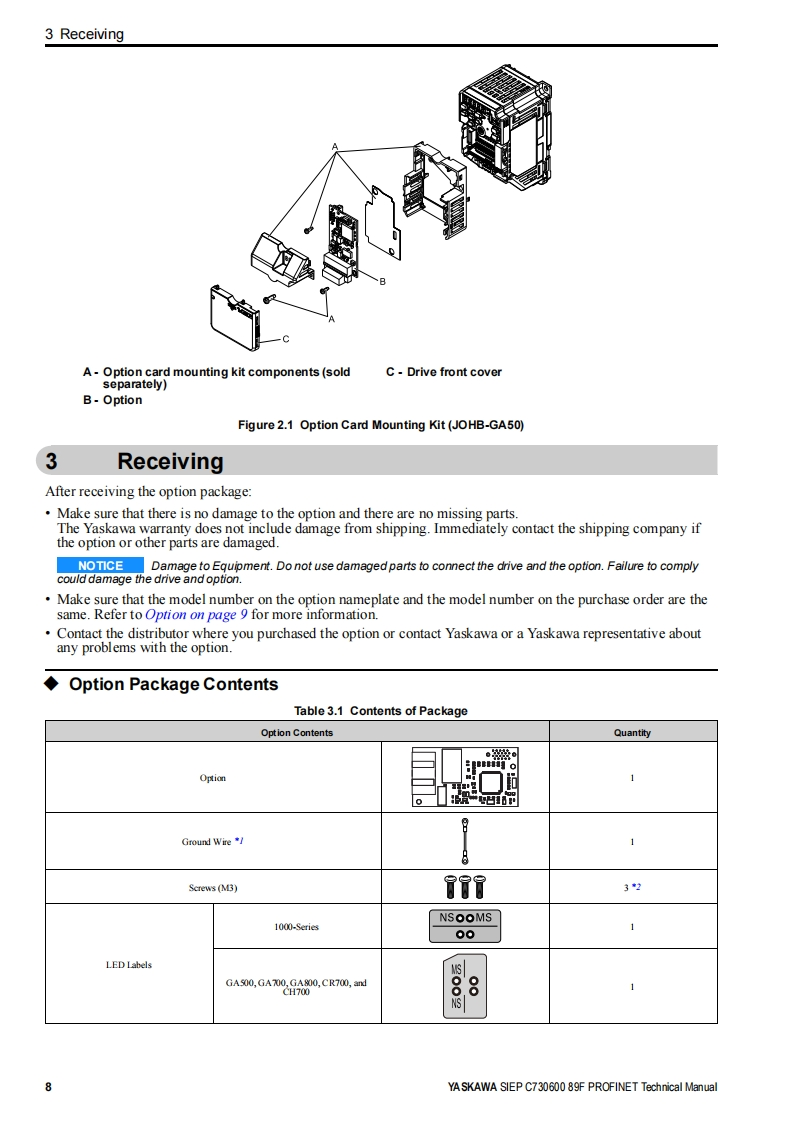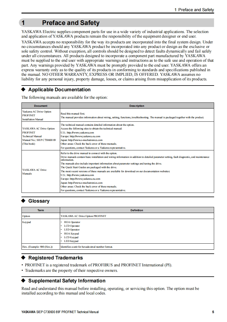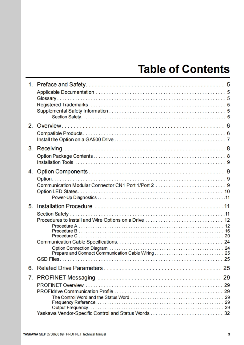 YASKAWAYASKAWA AC Drive OptionPROFINETTechnical ManualModel SI-EP3To comrectly use the product,read this manual thoroughly and keep it for easyreference,inspection,and maintenance.Make sure that the end user receivesthis manual.88号品品号0①6g8誉器MANUAL NO.SIEP C730600 89F