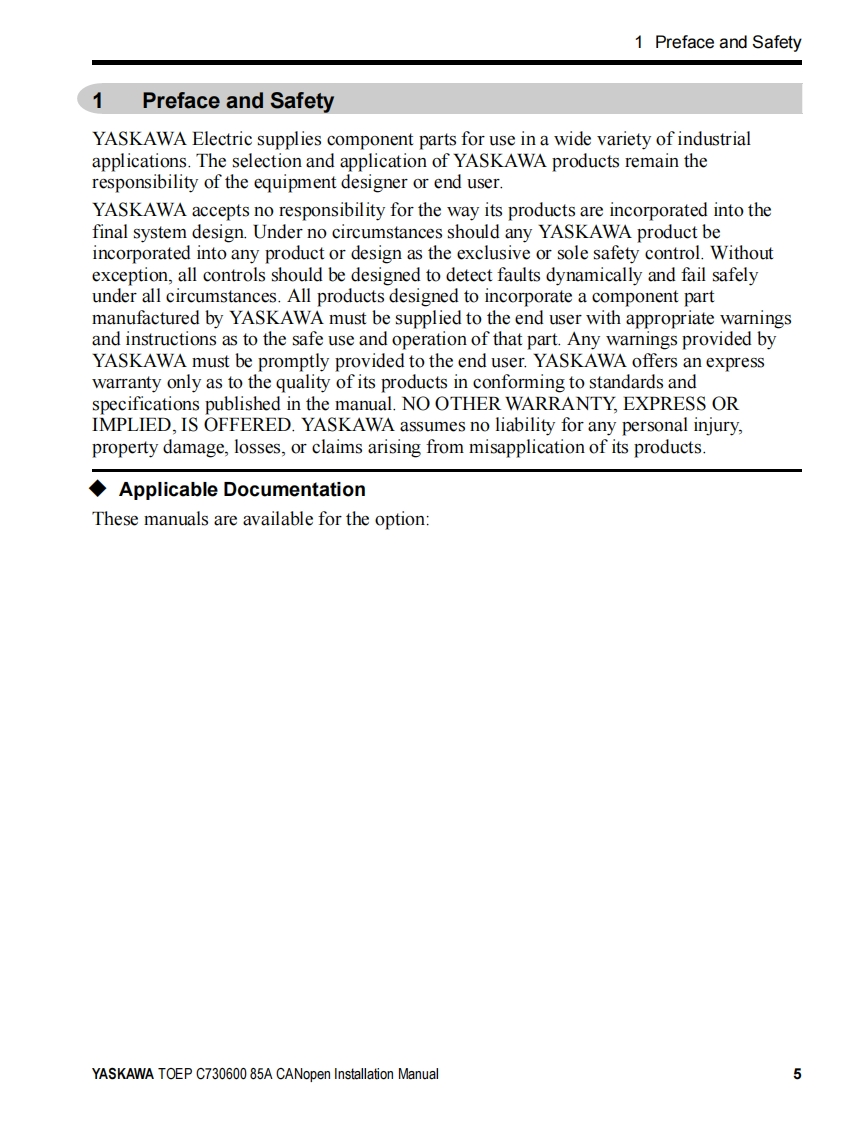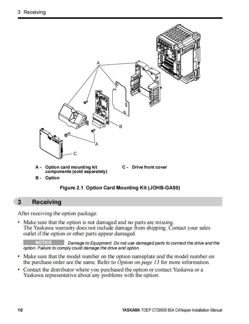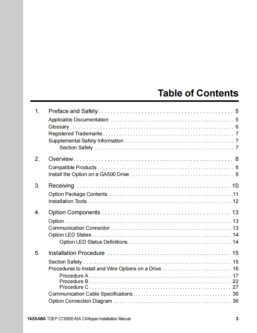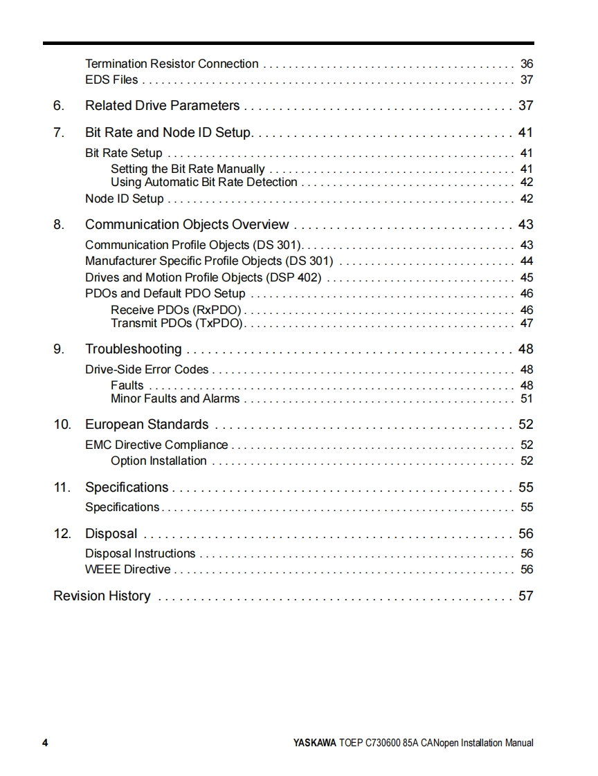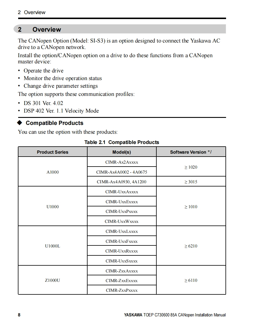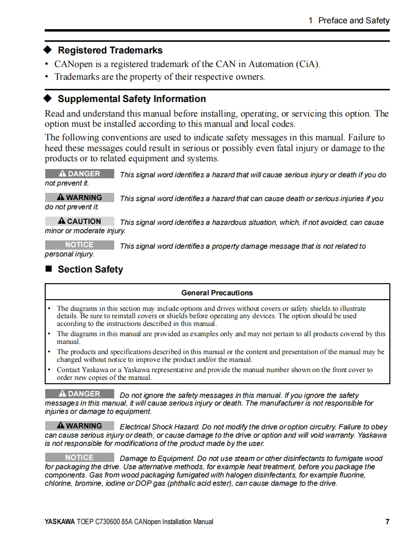 YASKAWAYASKAWA AC Drive OptionCANopenInstallation ManualModel SI-S3To properly use the product,read this manual thoroughly and retainfor easy reference,inspection,and maintenance.Ensure the end userreceives this manual.安川不)心一夕才)3CANopen通信取圾說明書形式SS3製品在安全书使儿龙<上协亿,乙)取极脱明書在必李书蔬动<忙达。未尤.本書卷手元优保管乙龙<上上七亿.最終的亿本製品在乙使用引:石ユ一5一樣)手元確実届时5九太5.书取b計5L顺L未寸。MANUAL NO.TOBP C730600 85E