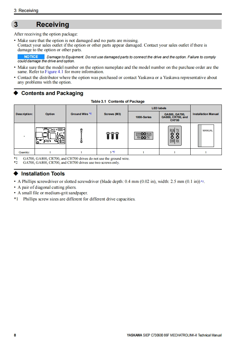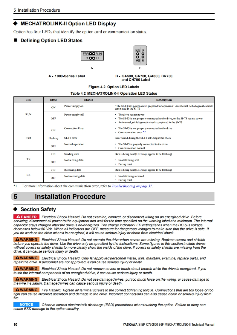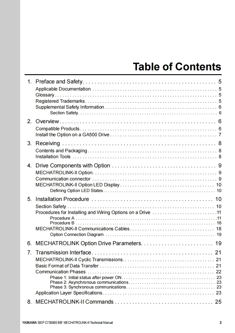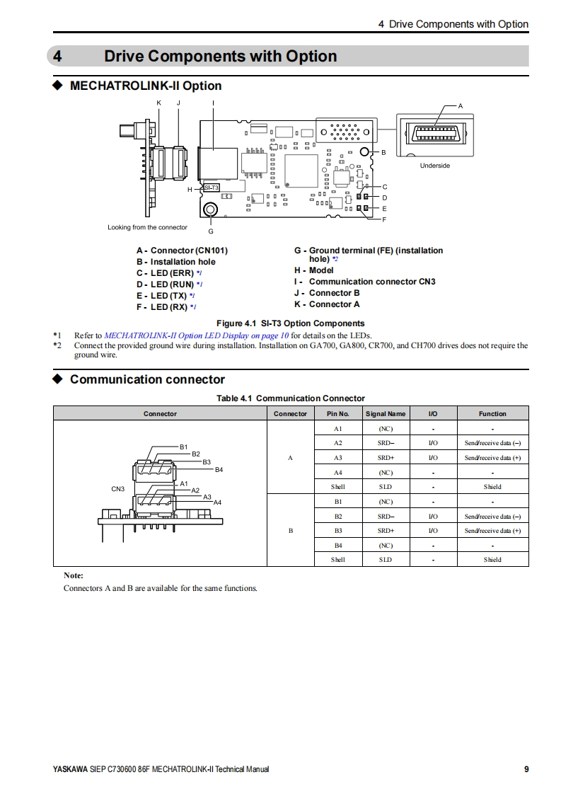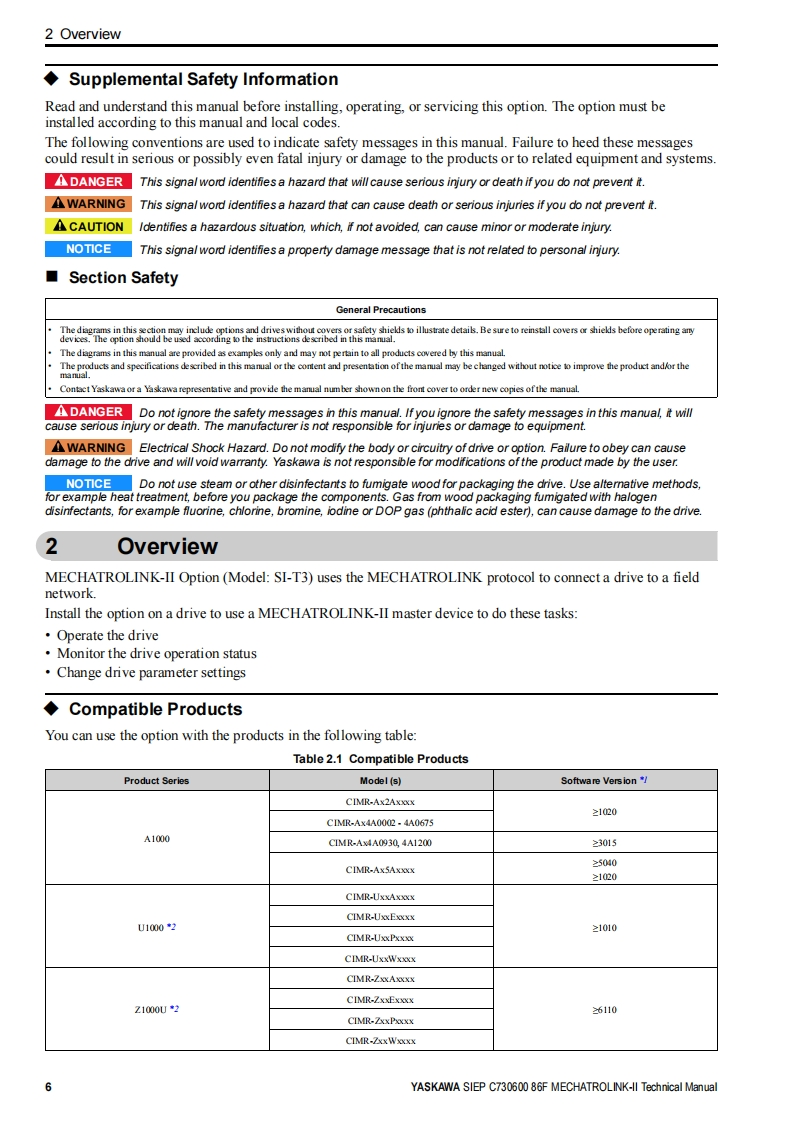 YASKAWAYASKAWA AC Drive OptionMECHATROLINK-IITechnical ManualModel SI-T3To properly use the product,read this manual thoroughly and retain for easyreference,inspection,and maintenance.Ensure the end user receives thismanual.☒多③台0o".○D①000000MANUAL NO.SIEP C730600 86F