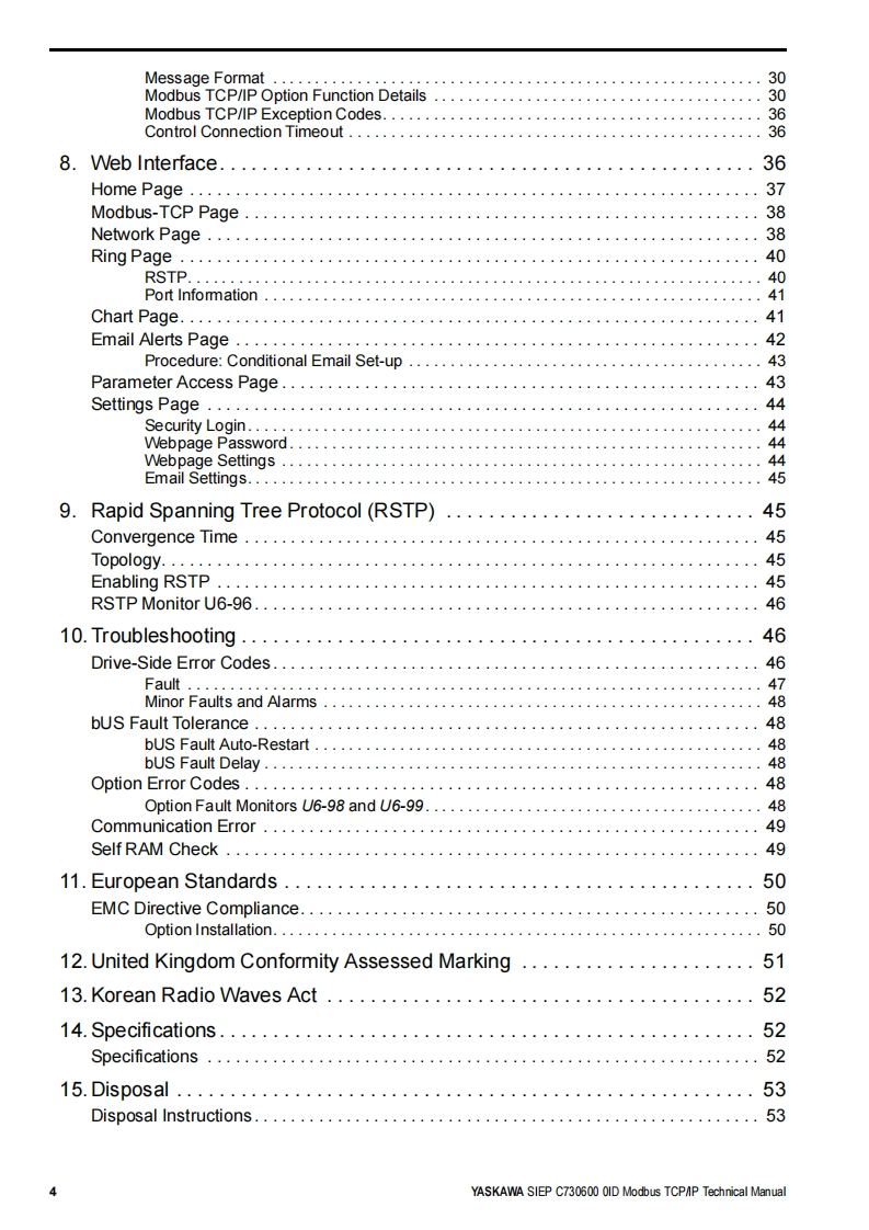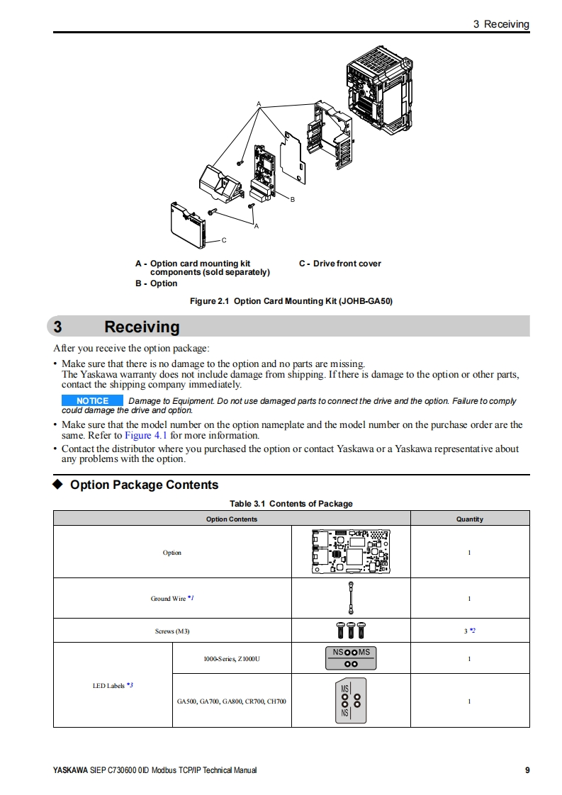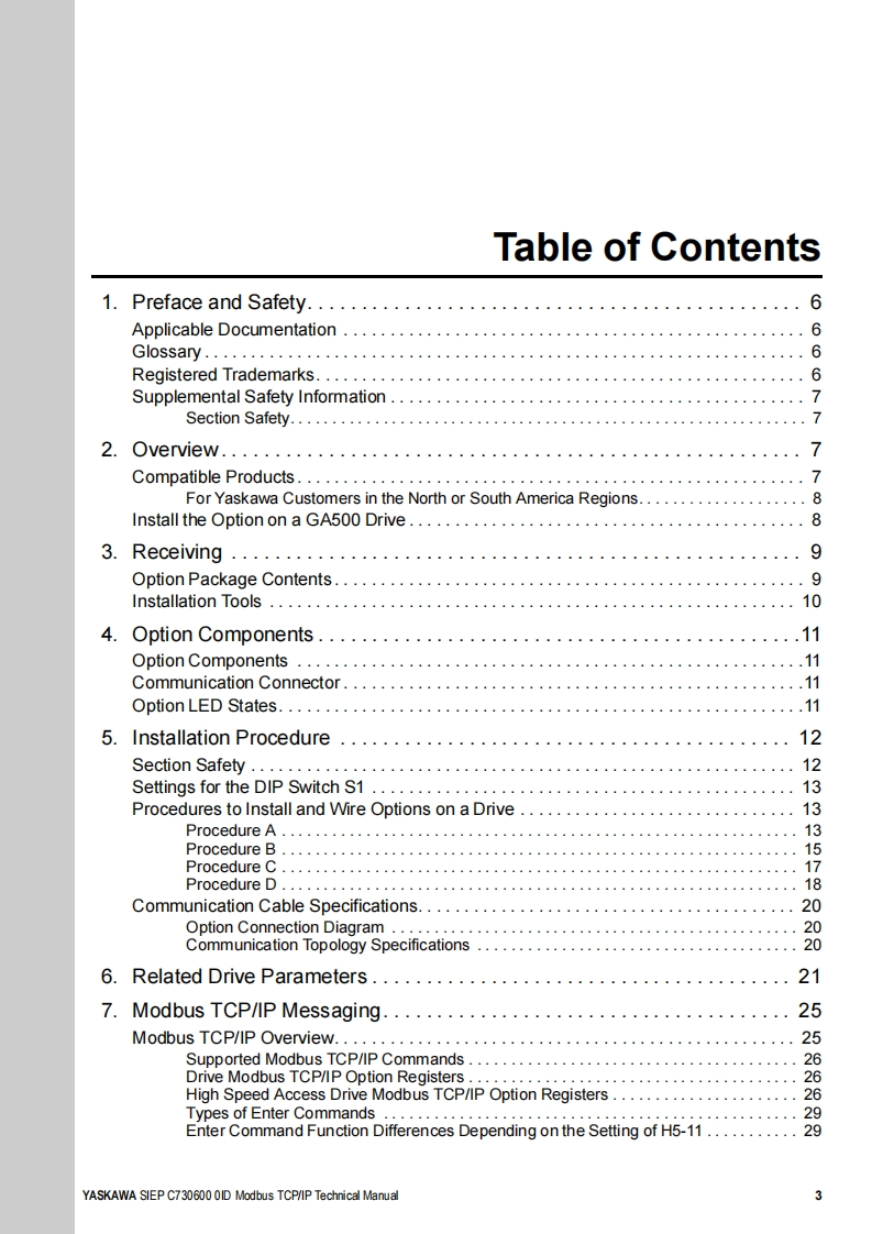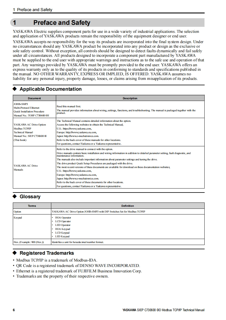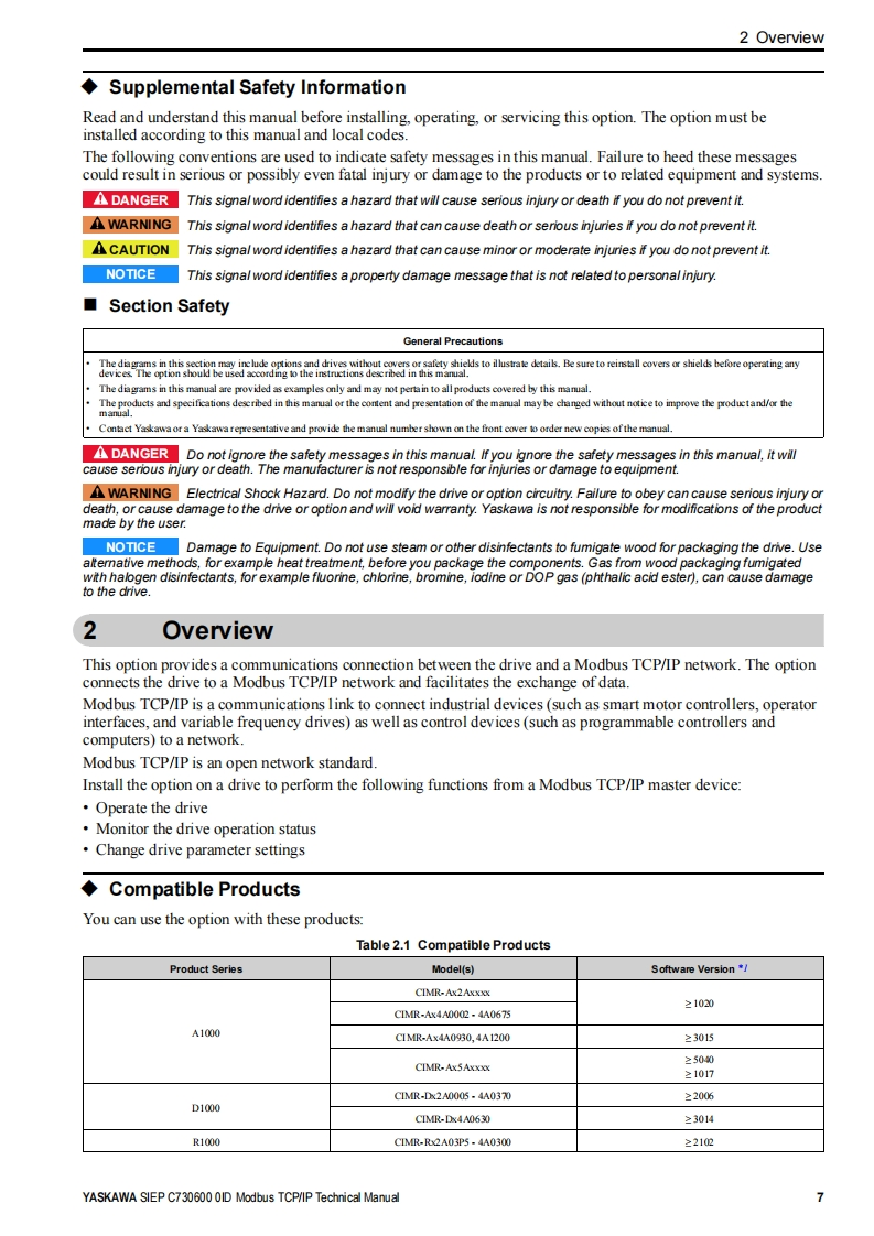 YASKAWAYASKAWA AC Drive OptionModbus TCP/IPTechnical ManualModel JOHB-SMP3To correctly use the product,read this manual thoroughly and keep it for easyreference,inspection,and maintenance.Make sure that the end user receives this manual.MANUAL NO.SIEP C730600 0ID