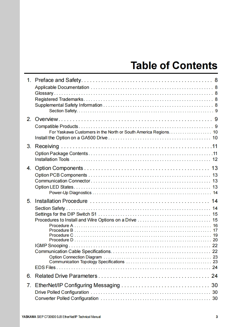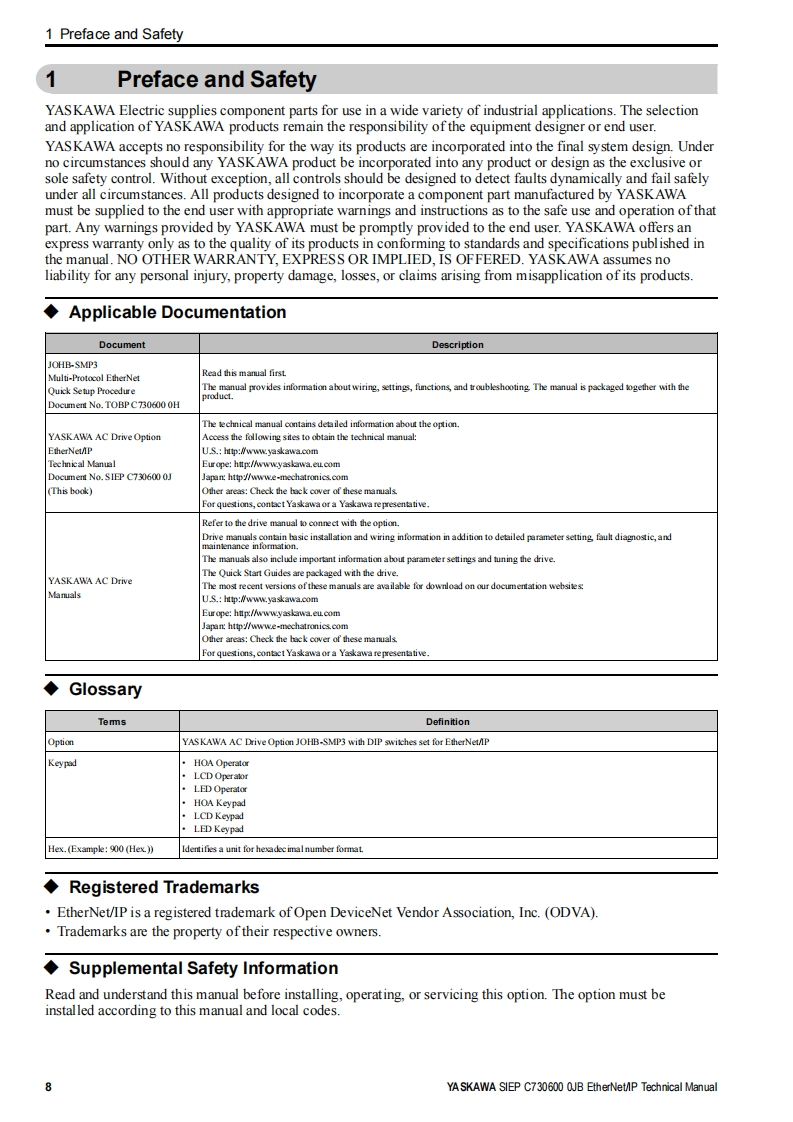 YASKAWAYASKAWA AC Drive OptionEtherNet/IPTechnical ManualModel JOHB-SMP3To correctly use the product,read this manual thoroughly and keep it for easyreference,inspection,and maintenance.Make sure that the end user receives this manual.品0MANUAL NO.SIEP C730600 0JB