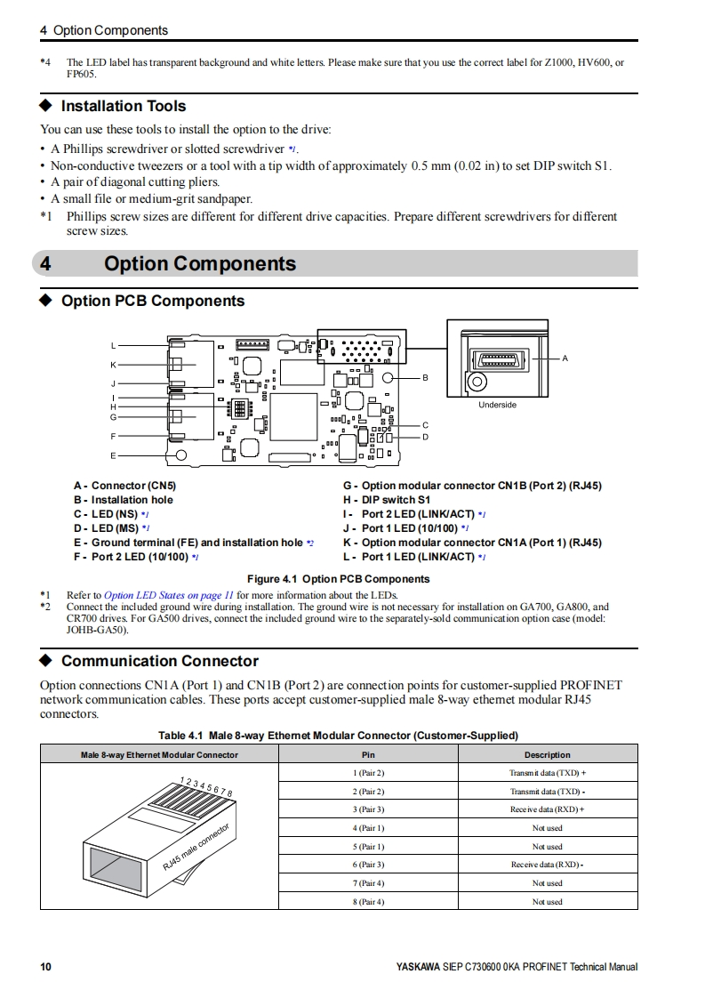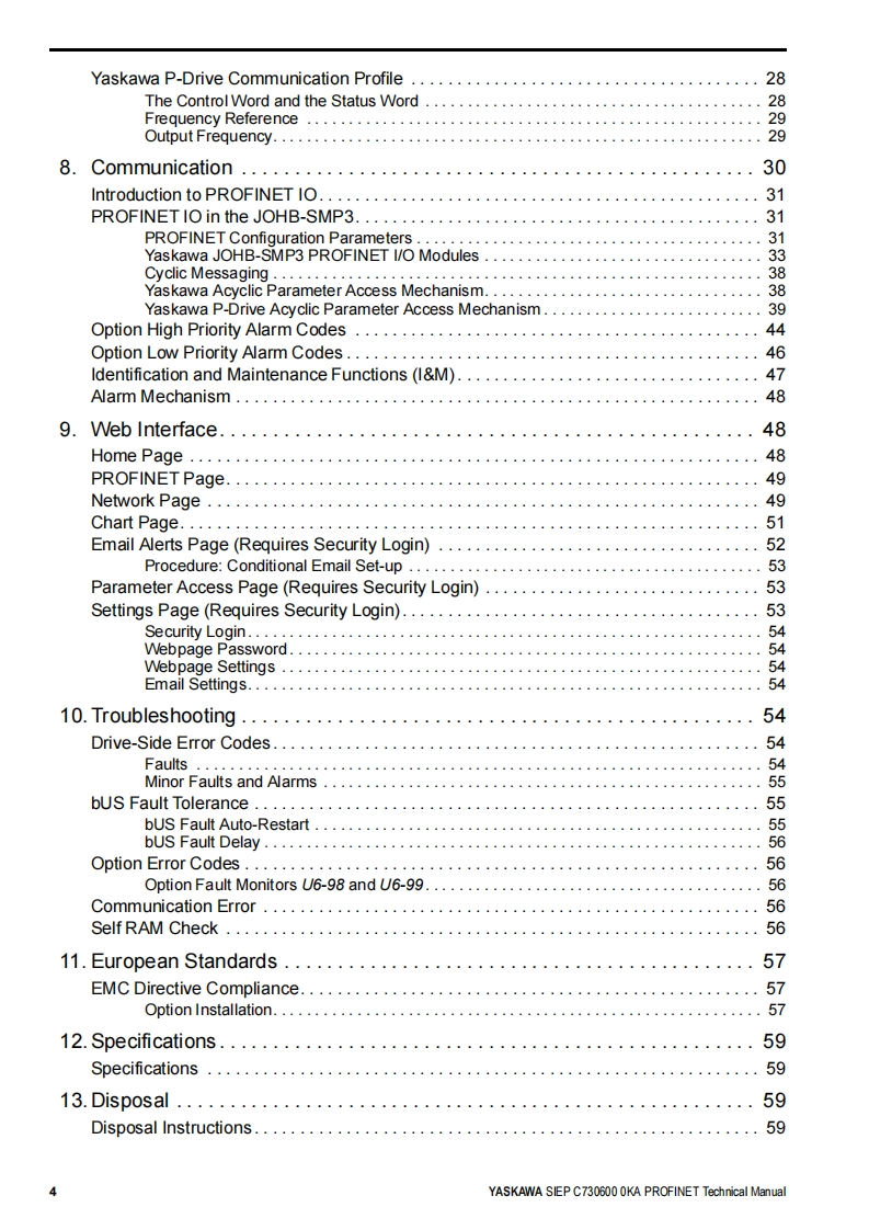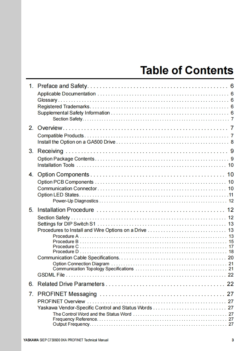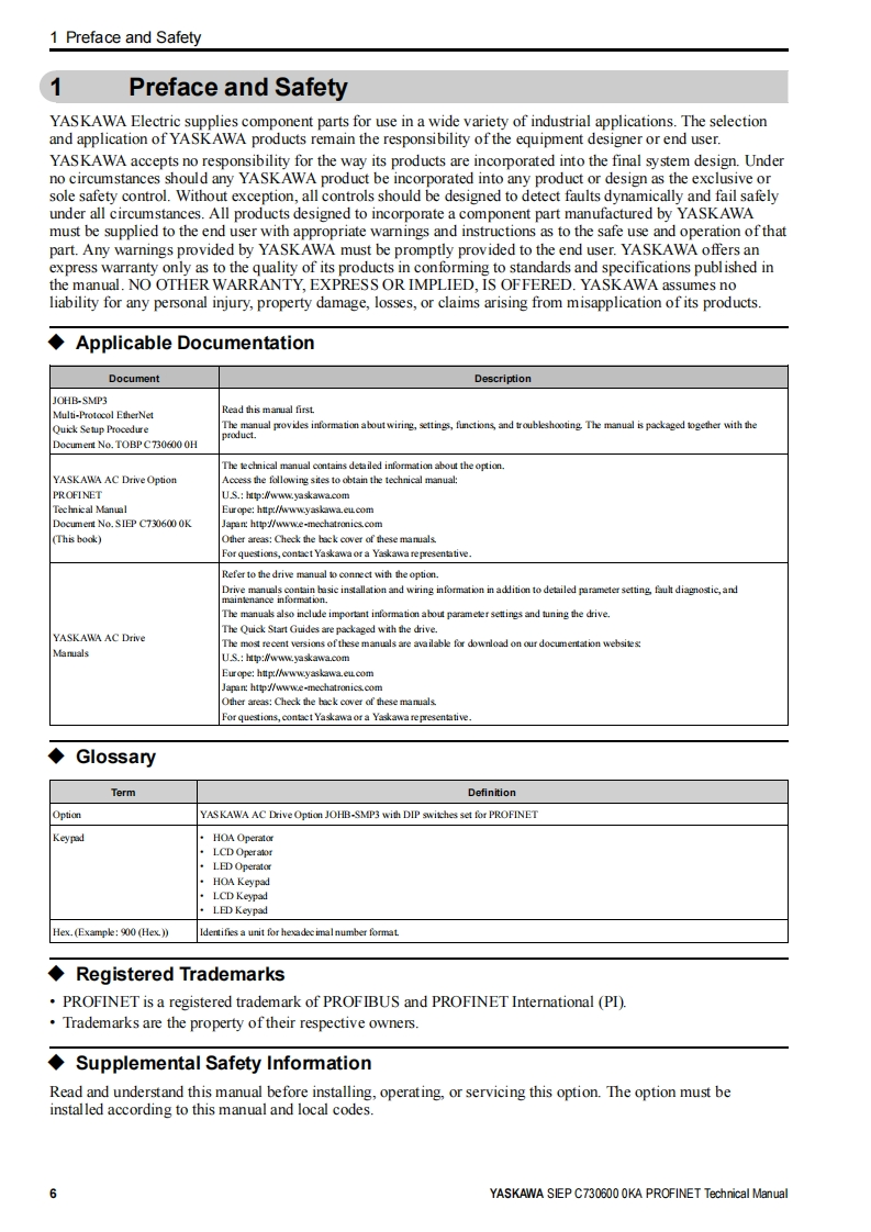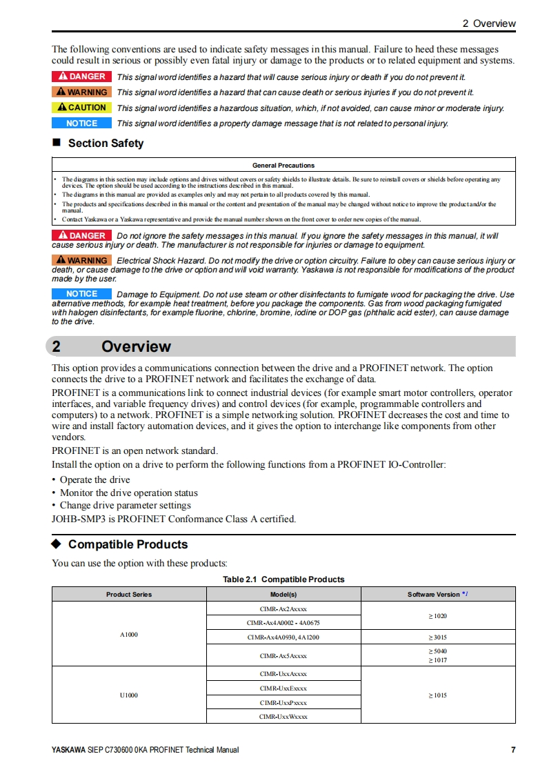 YASKAWAYASKAWA AC Drive OptionPROFINETTechnical ManualModel JOHB-SMP3To correctly use the product,read this manual thoroughly and keep it for easyreference,inspection,and maintenance.Make sure that the end user receives this manual.品0MANUAL NO.SIEP C730600 0KA