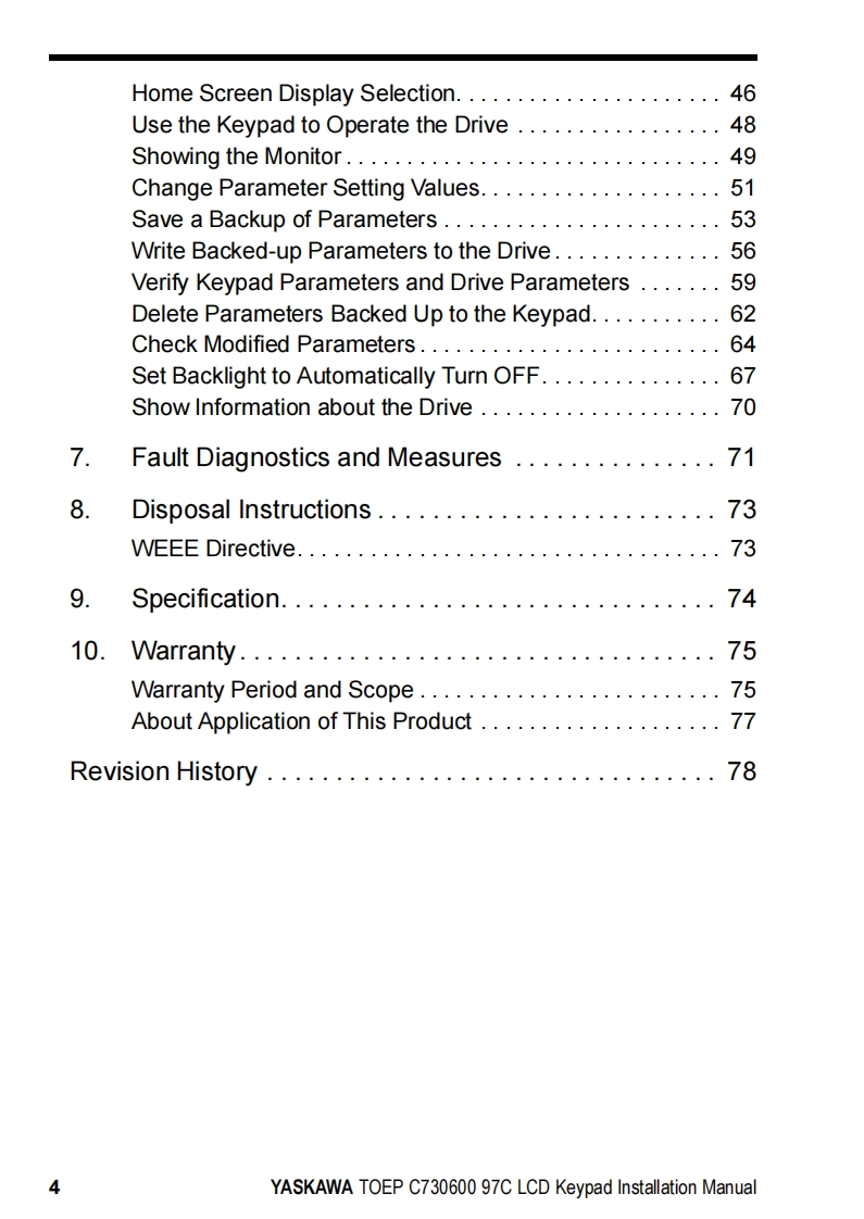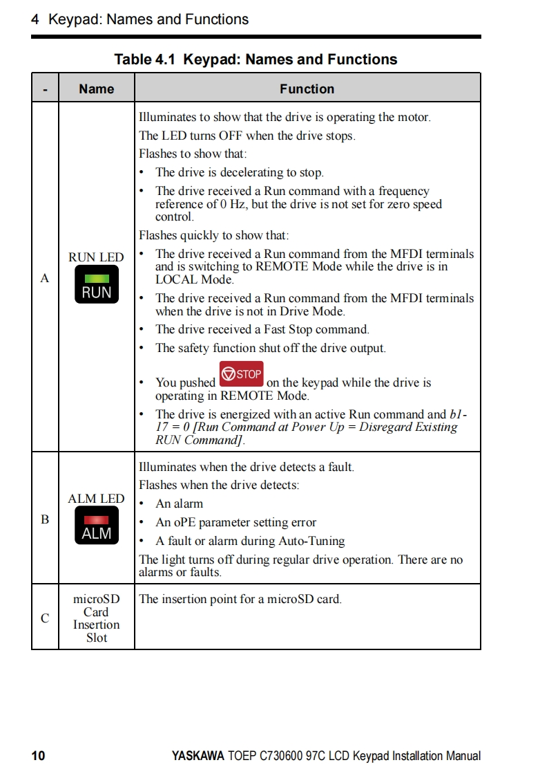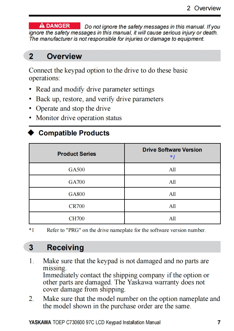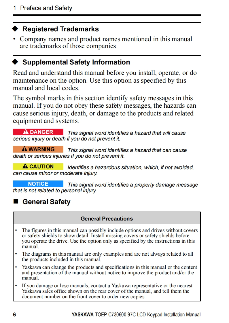 YASKAWAYASKAWA AC Drive OptionLCD KeypadInstallation ManualType:JVOP-KPLCA04Axx,JVOP-KPLCA04Mxx,JVOP-KPLCA04KxxTo properly use the product,read this manual thoroughly and retain for easyreference,inspection,and maintenance.Ensure the end user receives thismanual.鼠品F1F2F3RESETRUNSTOPMANUAL NO.TOEP C730600 97C