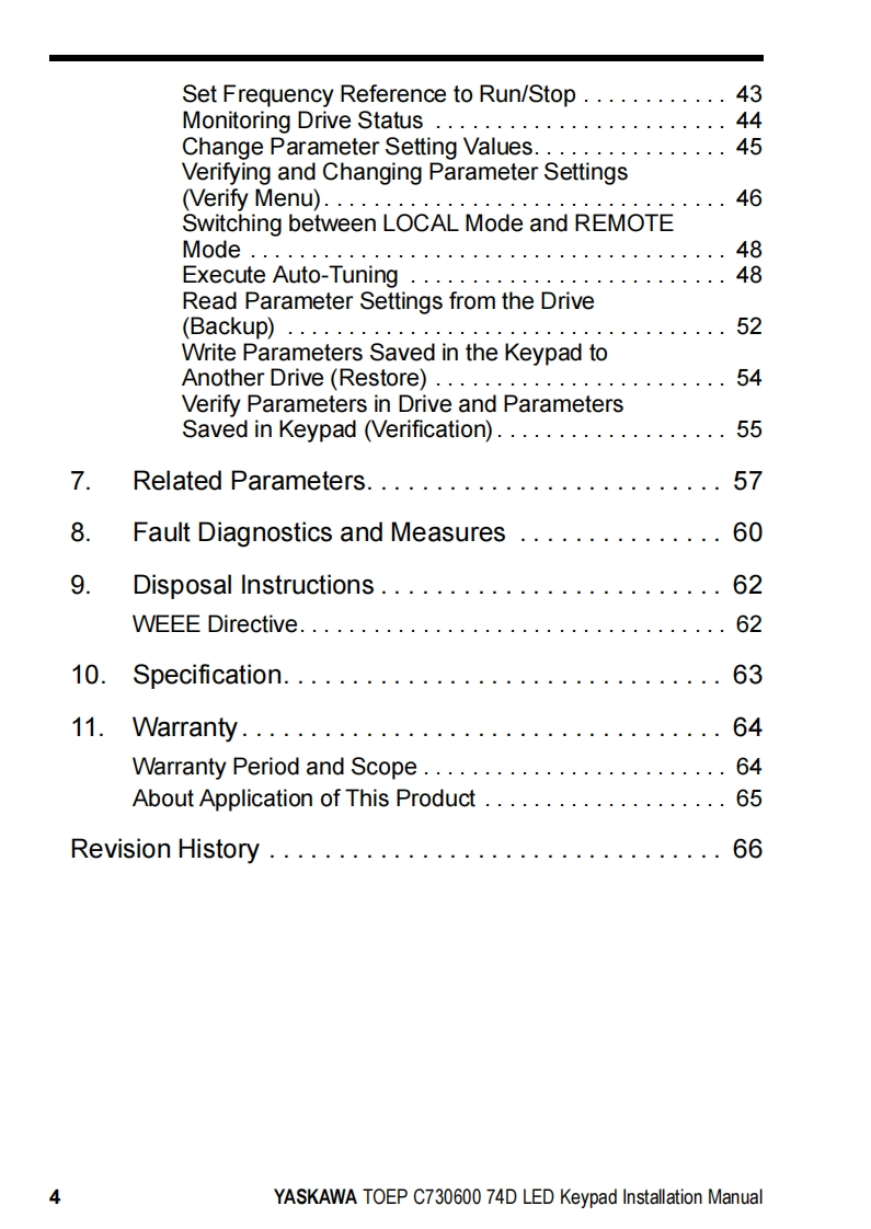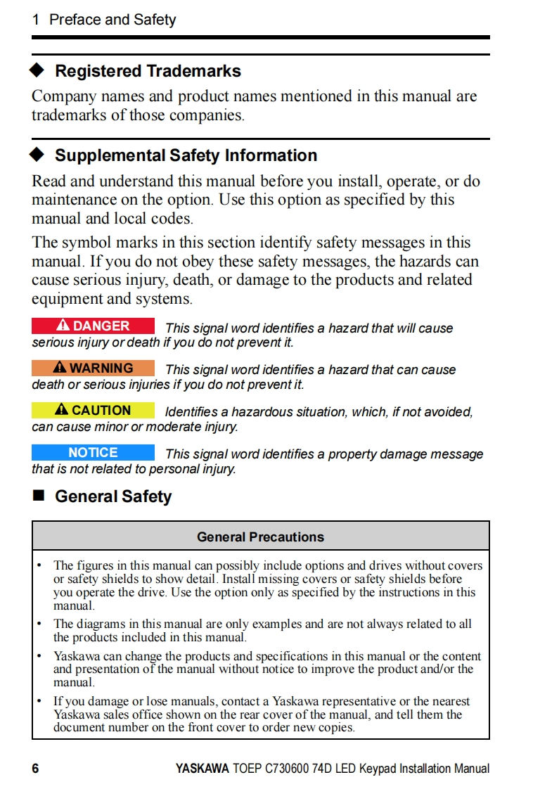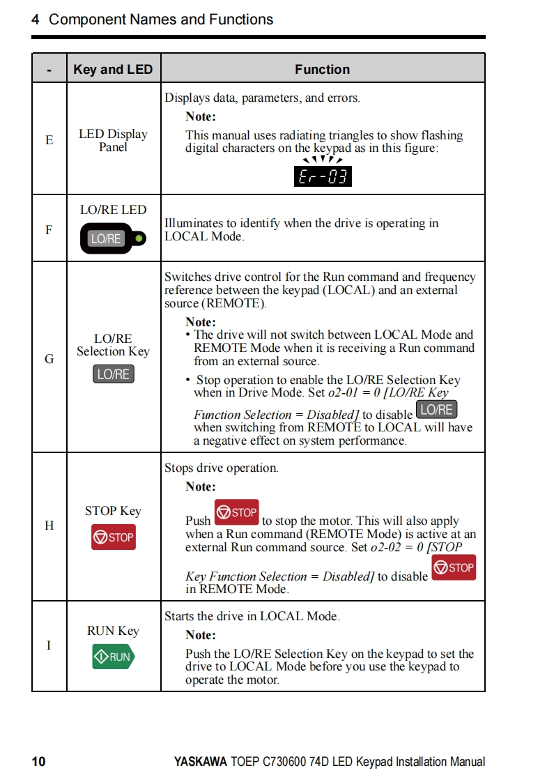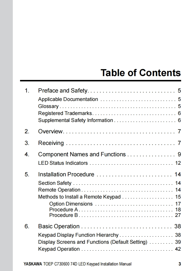 YASKAWAYASKAWA AC Drive OptionLED KeypadInstallation ManualType:JVOP-KPLEA04Axx,JVOP-KPLEA04MxxTo properly use the product,read this manual thoroughly and retain for easyreference,inspection,and maintenance.Ensure the end user receives thismanual.品忌ESCLO/RERESETRUN⑦ST0PMANUAL NO.TOEP C730600 74D