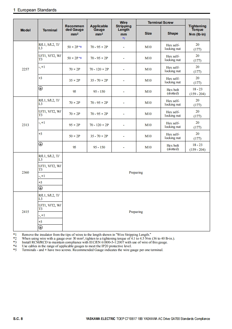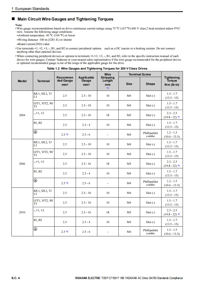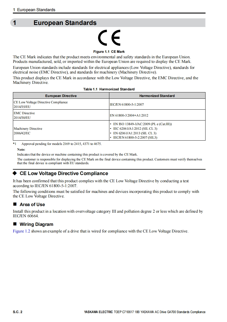 YASKAWAYASKAWA AC Drive GA700High Performance General Applications DriveStandards ComplianceType:CIPR-GA70CxxxxxxxxModels:200 V class:0.55 to 110 kW400 V class:0.55 to 355 kWTo properly use the product,read this manual thoroughly and retain for easyreference,inspection,and maintenance.Ensure the end user receives thismanual.MANUAL NO.TOEP C710617 18BStandards ComplianceS.C.