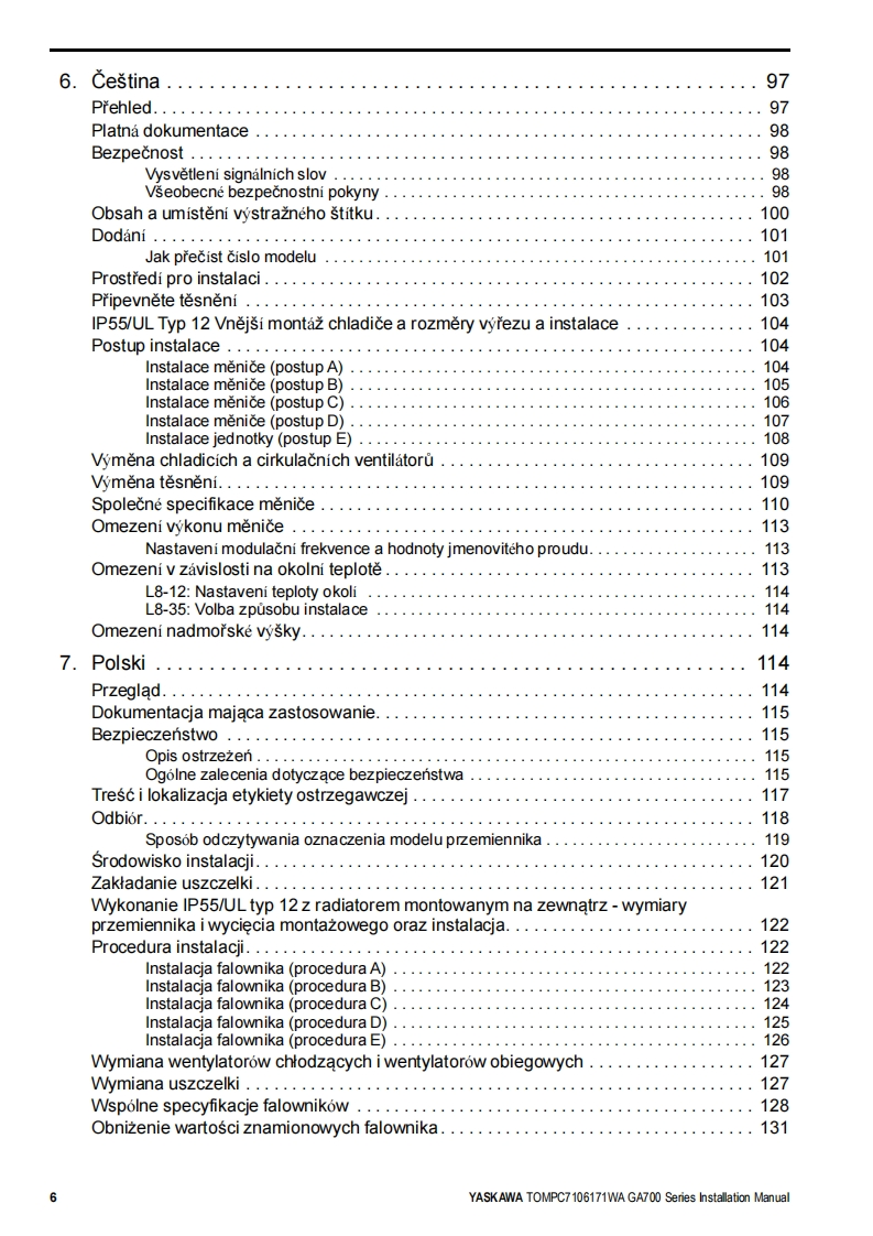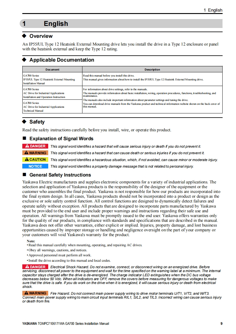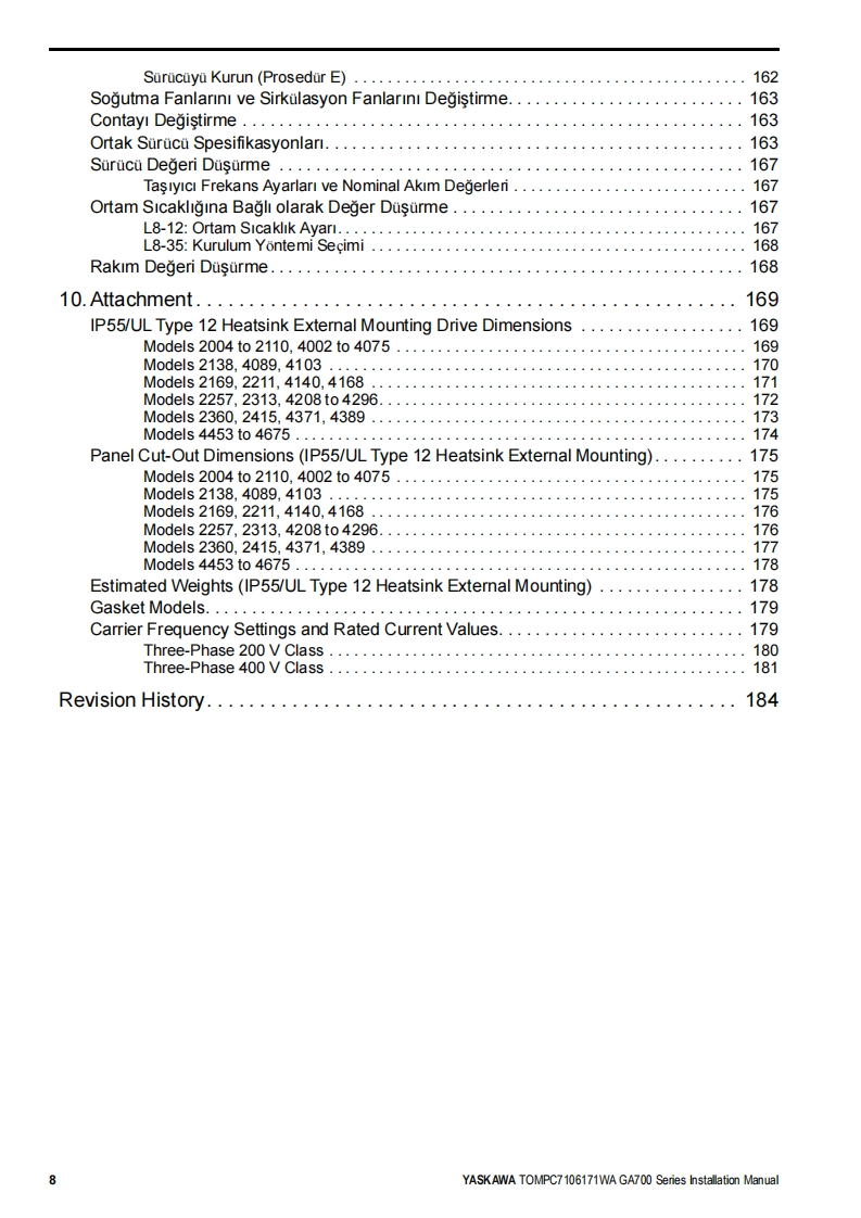 YASKAWA-安川TOMP-C710617-1W—GA700-IP55-UL-Type-12安装调试说明书手册找手册网29天前发布关注私信40.47MB186页034YASKAWA-安川TOMP-C710617-1W—GA700-IP55-UL-Type-12安装调试说明书手册此内容为付费资源,请付费后查看¥19¥21黄金会员免费钻石会员免费登录购买付费资源 第1页 / 共186页 第2页 / 共186页 第3页 / 共186页 第4页 / 共186页 第5页 / 共186页 第6页 / 共186页 第7页 / 共186页 第8页 / 共186页 第9页 / 共186页 第10页 / 共186页 试读已结束,还剩176页,您可下载完整版后进行离线阅读 THE END安川电机 文本预览 YASKAWAGA700 SeriesIP55/UL Type 12 Heatsink External MountingInstallation ManualModel:CIPR-GA70CxxxxxWxxType:200 V class:0.55 to 110 kW400 V class:0.55 to 355 kWHTML到YASKAWA 查看更多 收起部分 喜欢就支持一下吧收藏
