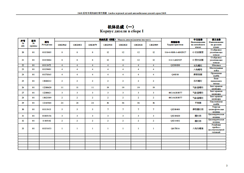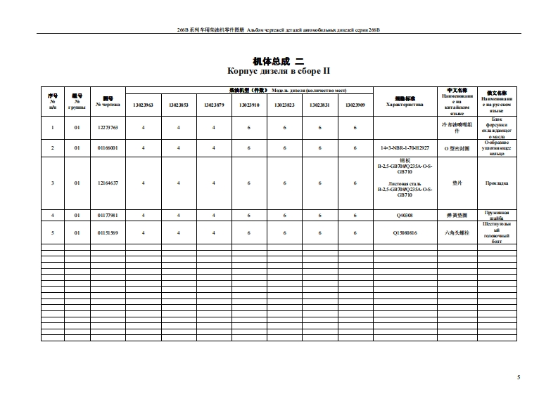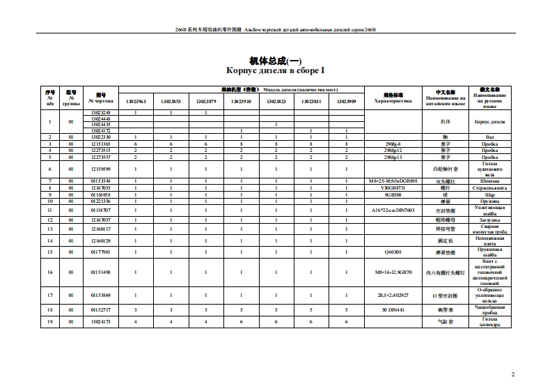 2伍B系列车用柴挂机零件图导ABGou epree4a4aa心0G感AC4Gu26伍B柴油机型号说明OnHcaHHe Moaen aenaTB D226B-6Ⅱ功率代号A,B.C.YcnomHbe ofomma4 MOLH0 Cm A BC..欧IⅡ排放BLEXIOn EBpoⅡ缸数:6马HCO IOIHHJIP0B:6湿式缸套:B Mokpaa rtb3a亚paD柴油机系列序号ΠpIKOBb HOMeP HOKOJCH3eIei水冷:2B0,Hc OXIa床Iec:2进气方式代号:自然吸气:D,ycoBHoe o6o3HaycHHe peHMa Brrycka:EcrecTBCHHblii BITYcK:D增压:TDHanIyB:TD增压中冷:TBDHauryB H npowekyromoe oxkeHHe:TBD1