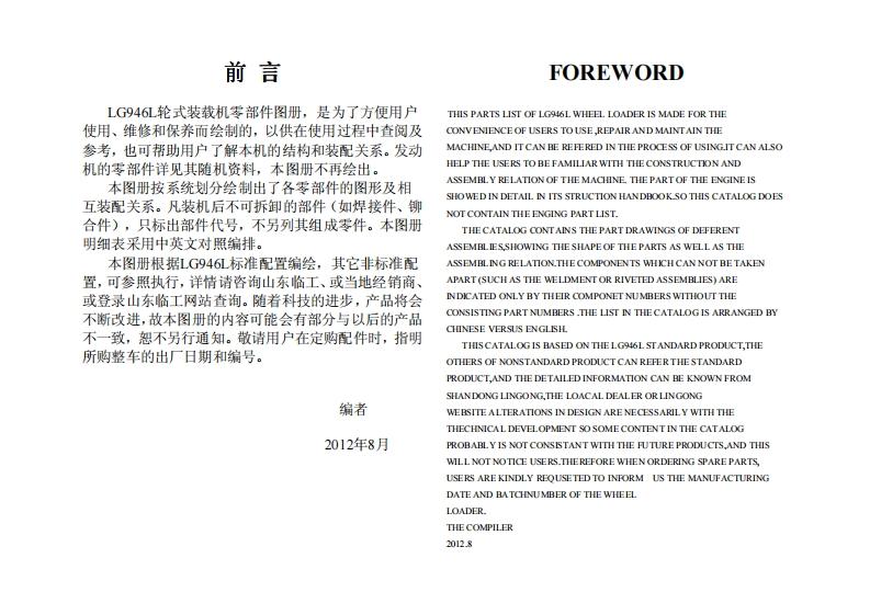 SDLG-LG946_零部件目录手册找手册网5小时前发布关注私信10.64MB227页043SDLG-LG946_零部件目录手册此内容为付费资源,请付费后查看¥29¥31黄金会员免费钻石会员免费立即购买您当前未登录!建议登陆后购买,可保存购买订单付费资源 第1页 / 共227页 第2页 / 共227页 第3页 / 共227页 第4页 / 共227页 第5页 / 共227页 第6页 / 共227页 第7页 / 共227页 第8页 / 共227页 第9页 / 共227页 第10页 / 共227页 试读已结束,还剩217页,您可下载完整版后进行离线阅读 THE END柳工/临工 文本预览 LG946L轮式装载机零部件图册LG246L WHEEL LOADER PARTS CATALOG山东临工工程机械有限公司SHANDONG LINGONG CONSTRUCTION MACHINERY CO.,LTD. 查看更多 收起部分 喜欢就支持一下吧收藏