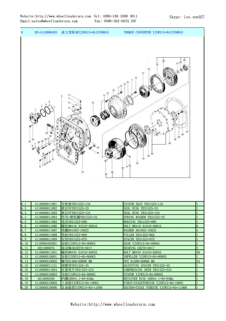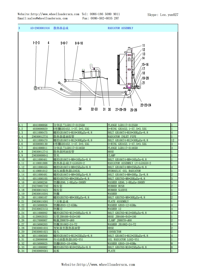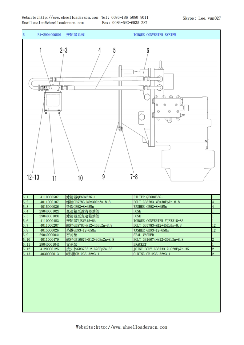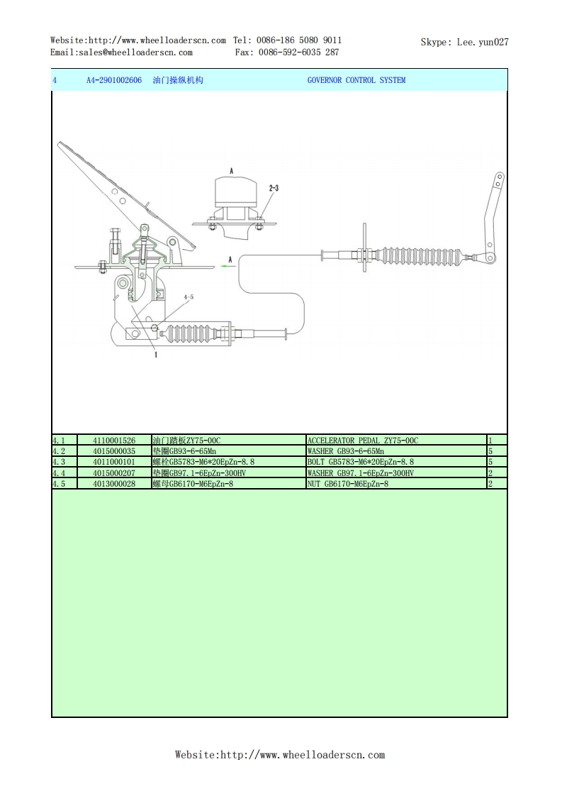 Website:http://www.wheelloaderscn.com Tel:0086-186 5080 9011Skype:Lee.yun027Email:sales@wheelloaderscn.comFax:0086-592-6035287序号编码名称英文名称数量5502114A29LG955N轮式装机TUCE-5502114A29A1-2901002603发动机总成ENGINE ASSEMBLY1-2-3-34-355-6-19-10-1112-13-14-15161718-192021-22:u得33-(18)32-31-14)30-29-2821-26-25-242329010026061油门操纵机构GOVERNOR CONTROL SYSTEM2」26370001212管夹CLAMP.34015000072垫圈GB97.1-8EpZn-300HWWASHER GB97.1-8EpZn-300HV.429010020371操纵软轴CABLE SHAFT1.54041000829管夹LGB167-0322CLAMP LGB167-03221.64041000876缓冲套LGB123-0322BUSH LGB123-0322.74011000458螺栓GB16674-8*20EDZn-8.8B0LTGB16674-8*20ED.Zn-8.81.84110001423发动机总成WD10G220E23(DHD10G0371)ENGINE ASSEMBLY WD10G220E23 (DHD10G0371)1.94011000081螺栓GB5783-M10*20EpZn-8.8B0LTGB5783-M10*20EpZn-8.8101.104015000197垫圈GB96.1-10EpZn-300HWWASHER GB96.1-10EpZn-300HV101.1129010014361上盖板UPPER COVER PLATE1.124090000177胶管HG2491-16*2600H0SEHG2491-16*26001.1329030000041管夹CLAMP1.144017000024环箍QC390-D26CLAMP QC390-D261.154120000067暖风机水阀LG12-NFJSFVALVE-HEATER.164120000084油水分离器组合阀ST-50GAIR DYER ST-50G1.174041001194软管LGB145-205096PIPE LGB145-205096.184011000461螺栓GB16674-M8*16EpZn-8.8B0LTGB16674-8*16EDZn-8.81.1929220004021油水分离器支架BRACKET.2029220001201弯接头总成JOINT.2129220000171垫圈WASHERWebsite:http://www.wheelloaderscn.com