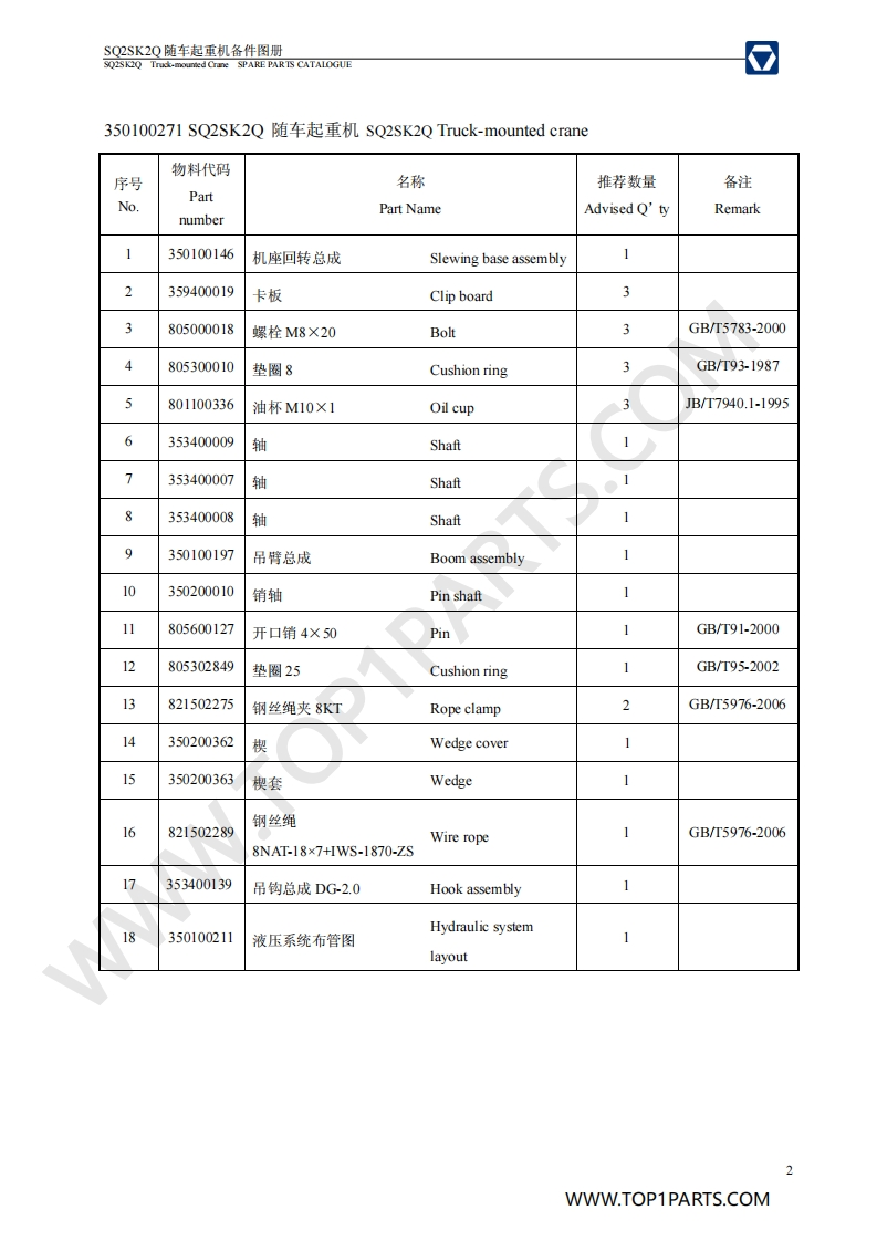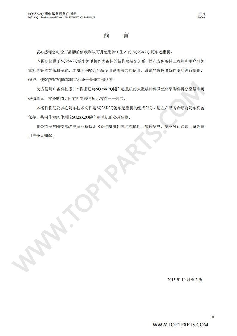 徐工随车起重机SQ2SK2Q-Truck-mounted-Crane-SPARE-PARTS-CATALOGUE零部件图册找手册网前天发布关注私信0.97MB39页043徐工随车起重机SQ2SK2Q-Truck-mounted-Crane-SPARE-PARTS-CATALOGUE零部件图册此内容为付费资源,请付费后查看¥29¥31黄金会员免费钻石会员免费立即购买您当前未登录!建议登陆后购买,可保存购买订单付费资源 第1页 / 共39页 第2页 / 共39页 第3页 / 共39页 第4页 / 共39页 第5页 / 共39页 第6页 / 共39页 第7页 / 共39页 第8页 / 共39页 第9页 / 共39页 第10页 / 共39页 试读已结束,还剩29页,您可下载完整版后进行离线阅读 THE END徐工集团 文本预览 ▣XCMGSQ2SK2Q随车起重机备件图册PARTS.COMSQ2SK2Q Truck-mounted Crane SPARE PARTS CATALOGUEWWW.TOP1PARTS.COM 查看更多 收起部分 喜欢就支持一下吧收藏