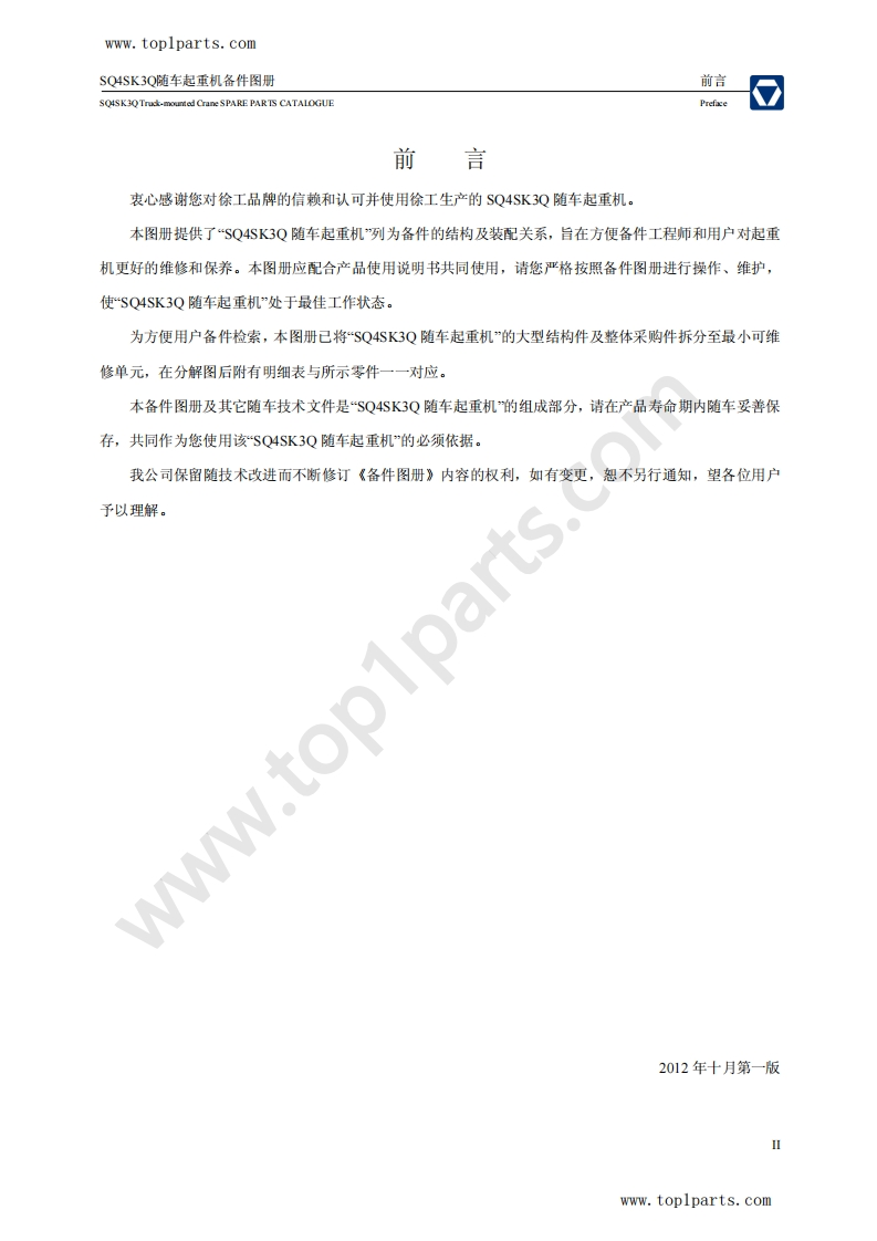 徐工随车起重机Sq4Sk3Q-Truck-Mounted-Crane-Spare-Parts-Catalogue零部件图册找手册网前天发布关注私信0.97MB48页036徐工随车起重机Sq4Sk3Q-Truck-Mounted-Crane-Spare-Parts-Catalogue零部件图册此内容为付费资源,请付费后查看¥29¥31黄金会员免费钻石会员免费立即购买您当前未登录!建议登陆后购买,可保存购买订单付费资源 第1页 / 共48页 第2页 / 共48页 第3页 / 共48页 第4页 / 共48页 第5页 / 共48页 第6页 / 共48页 第7页 / 共48页 第8页 / 共48页 第9页 / 共48页 第10页 / 共48页 试读已结束,还剩38页,您可下载完整版后进行离线阅读 THE END徐工集团 文本预览 www.toplparts.com⑦XCMcSQ4SK3Q随车起重机备件图册SQ4SK3Q Truck-mounted Crane SPARE PARTS CATALOGUE.comwww.toplparts.com 查看更多 收起部分 喜欢就支持一下吧收藏