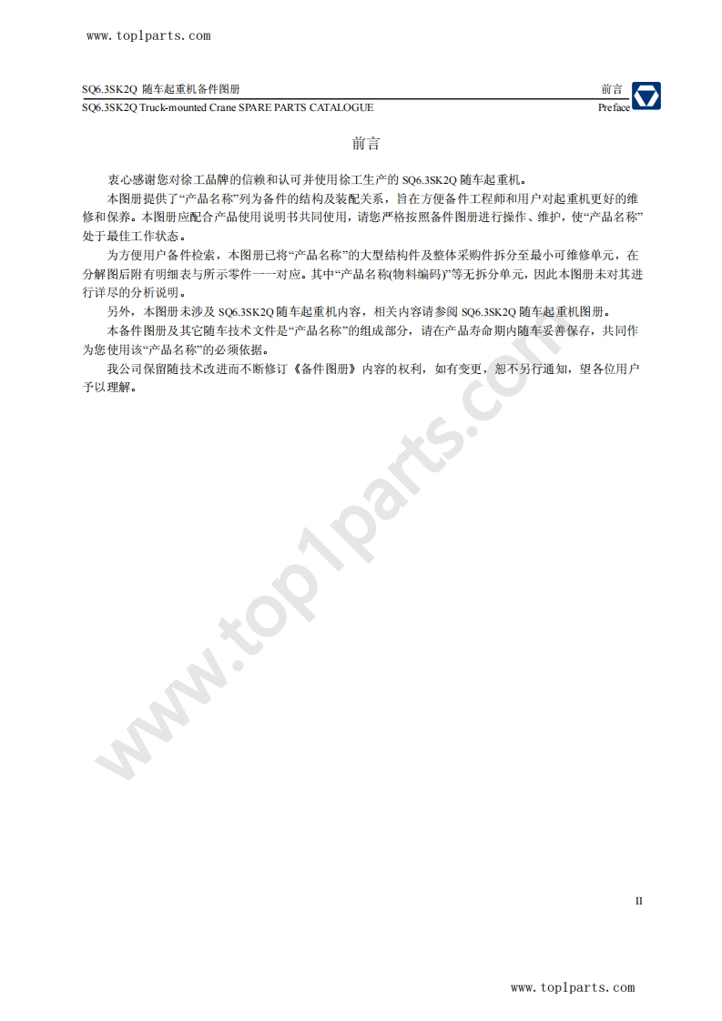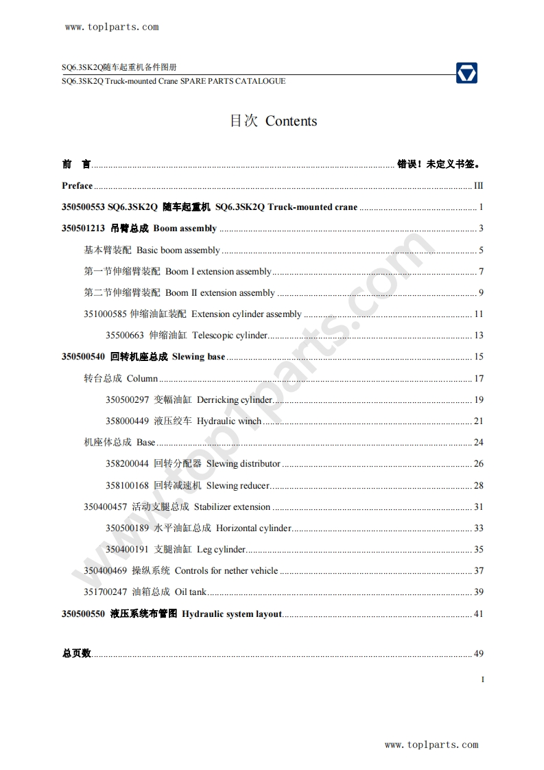 徐工随车起重机Sq6.3Sk2Q-Truck-Mounted-Crane-Spare-Parts零部件图册找手册网前天发布关注私信1.95MB49页045徐工随车起重机Sq6.3Sk2Q-Truck-Mounted-Crane-Spare-Parts零部件图册此内容为付费资源,请付费后查看¥29¥31黄金会员免费钻石会员免费立即购买您当前未登录!建议登陆后购买,可保存购买订单付费资源 第1页 / 共49页 第2页 / 共49页 第3页 / 共49页 第4页 / 共49页 第5页 / 共49页 第6页 / 共49页 第7页 / 共49页 第8页 / 共49页 第9页 / 共49页 第10页 / 共49页 试读已结束,还剩39页,您可下载完整版后进行离线阅读 THE END徐工集团 文本预览 www.toplparts.com☑XCcSQ6.3SK2Q随车起重机备件图SQ6.3SK2Q Truck-mounted Crane SPARE PARTS1Oats.comwww.toplparts.com 查看更多 收起部分 喜欢就支持一下吧收藏