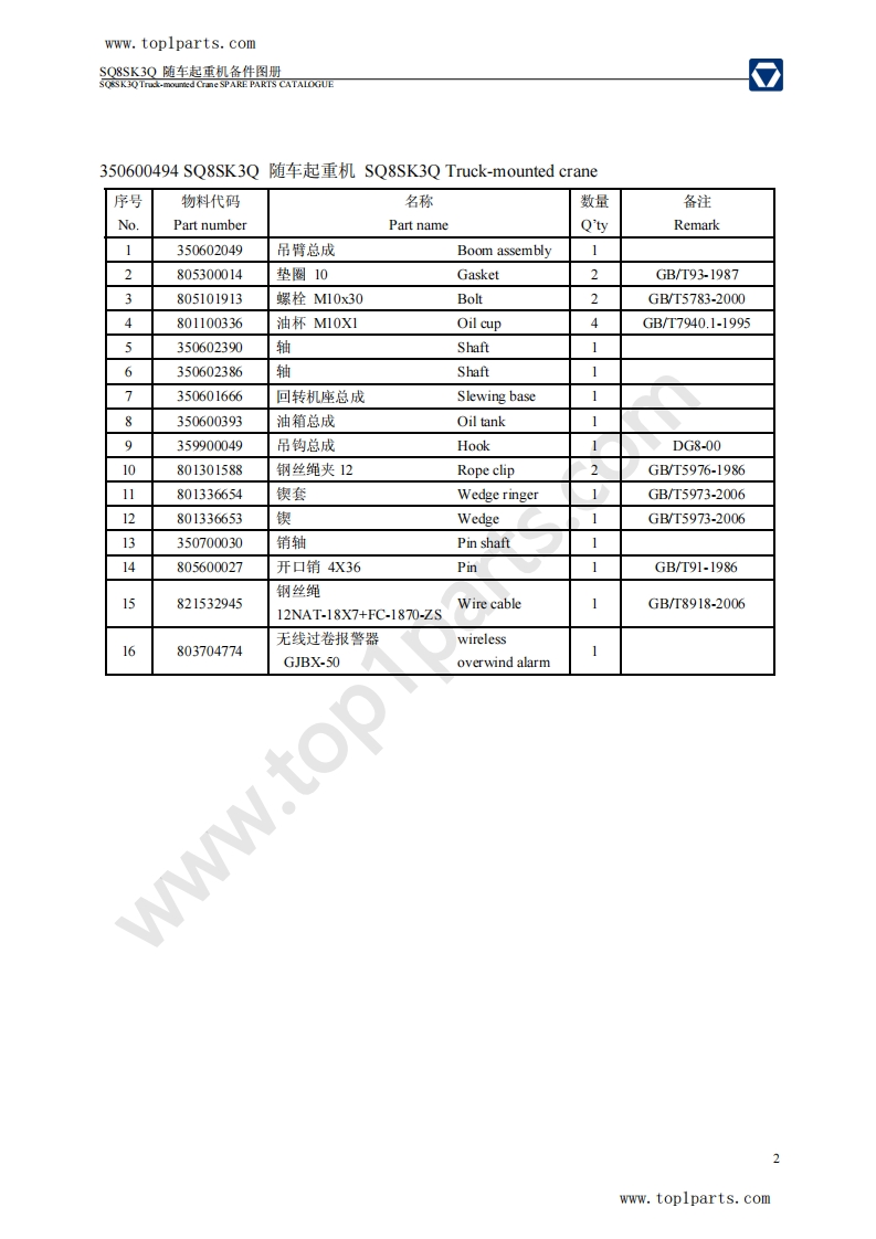 徐工随车起重机Sq8Sk3Q-Truck-Mounted-Crane-Spare-Parts-Catalogue零部件图册找手册网前天发布关注私信4.50MB73页048徐工随车起重机Sq8Sk3Q-Truck-Mounted-Crane-Spare-Parts-Catalogue零部件图册此内容为付费资源,请付费后查看¥29¥31黄金会员免费钻石会员免费立即购买您当前未登录!建议登陆后购买,可保存购买订单付费资源 第1页 / 共73页 第2页 / 共73页 第3页 / 共73页 第4页 / 共73页 第5页 / 共73页 第6页 / 共73页 第7页 / 共73页 第8页 / 共73页 第9页 / 共73页 第10页 / 共73页 试读已结束,还剩63页,您可下载完整版后进行离线阅读 THE END徐工集团 文本预览 www.toplparts.com▣XCMGSQ8SK3Q随车起重机备件图册SQ8SK3Q Truck-mounted Crane SPARE PARTS CATALOGUEts.comwww.toplparts.com 查看更多 收起部分 喜欢就支持一下吧收藏