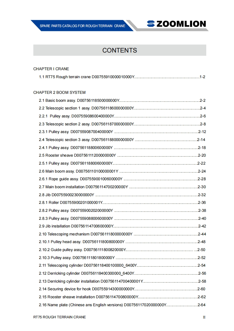 中联RT75_Parts_Manual_20140218起重机吊车零部件手册含电器原理图找手册网前天发布关注私信40.30MB384页020中联RT75_Parts_Manual_20140218起重机吊车零部件手册含电器原理图此内容为付费资源,请付费后查看¥29¥31黄金会员免费钻石会员免费立即购买您当前未登录!建议登陆后购买,可保存购买订单付费资源 第1页 / 共384页 第2页 / 共384页 第3页 / 共384页 第4页 / 共384页 第5页 / 共384页 第6页 / 共384页 第7页 / 共384页 第8页 / 共384页 第9页 / 共384页 第10页 / 共384页 试读已结束,还剩374页,您可下载完整版后进行离线阅读 THE END中联重科/Doosan 文本预览 ZOOMLONSPARE PARTS CATALOG FORRT75 ROUGH TERRAIN CRANEDecember,2013 Edition:1 查看更多 收起部分 喜欢就支持一下吧收藏