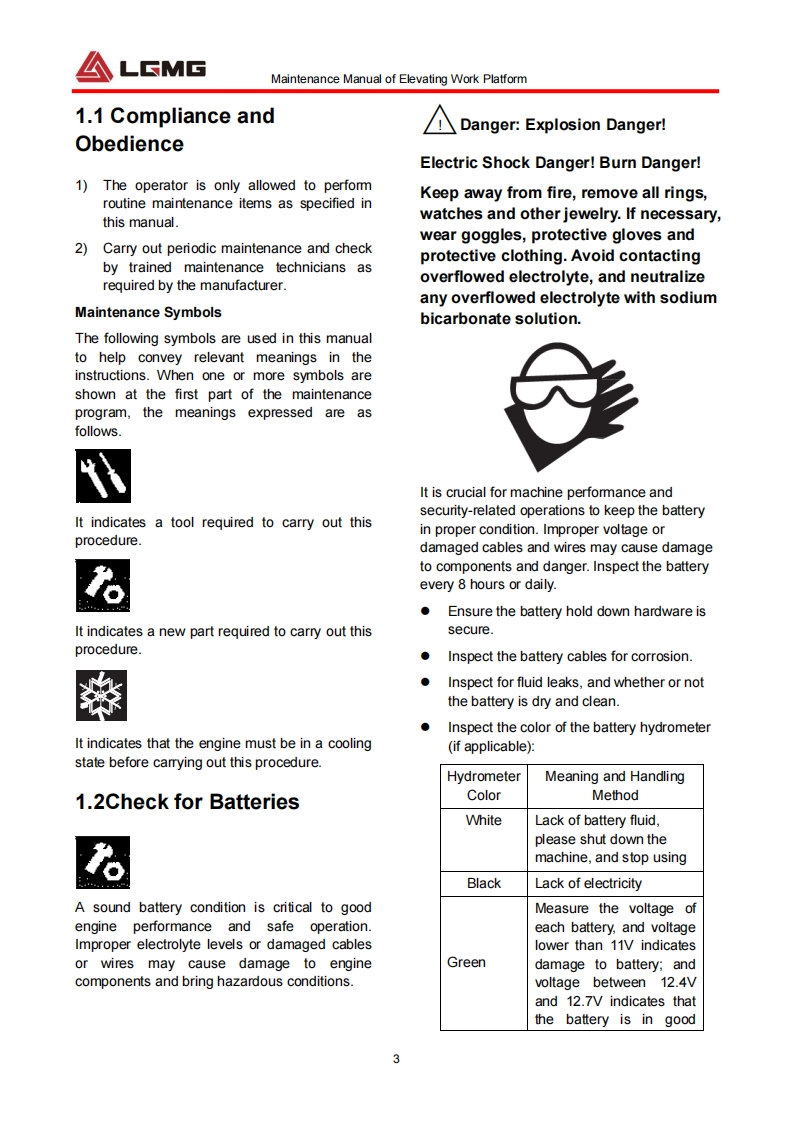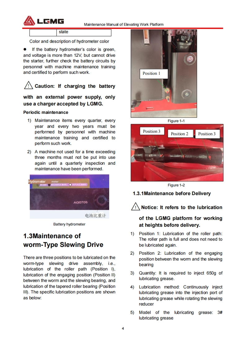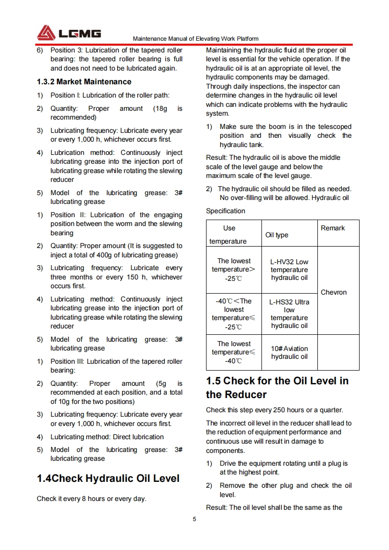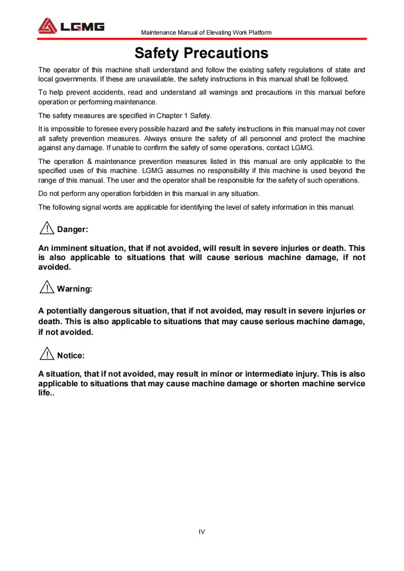 LGMGMaintenance ManualAR16JMobile Elevating Work Platform△WarningBefore operation and maintenance,thedrivers and service personnel shallalways read and thoroughly understandall information in this manual.Failure todo so may result in,fatal accidents orpersonal injury.This manual must be kept with thismachine at all times..LINGONG GROUP JINAN HEAVY MACHINERY CO.,LTD.