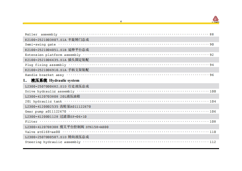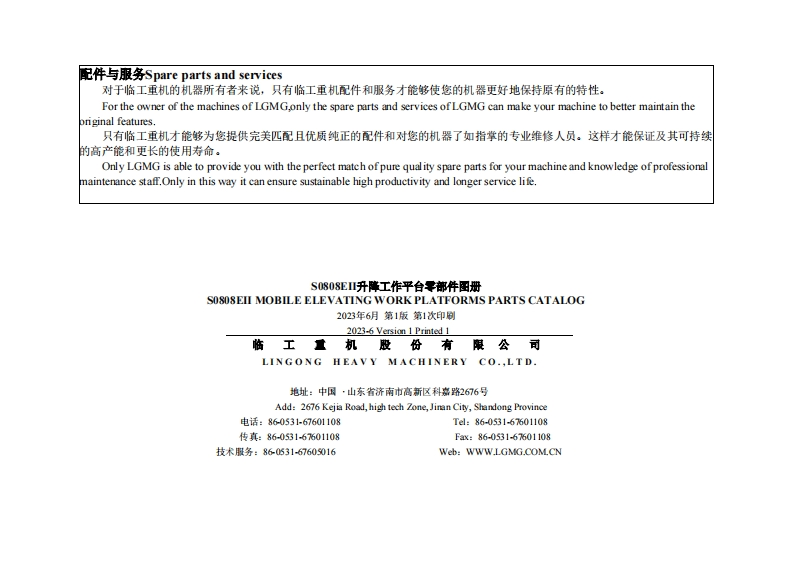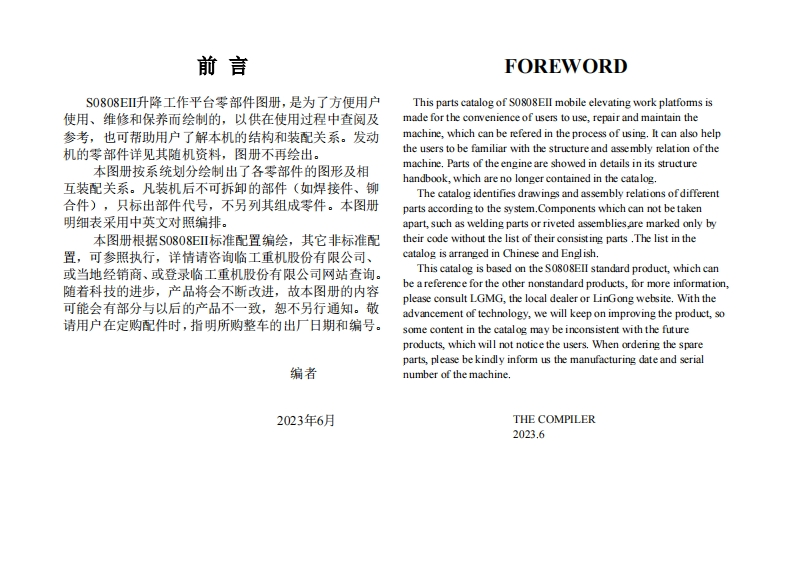 山东临工S0808E-Ⅱ-Parts-Manual零部件目录手册找手册网3小时前发布关注私信8.11MB154页029山东临工S0808E-Ⅱ-Parts-Manual零部件目录手册此内容为付费资源,请付费后查看¥29¥31黄金会员免费钻石会员免费立即购买您当前未登录!建议登陆后购买,可保存购买订单付费资源 第1页 / 共154页 第2页 / 共154页 第3页 / 共154页 第4页 / 共154页 第5页 / 共154页 第6页 / 共154页 第7页 / 共154页 第8页 / 共154页 第9页 / 共154页 第10页 / 共154页 试读已结束,还剩144页,您可下载完整版后进行离线阅读 THE END柳工/临工 文本预览 S0808EⅡ升降工作平台零部件图册S0808EII MOBILE ELEVATING WORK PLATFORMSPARTS CATALOG订货号:S080802WDQ0NE1001|车号:*P146200050-*P146200064临工重机股份有限公司LINGONG HEAVY MACHINERY CO.,LTD. 查看更多 收起部分 喜欢就支持一下吧收藏